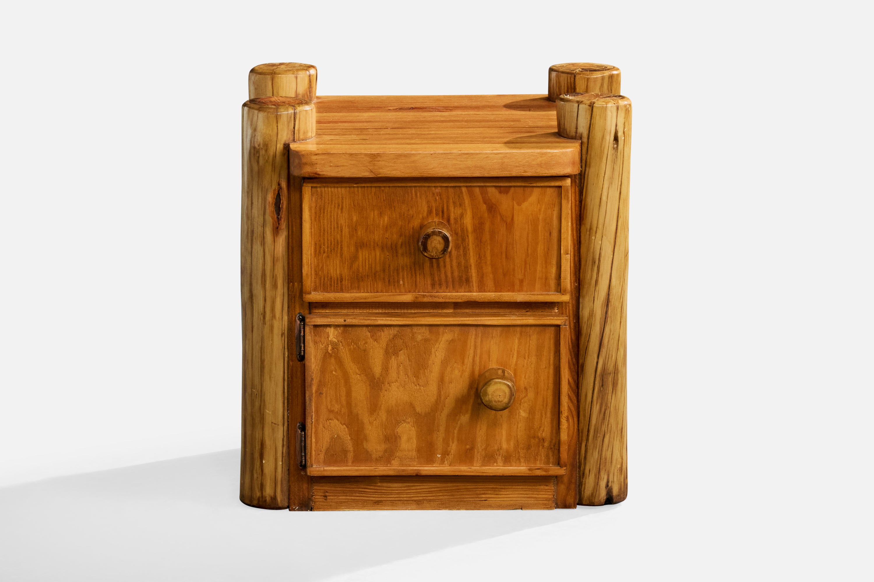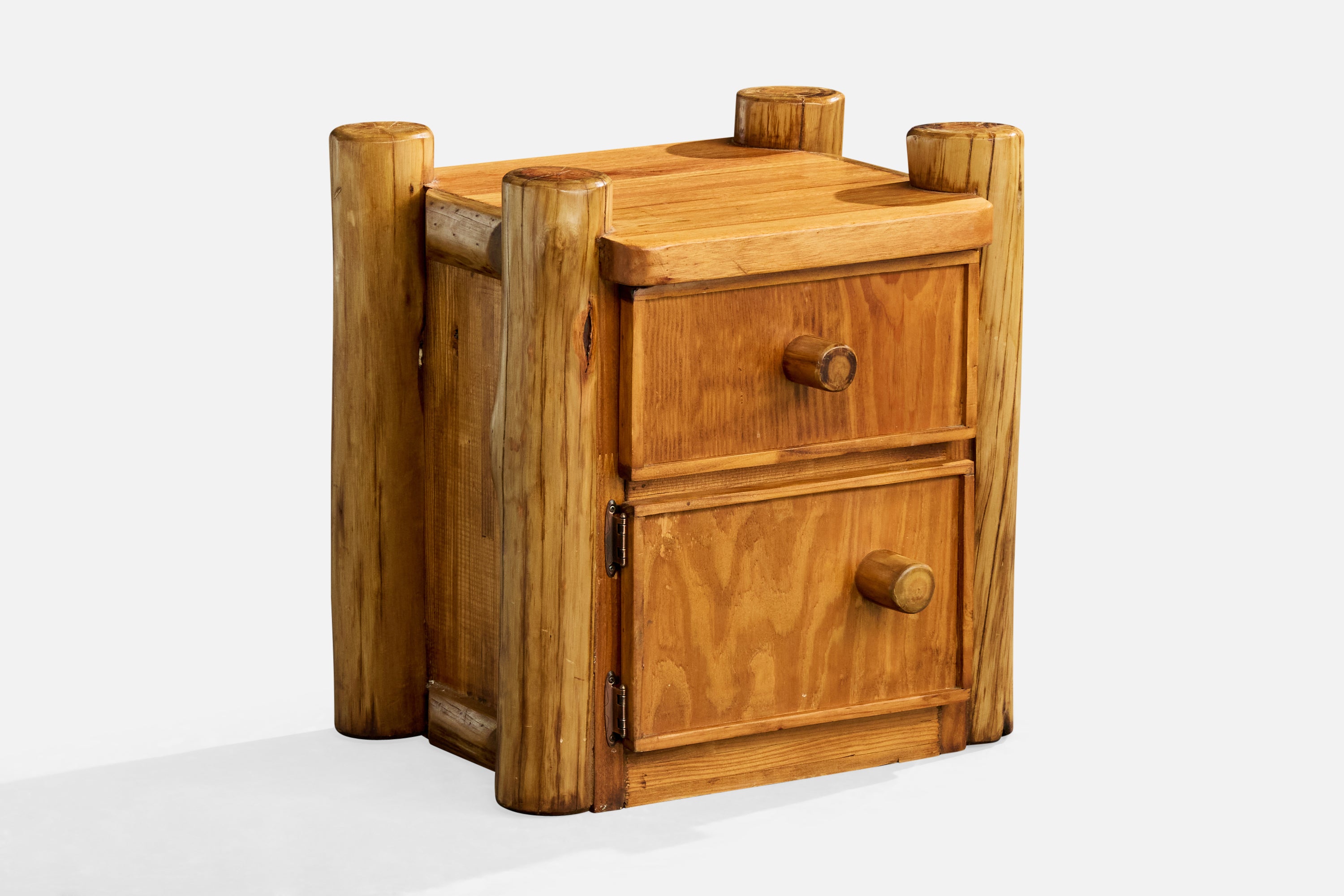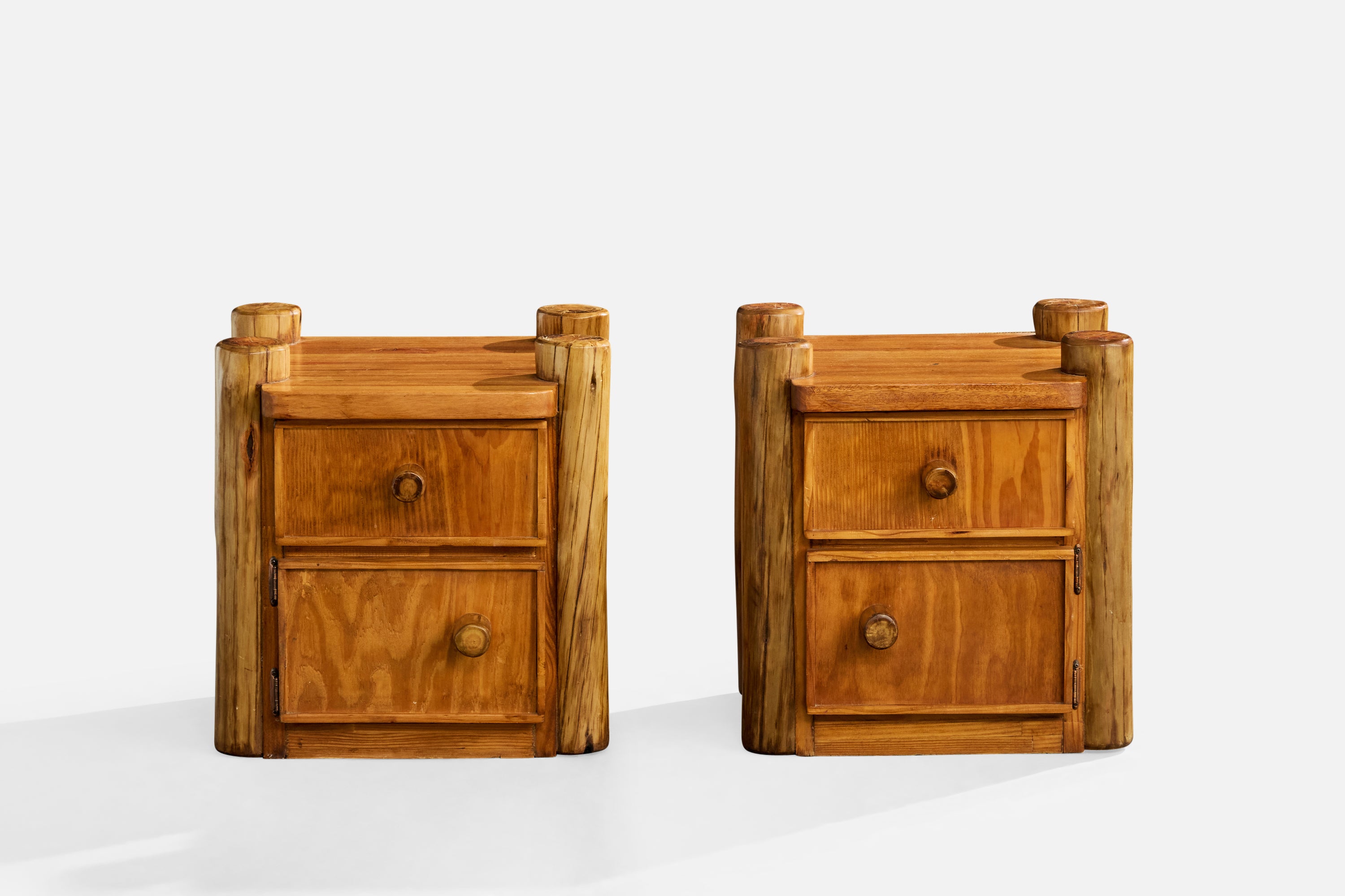 A pair of pine nightstands designed and produced in Italy, c. 1960s.
