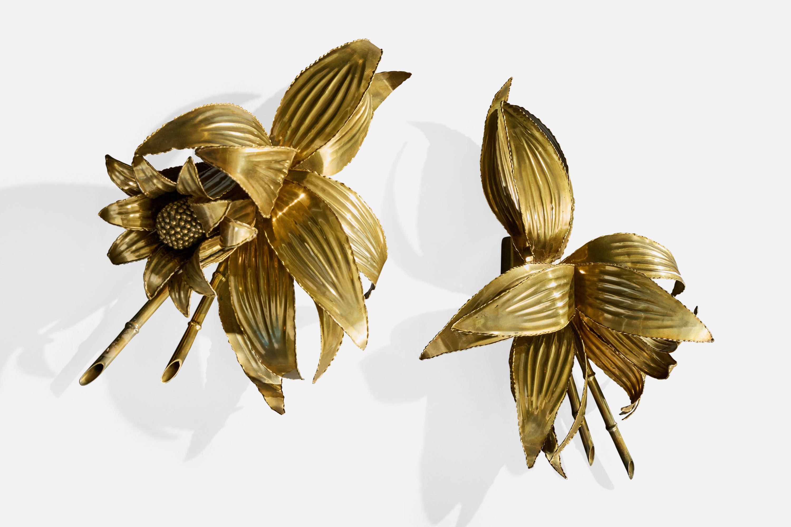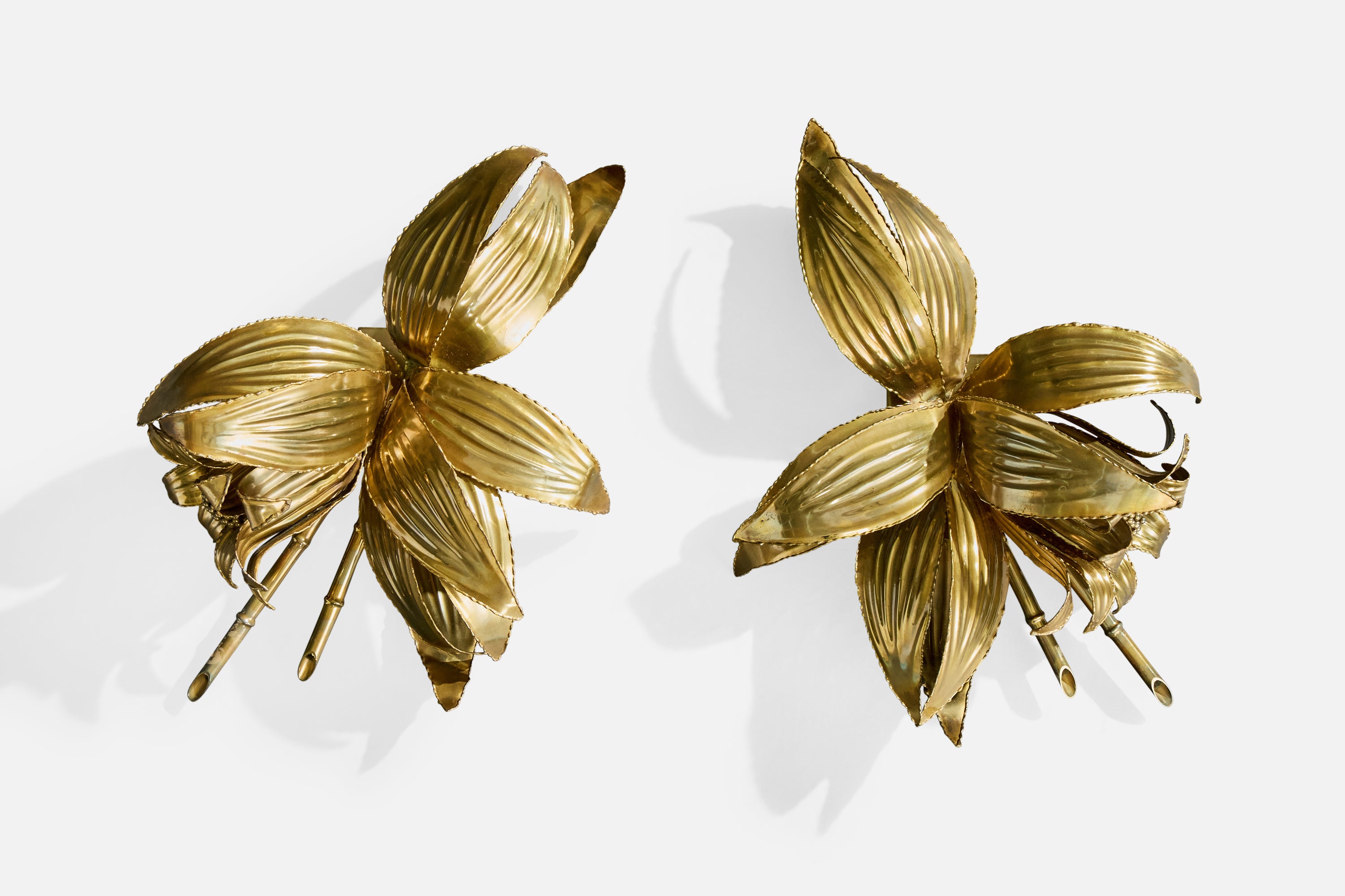 A pair of brass wall lights designed and produced in Italy, c. 1970s.
