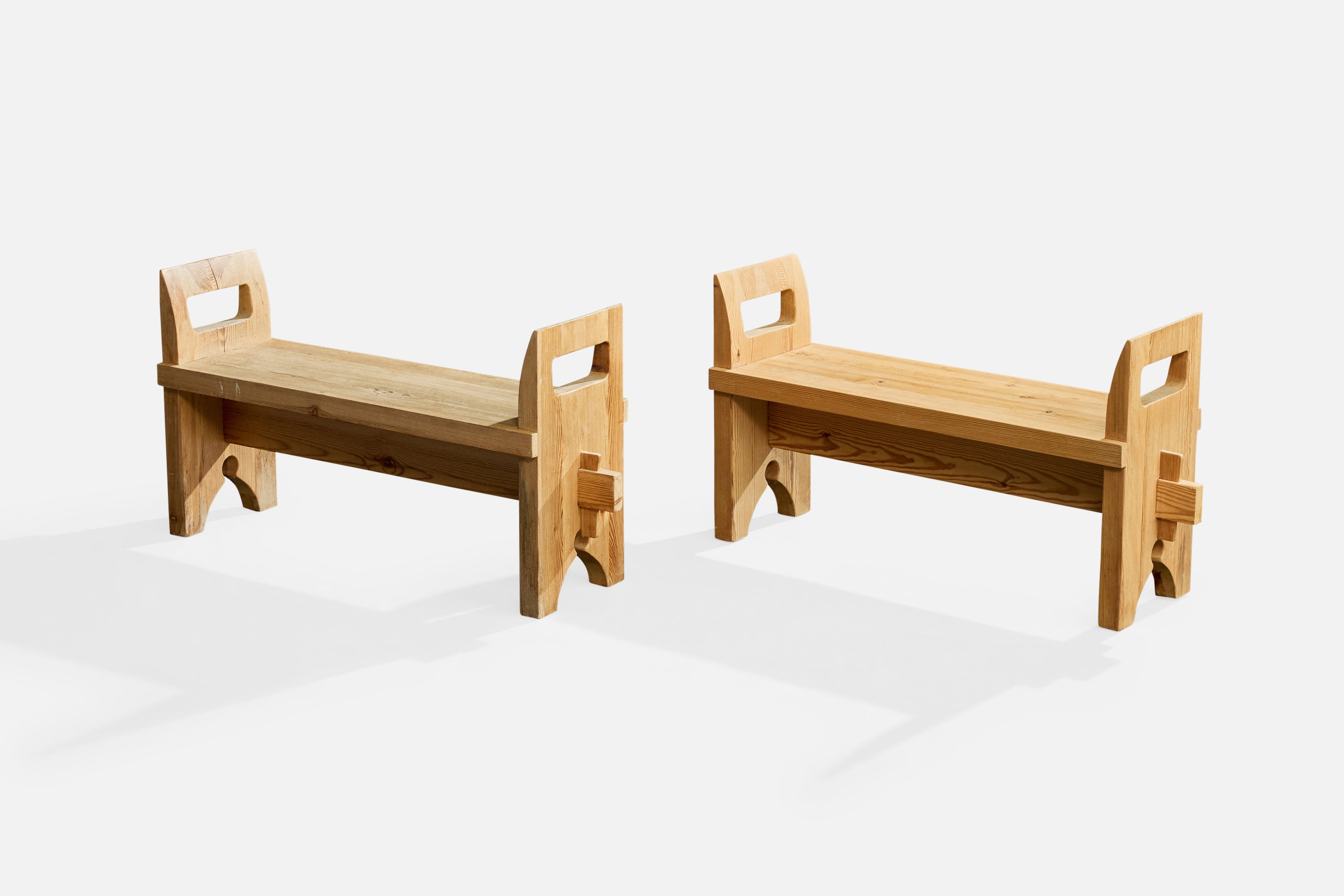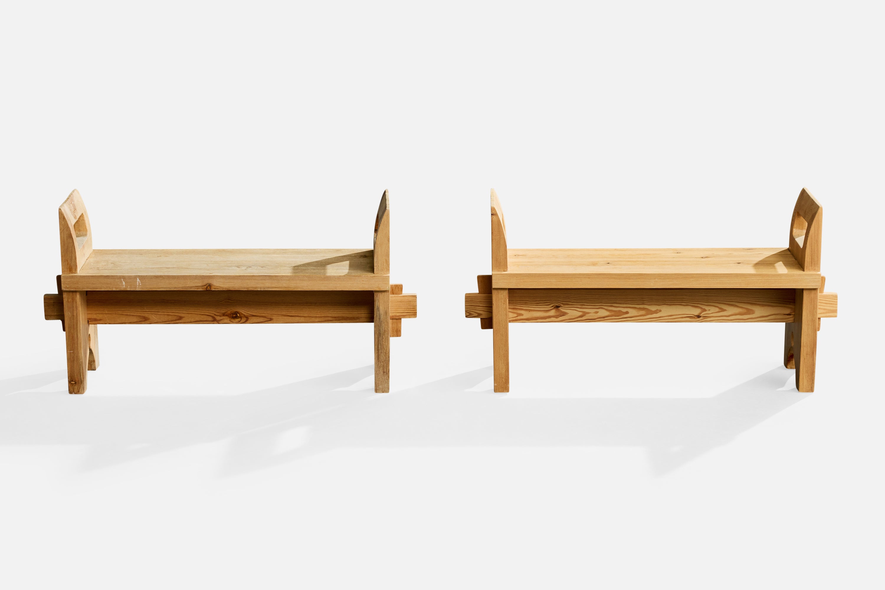 A pair of pine benches designed and produced in Sweden, c. 1970s.