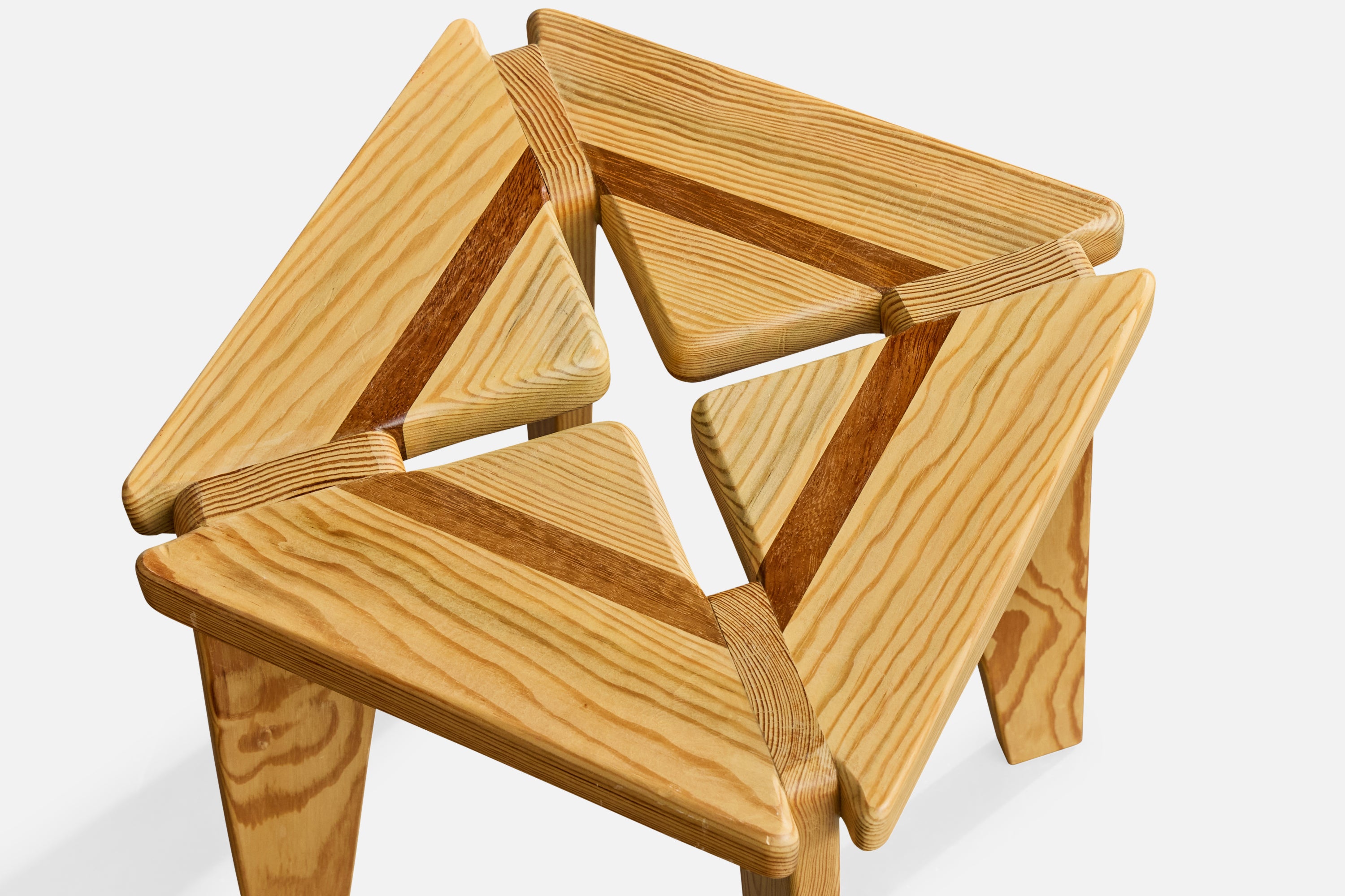 A set of three pine stools likely designed and produced in Sweden, c. 1970s.