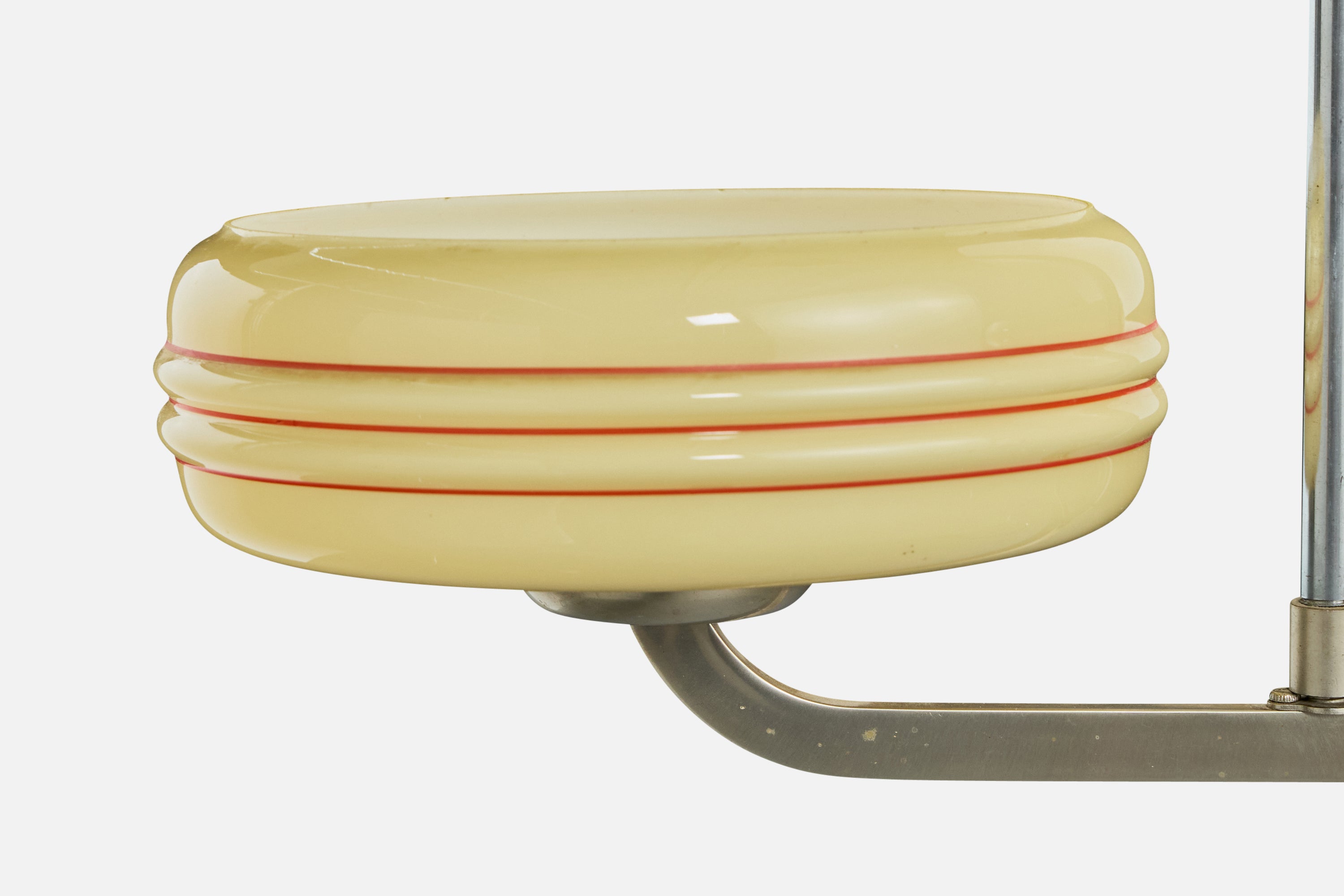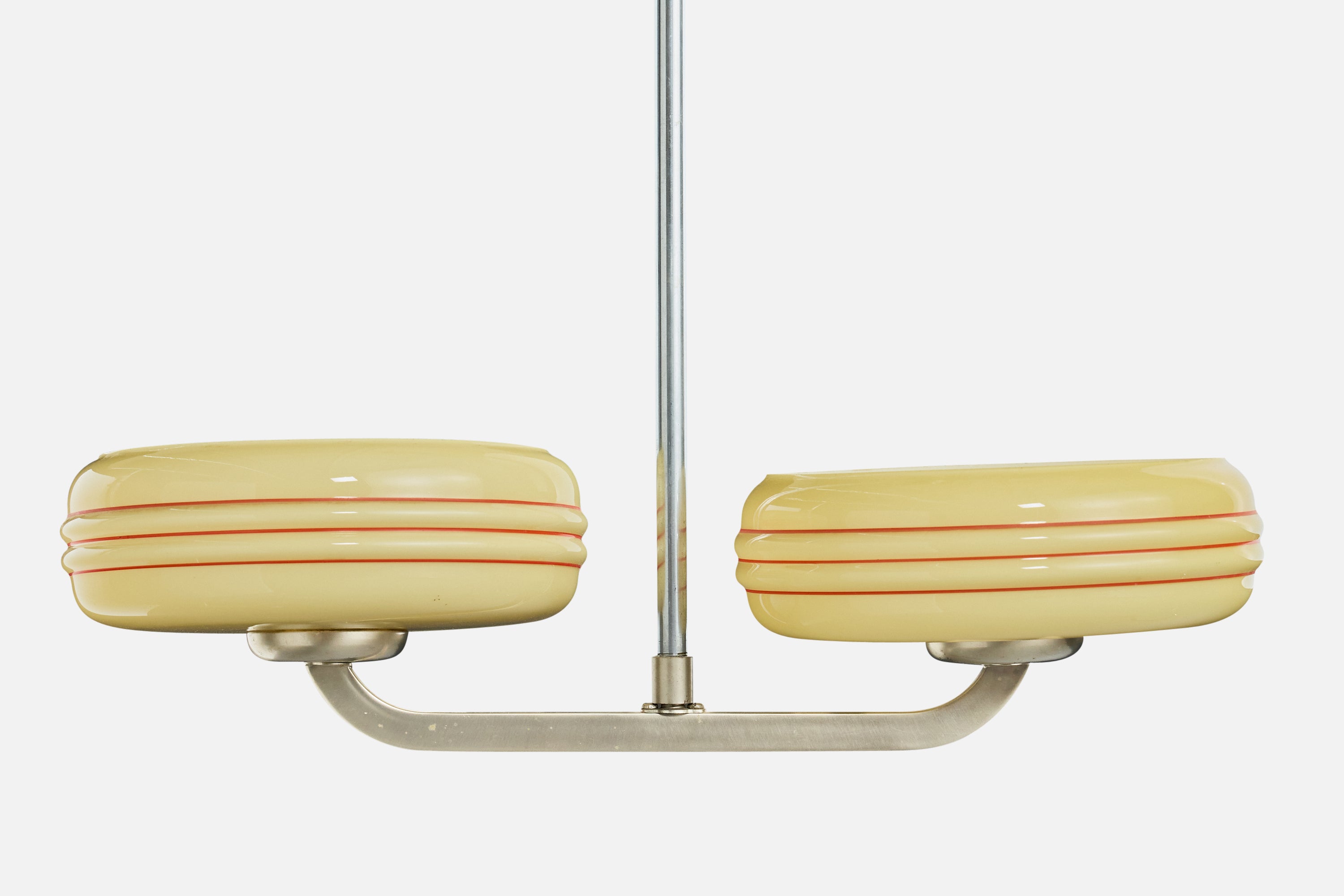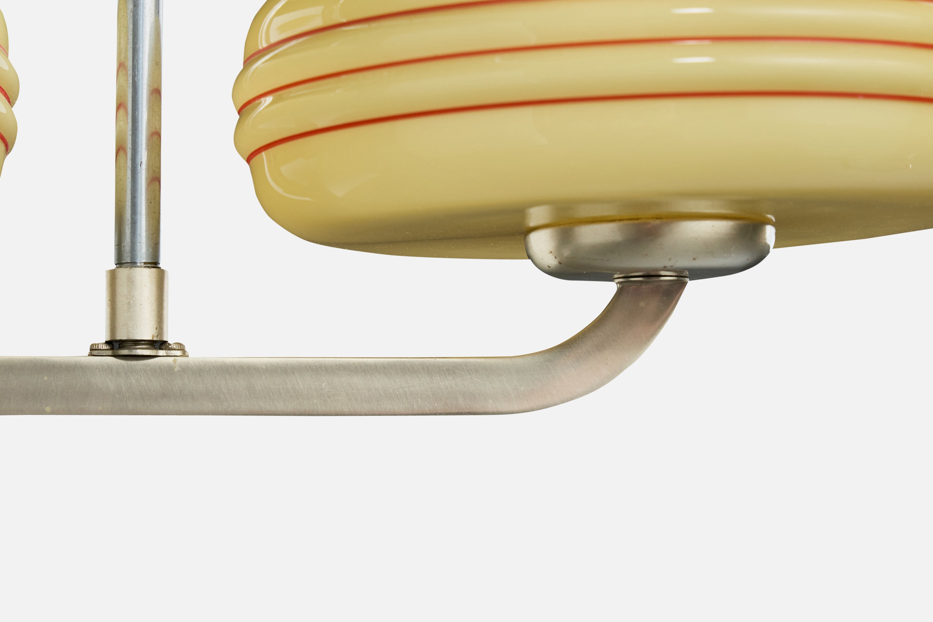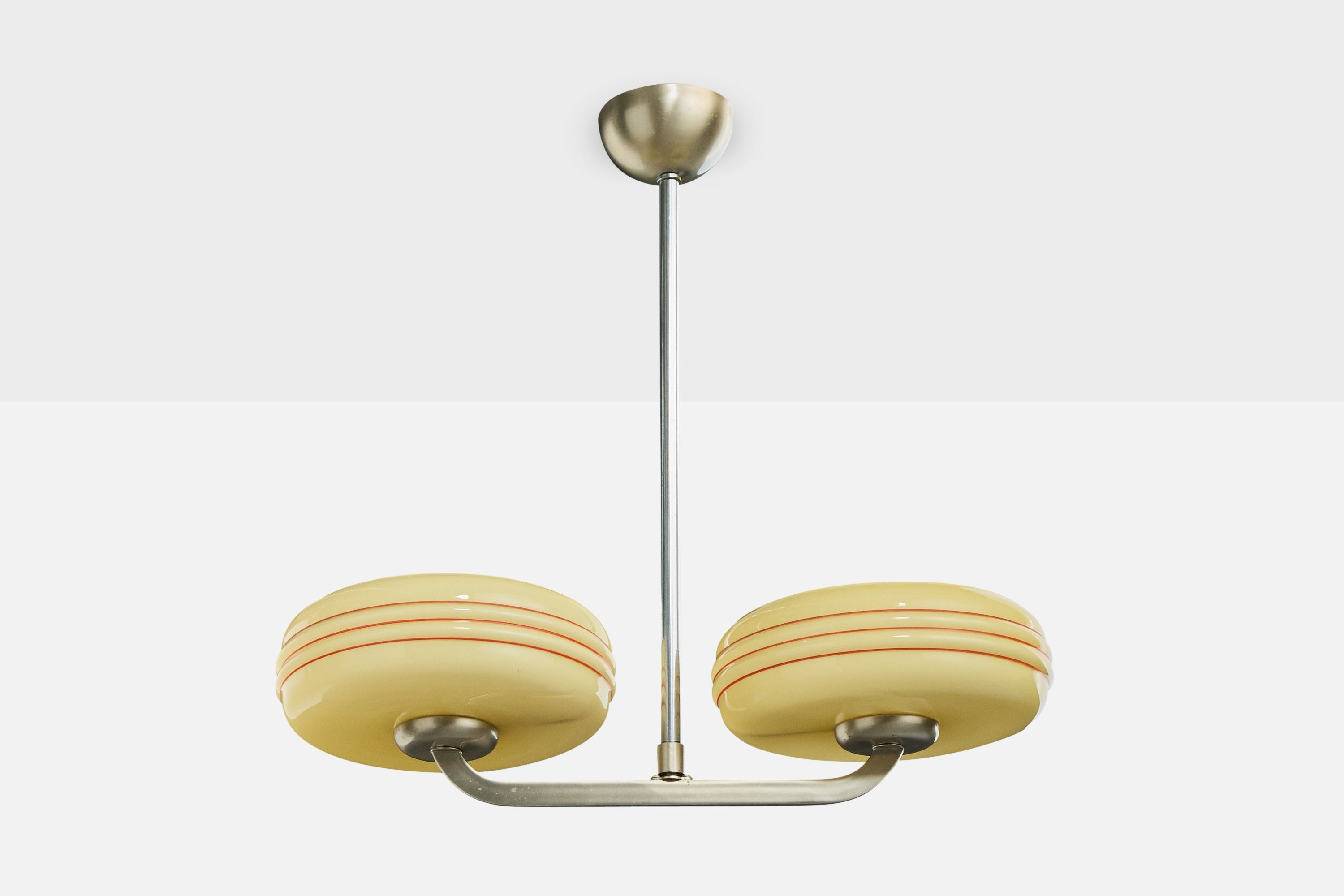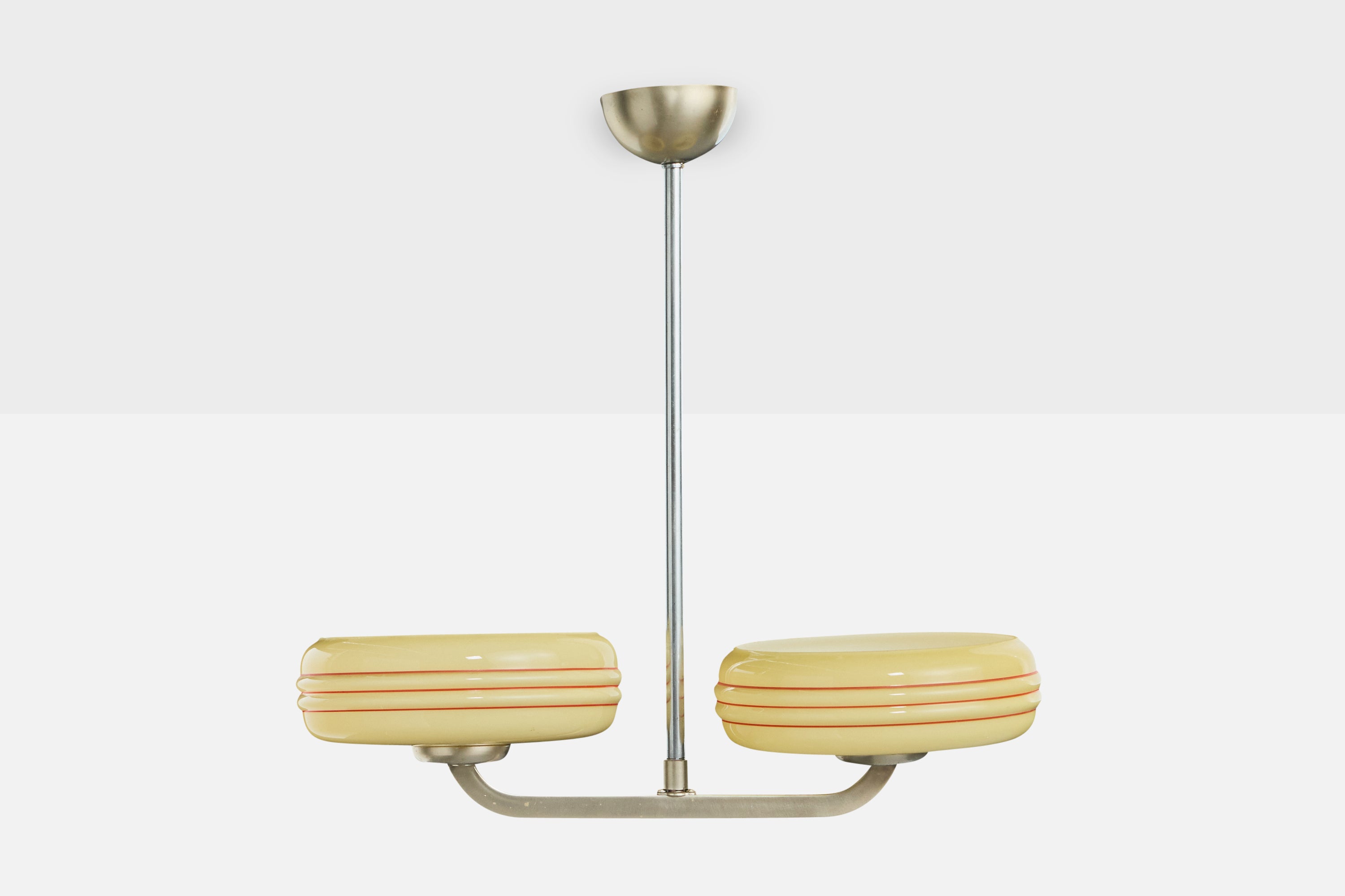 A nickel and yellow red glass chandelier likely designed and produced in Germany, c. 1920s.