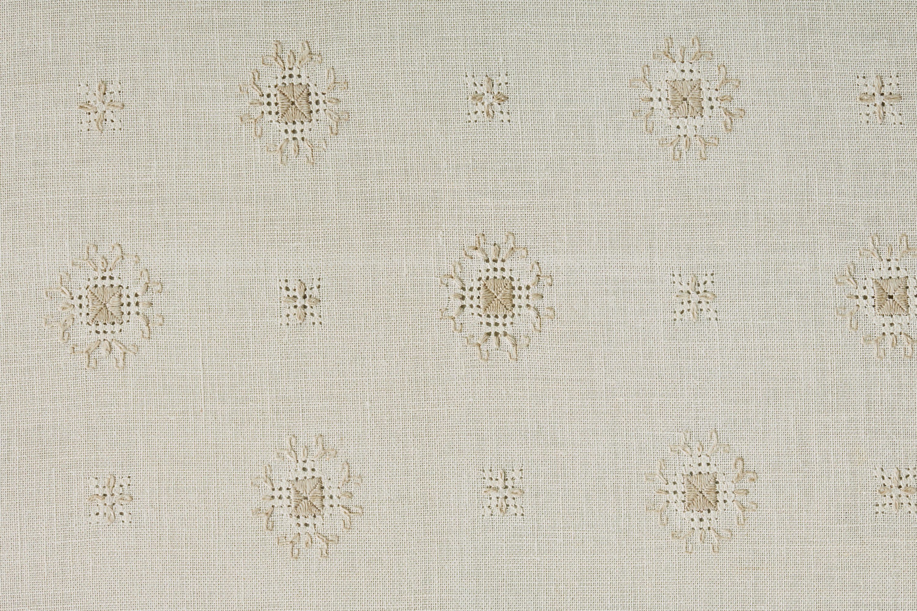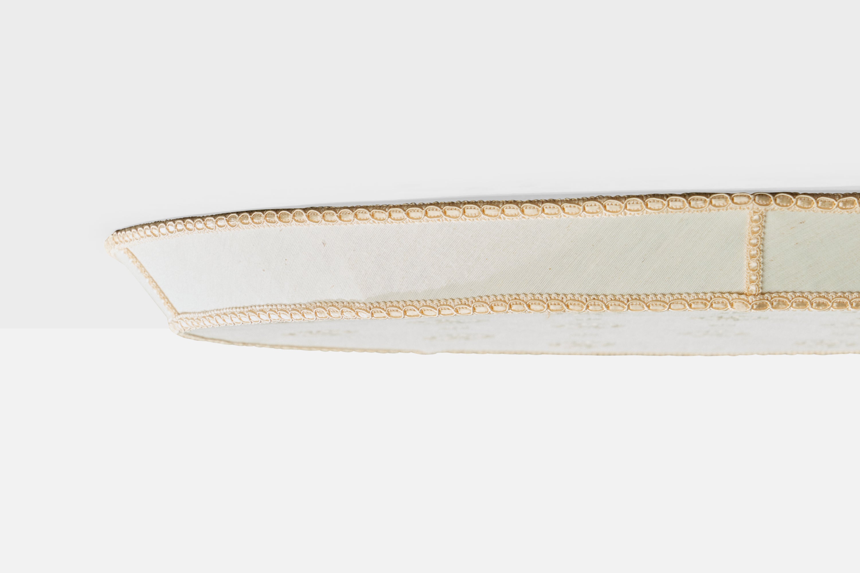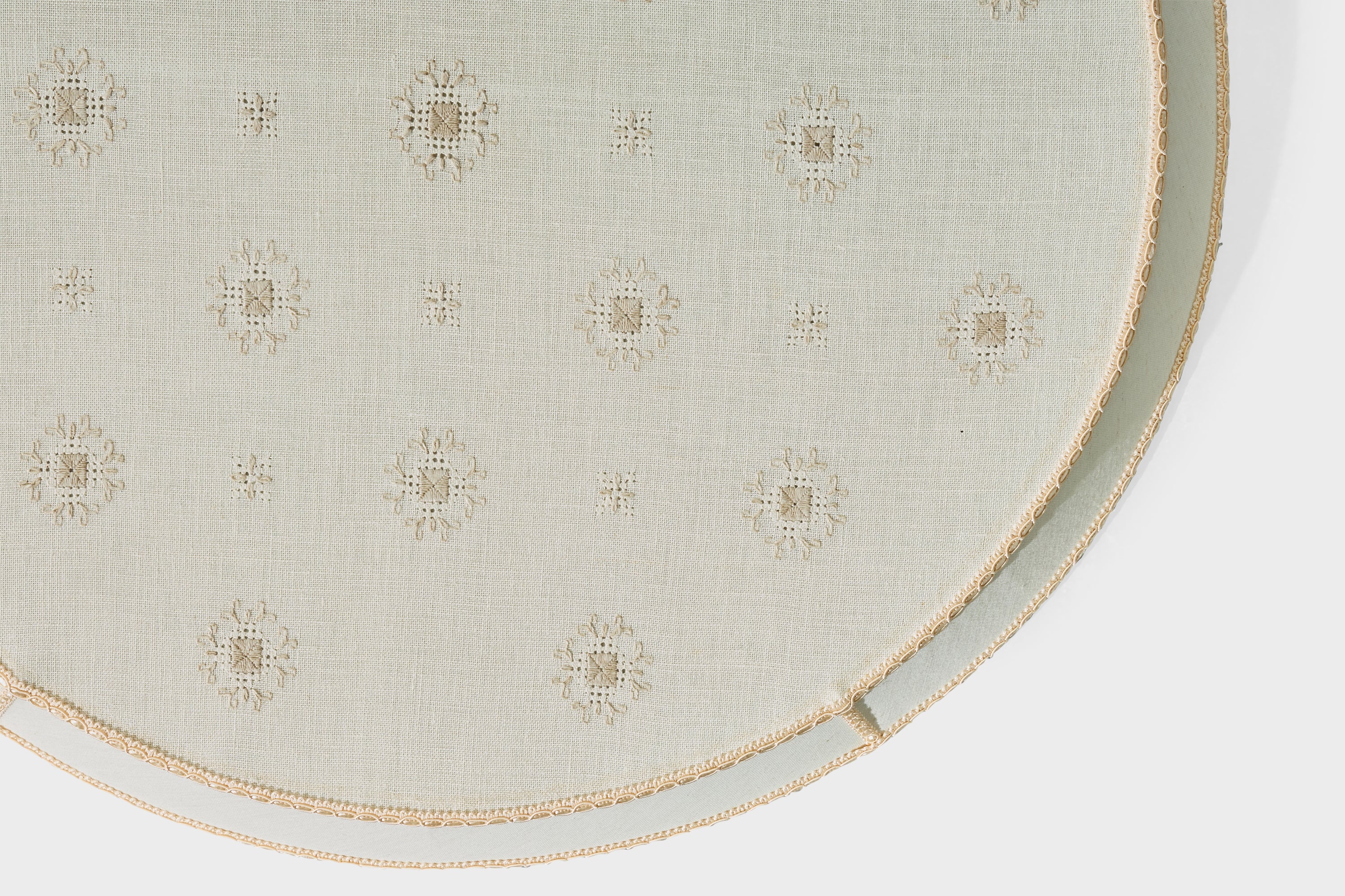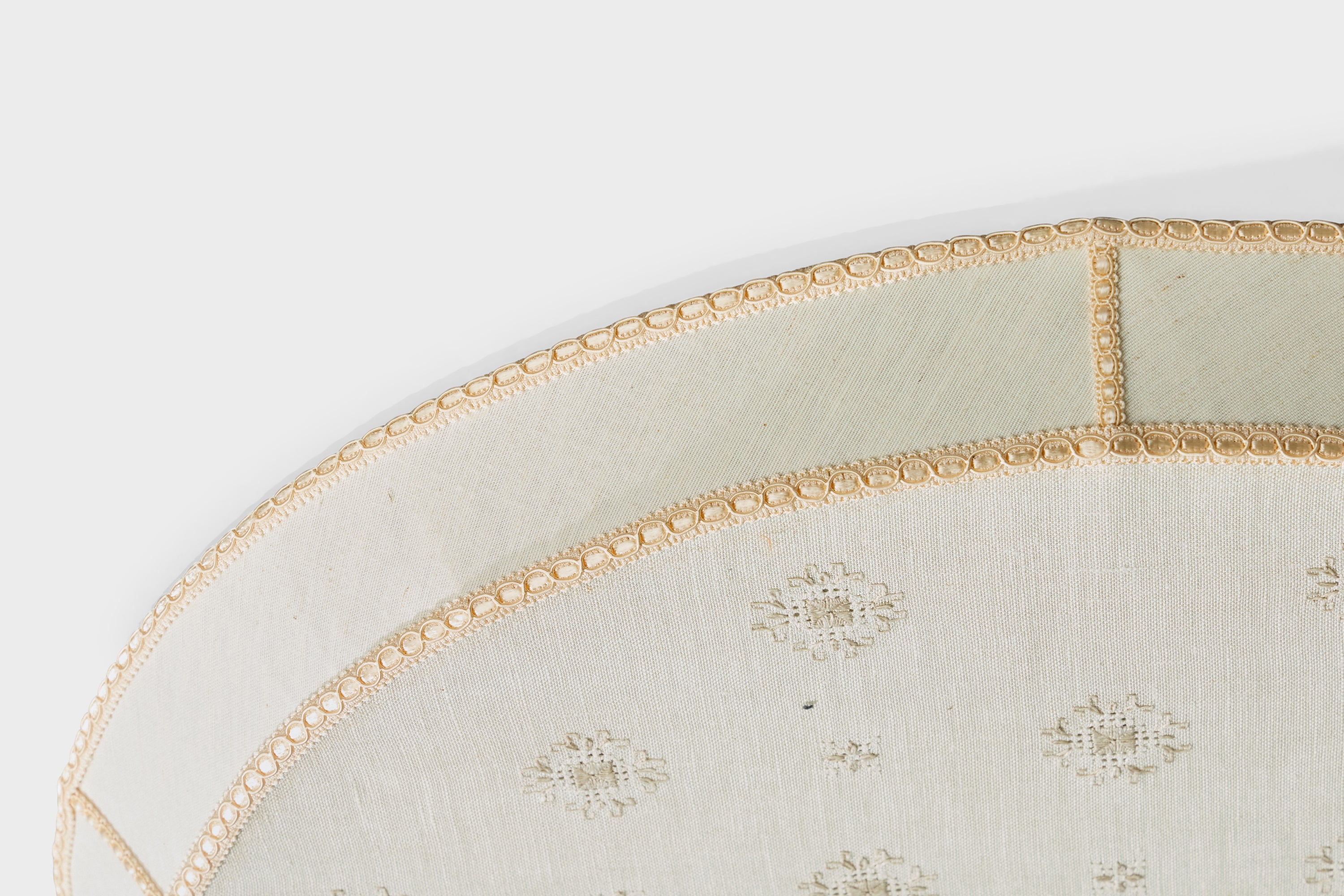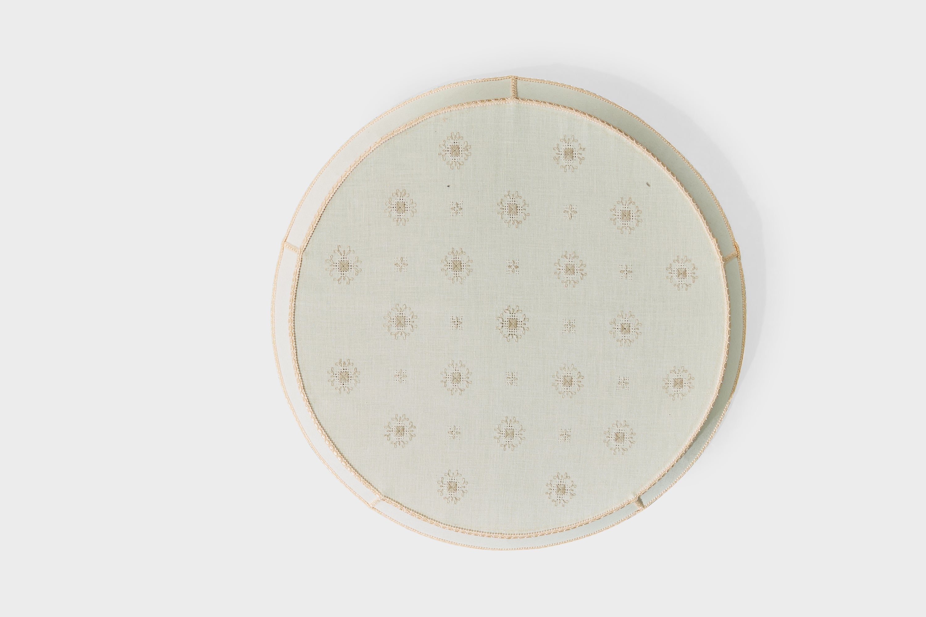 An off-white fabric flush mount with embroidery details designed and produced in Sweden, c. 1960s.