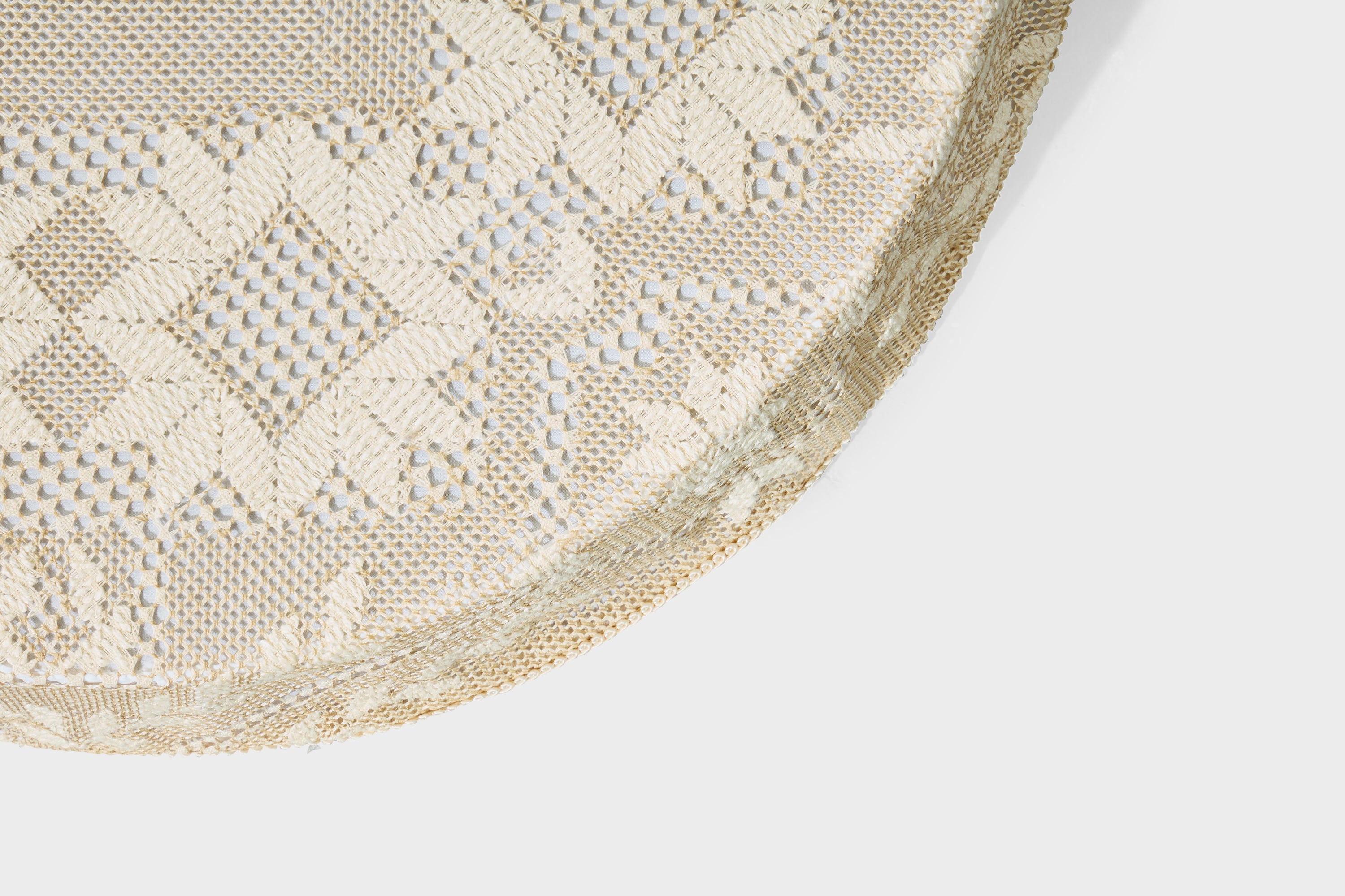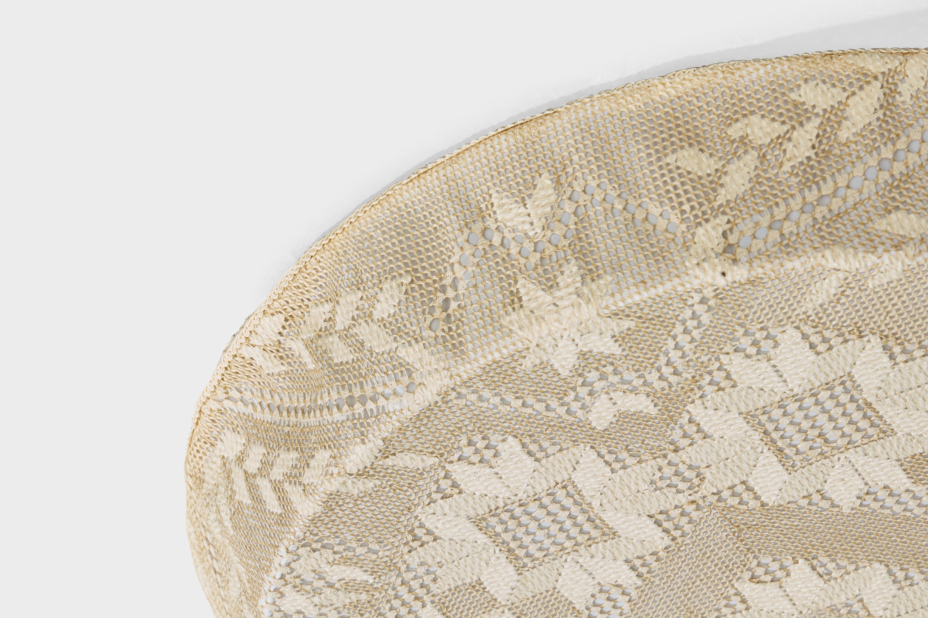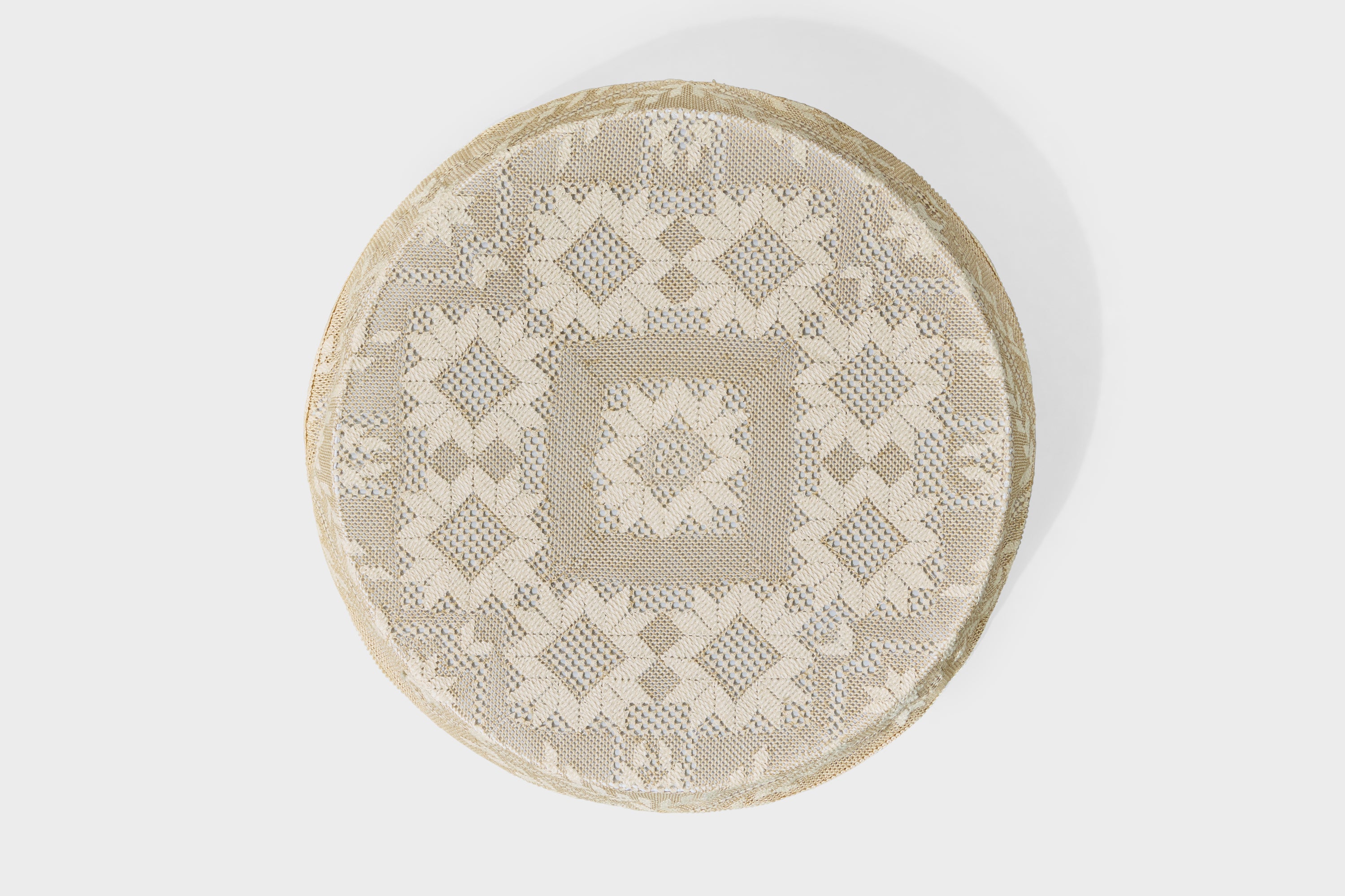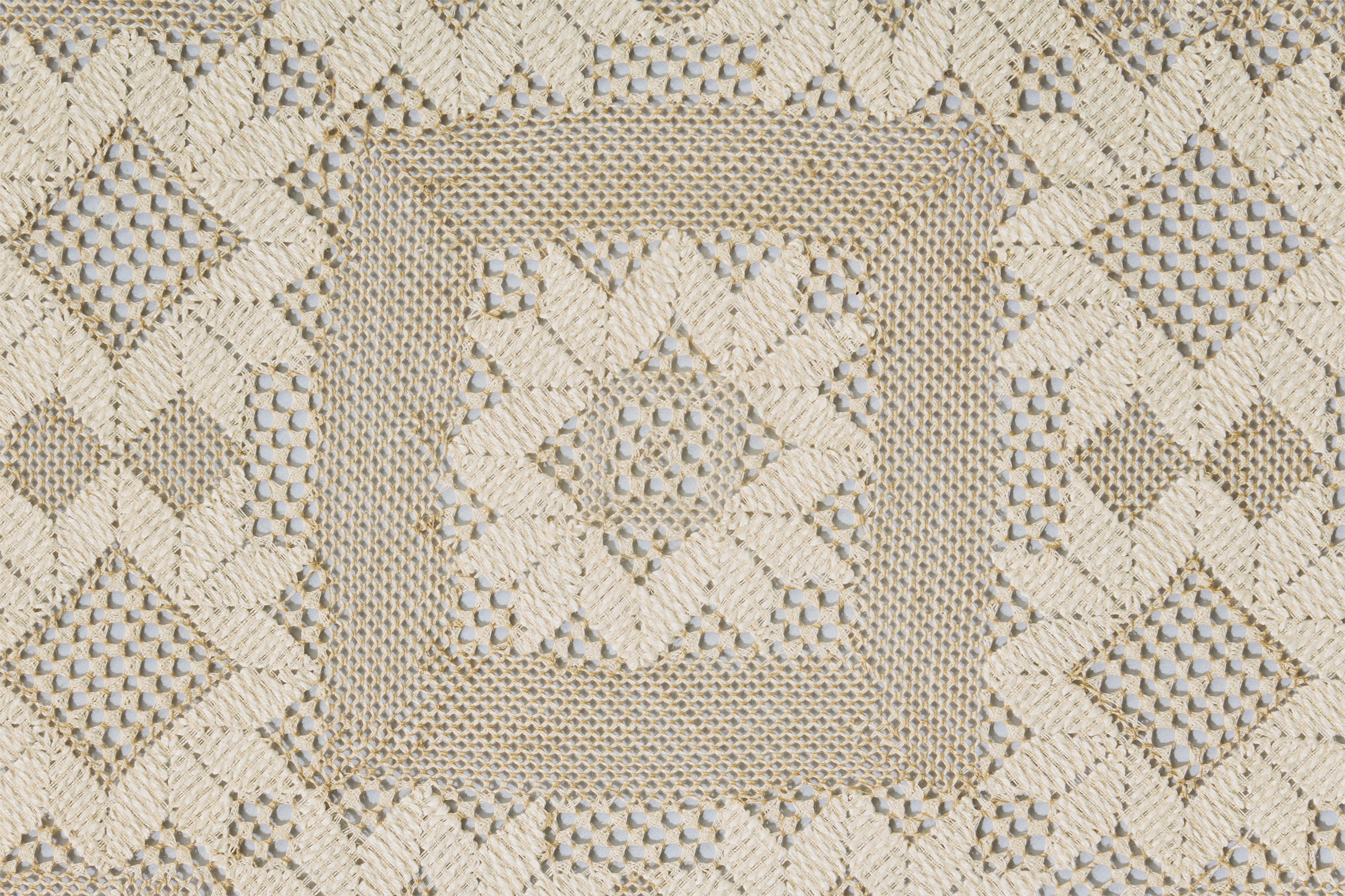 A beige white embroidery fabric designed and produced in Sweden, c. 1960s.