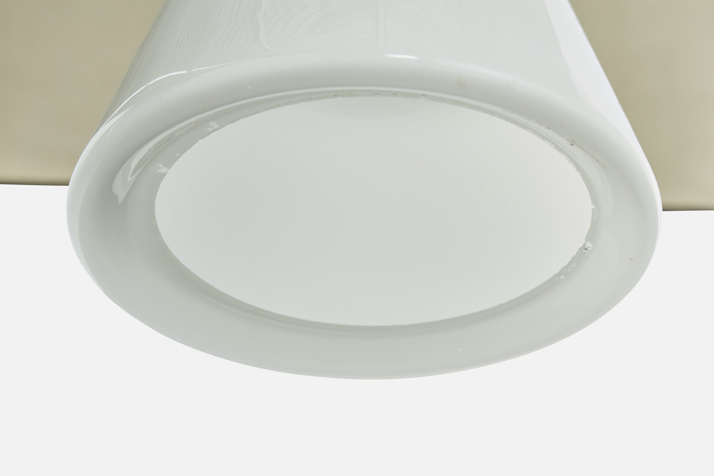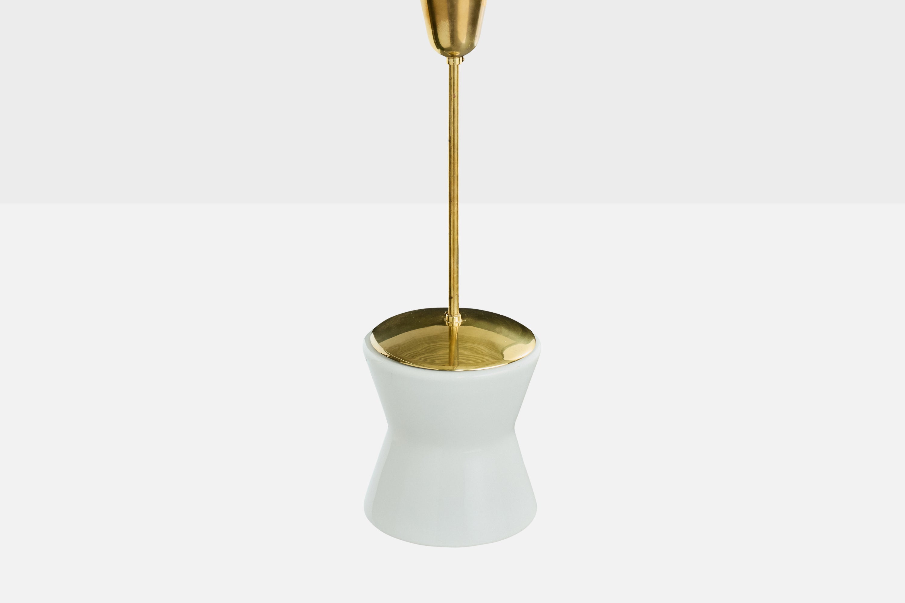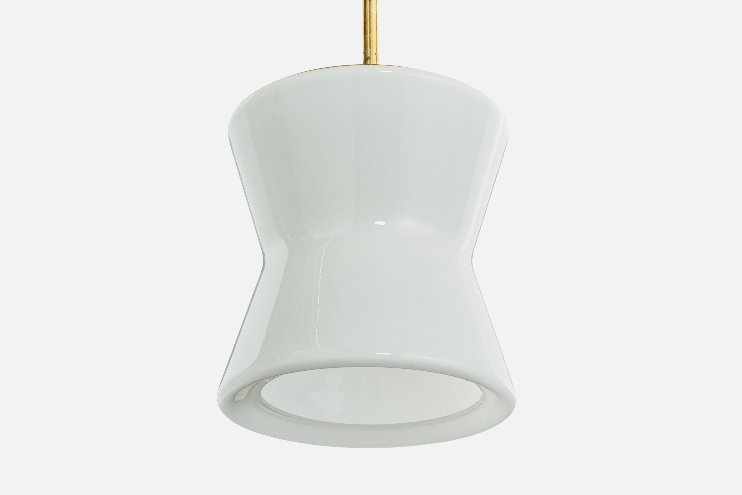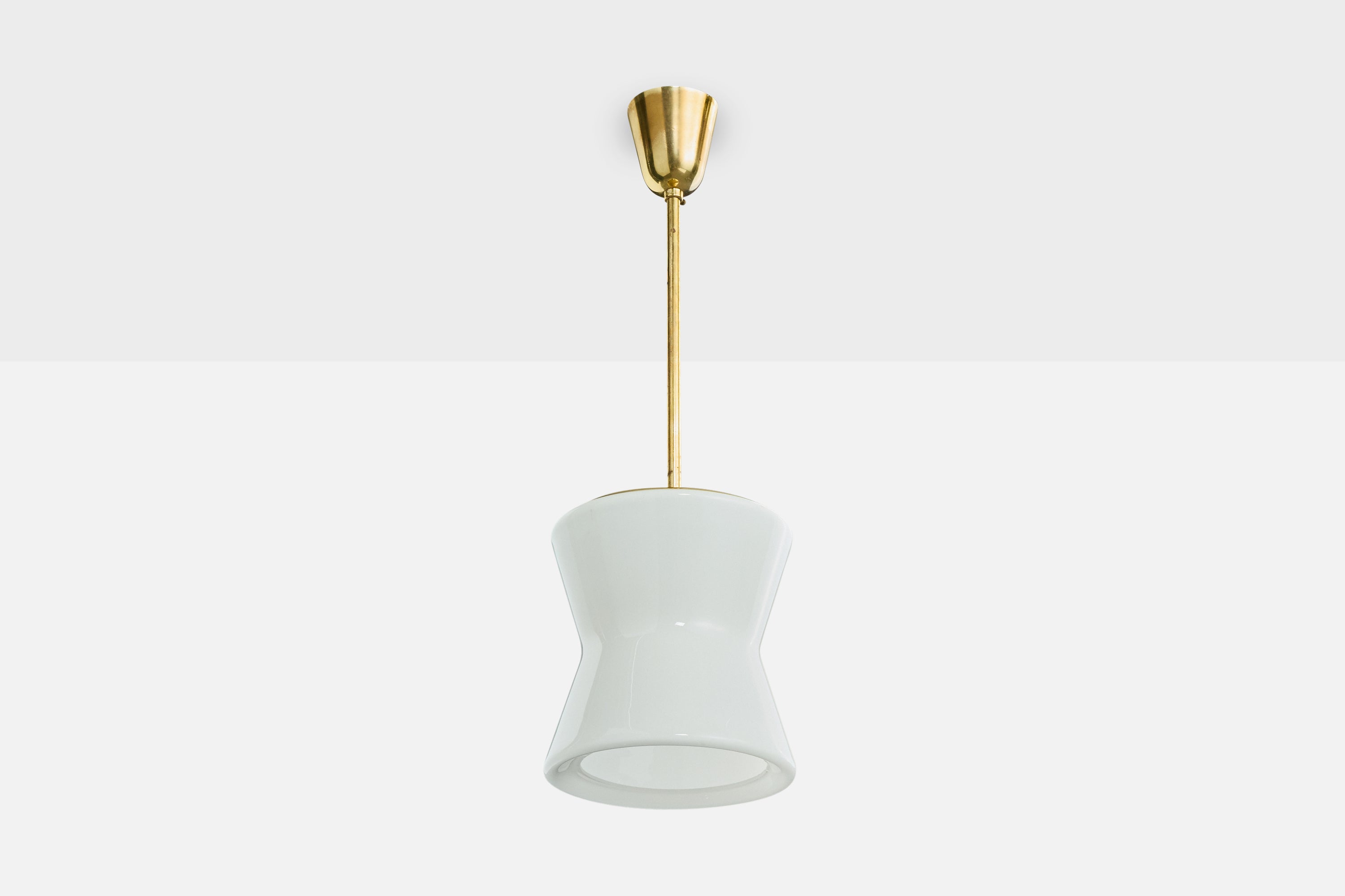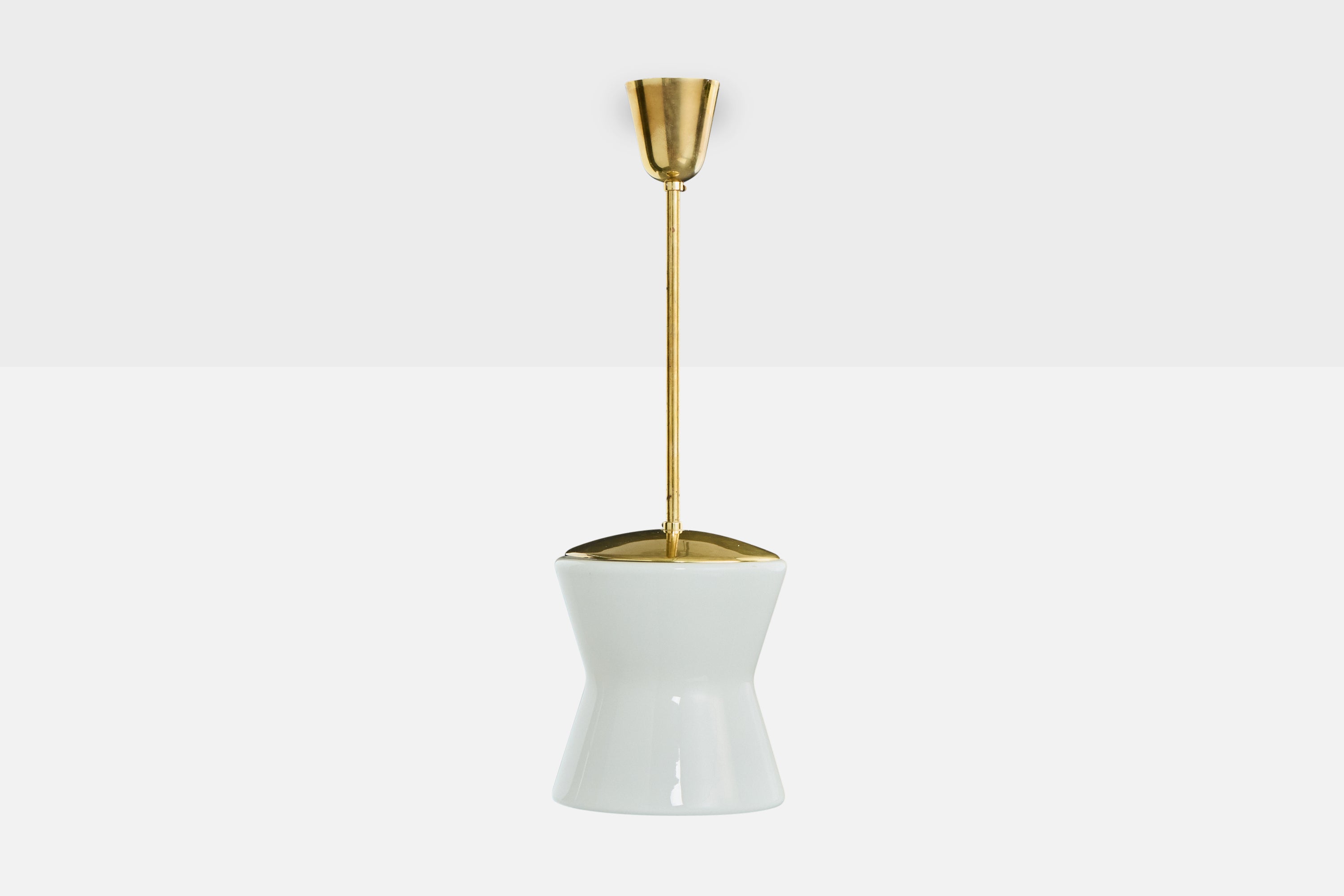A brass and white opaline glass pendant light produced by Idman, Finland, c. 1950s.