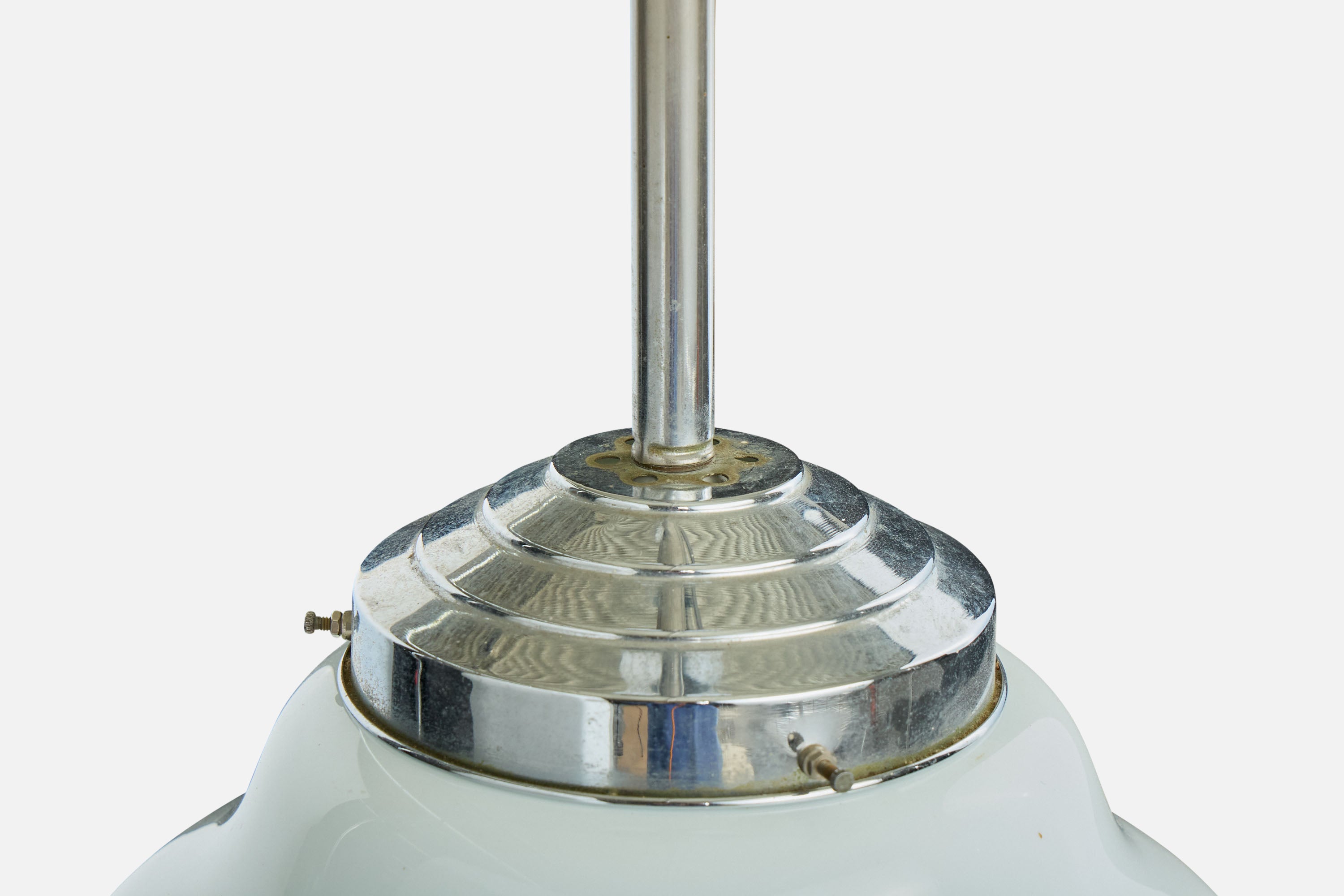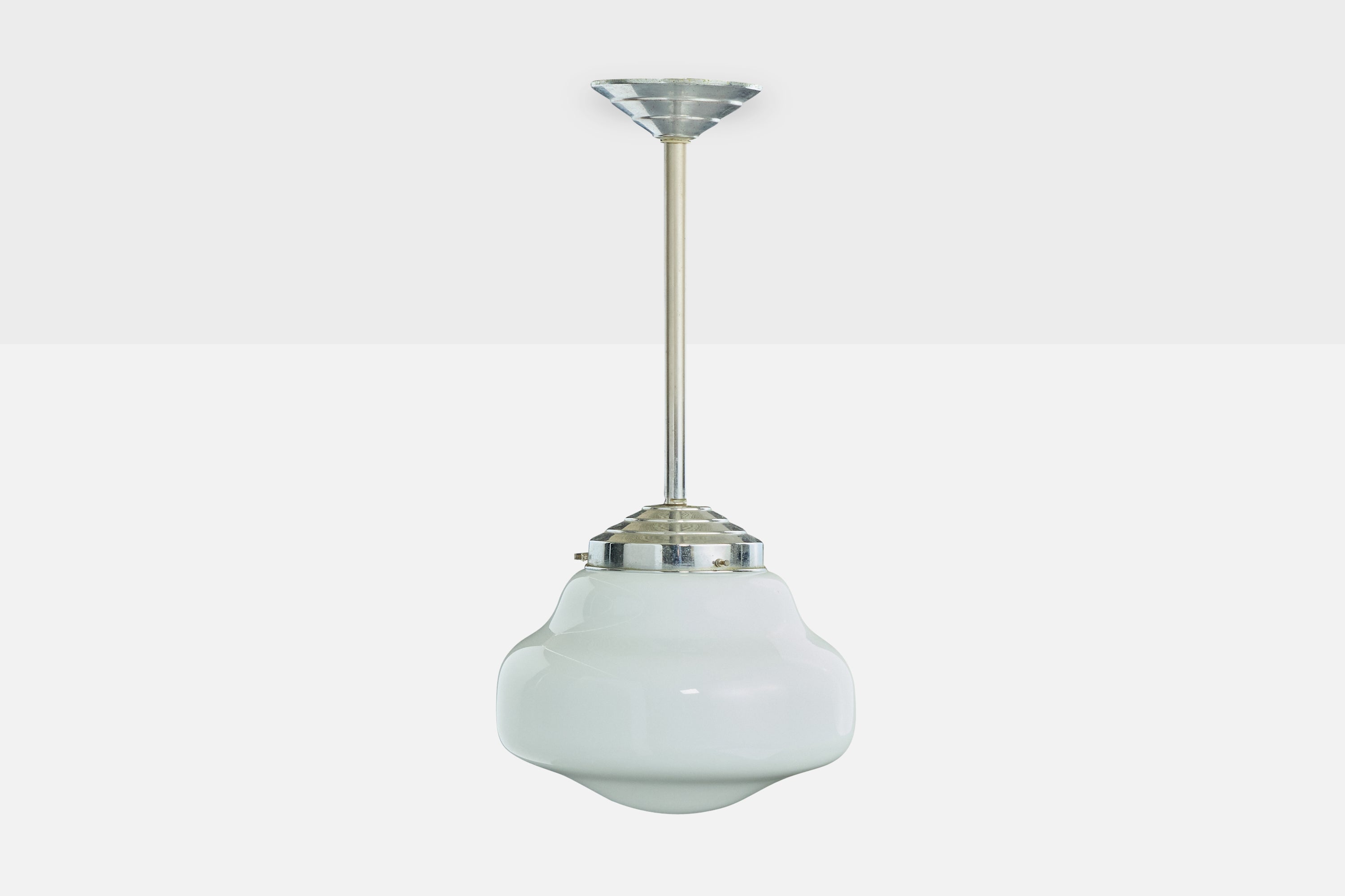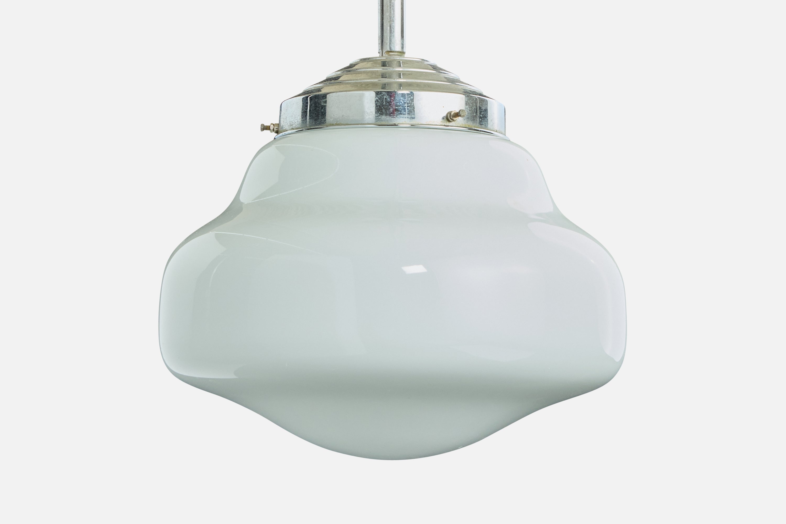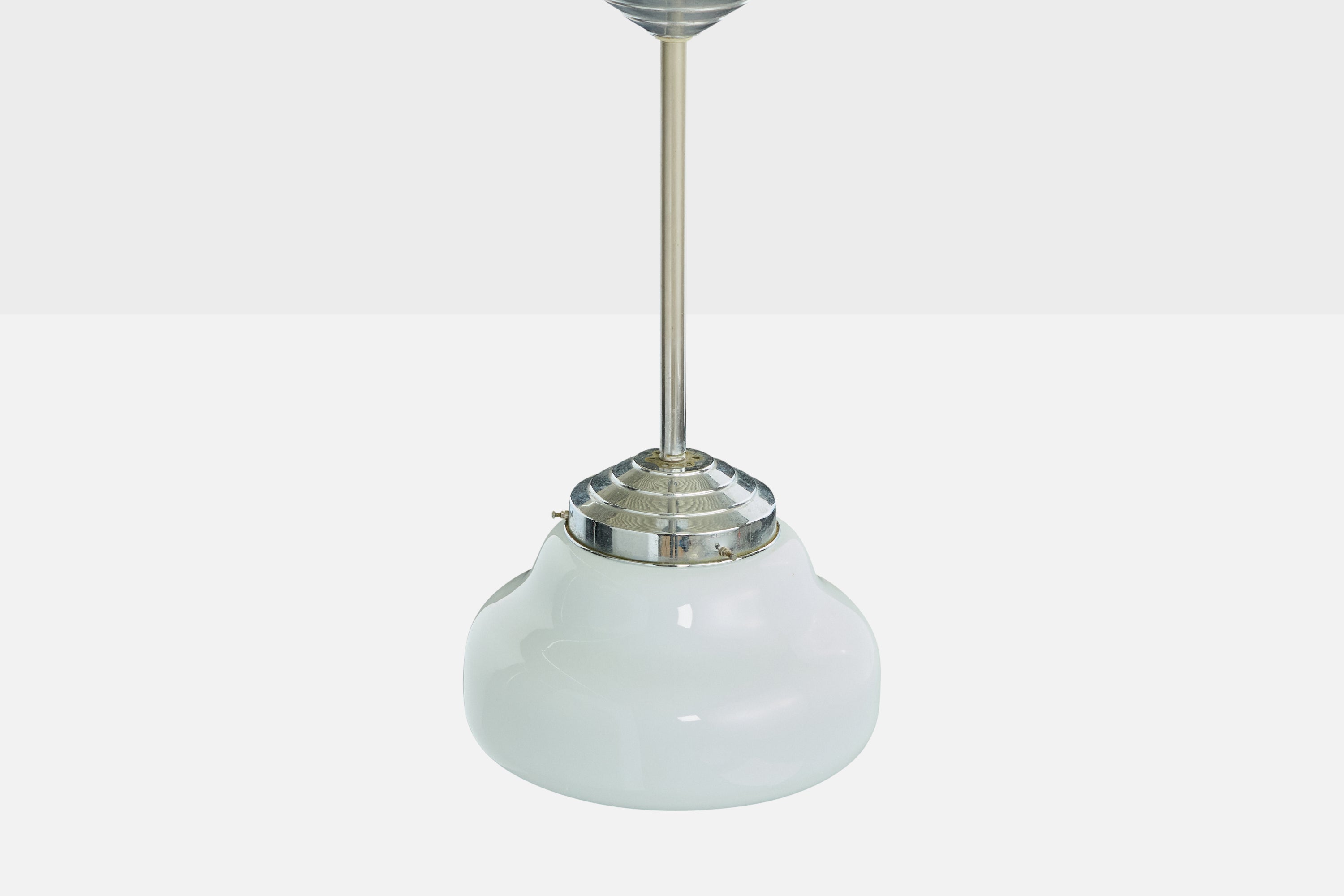 A white opaline glass and chrome-plated metal pendant light likely designed and produced in Germany, c. 1920s.