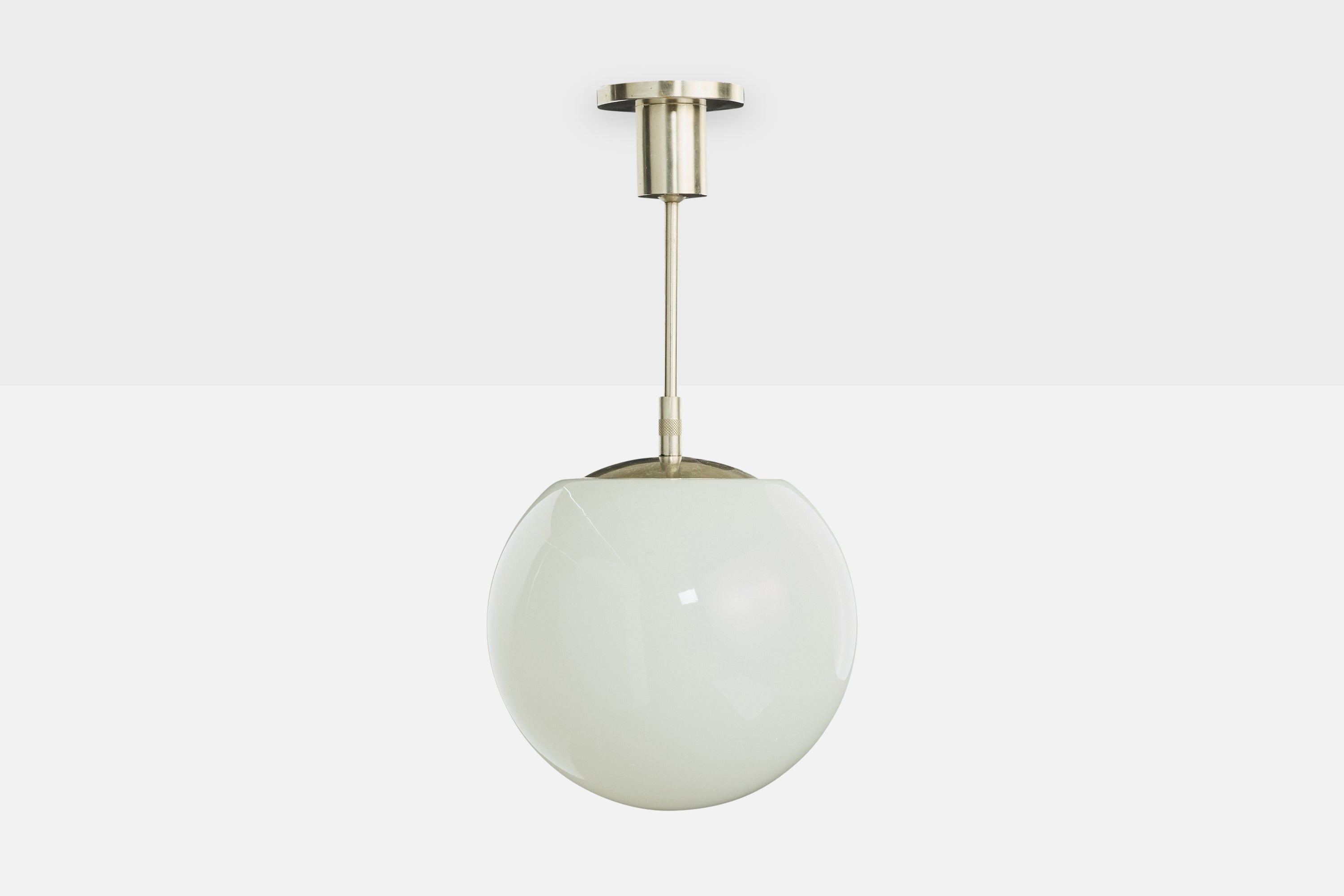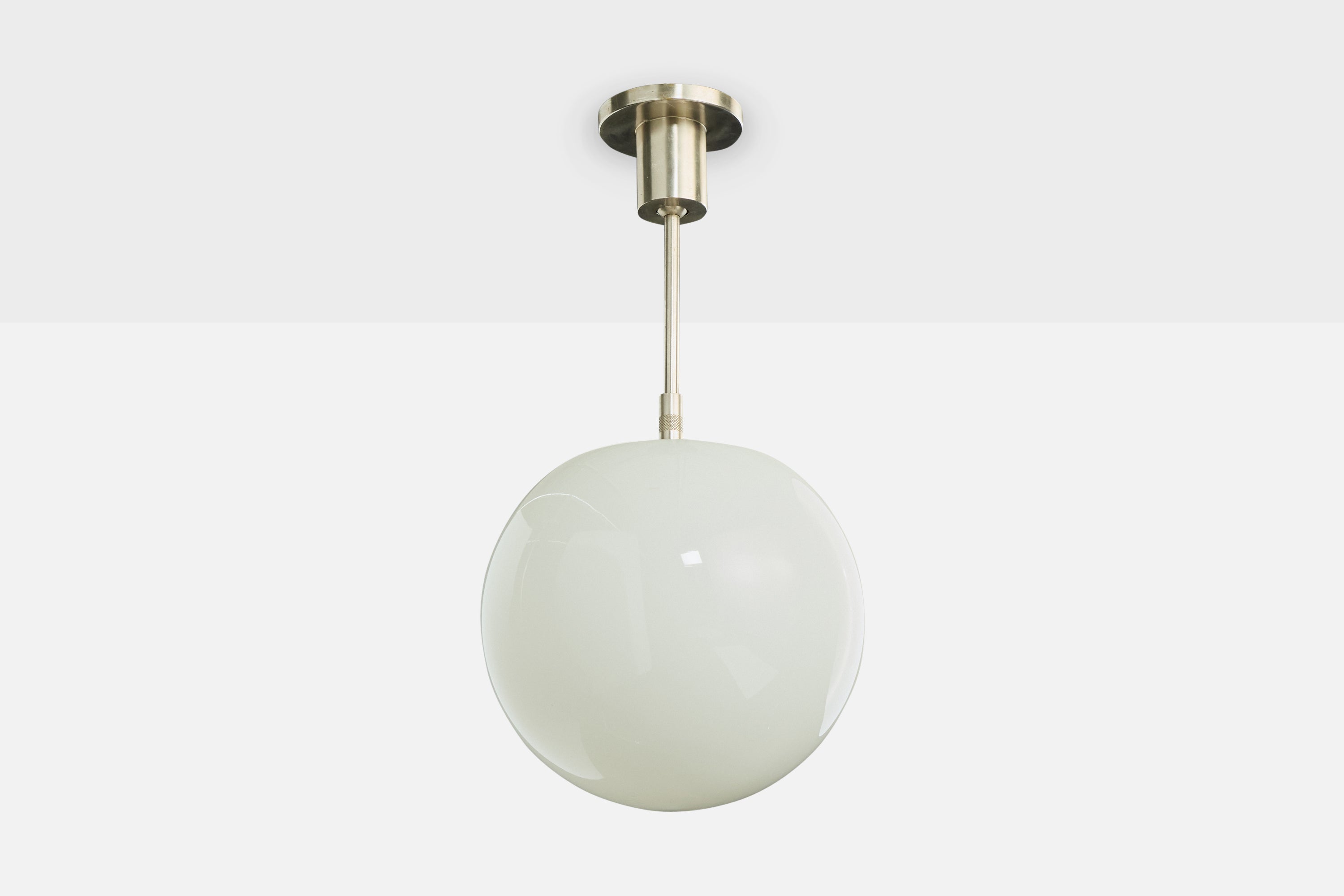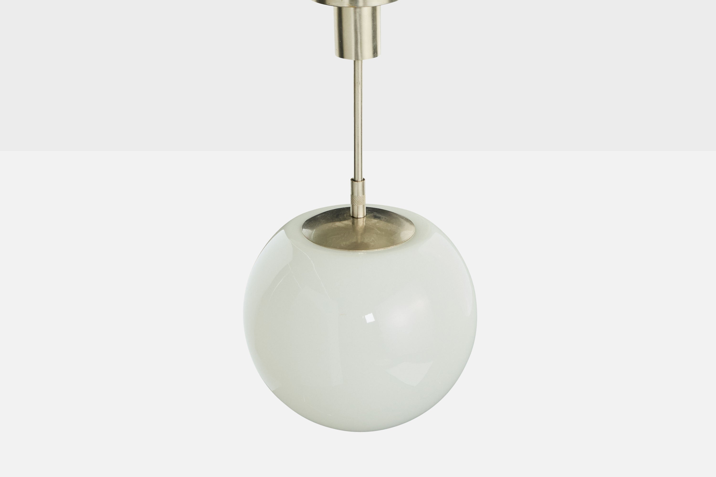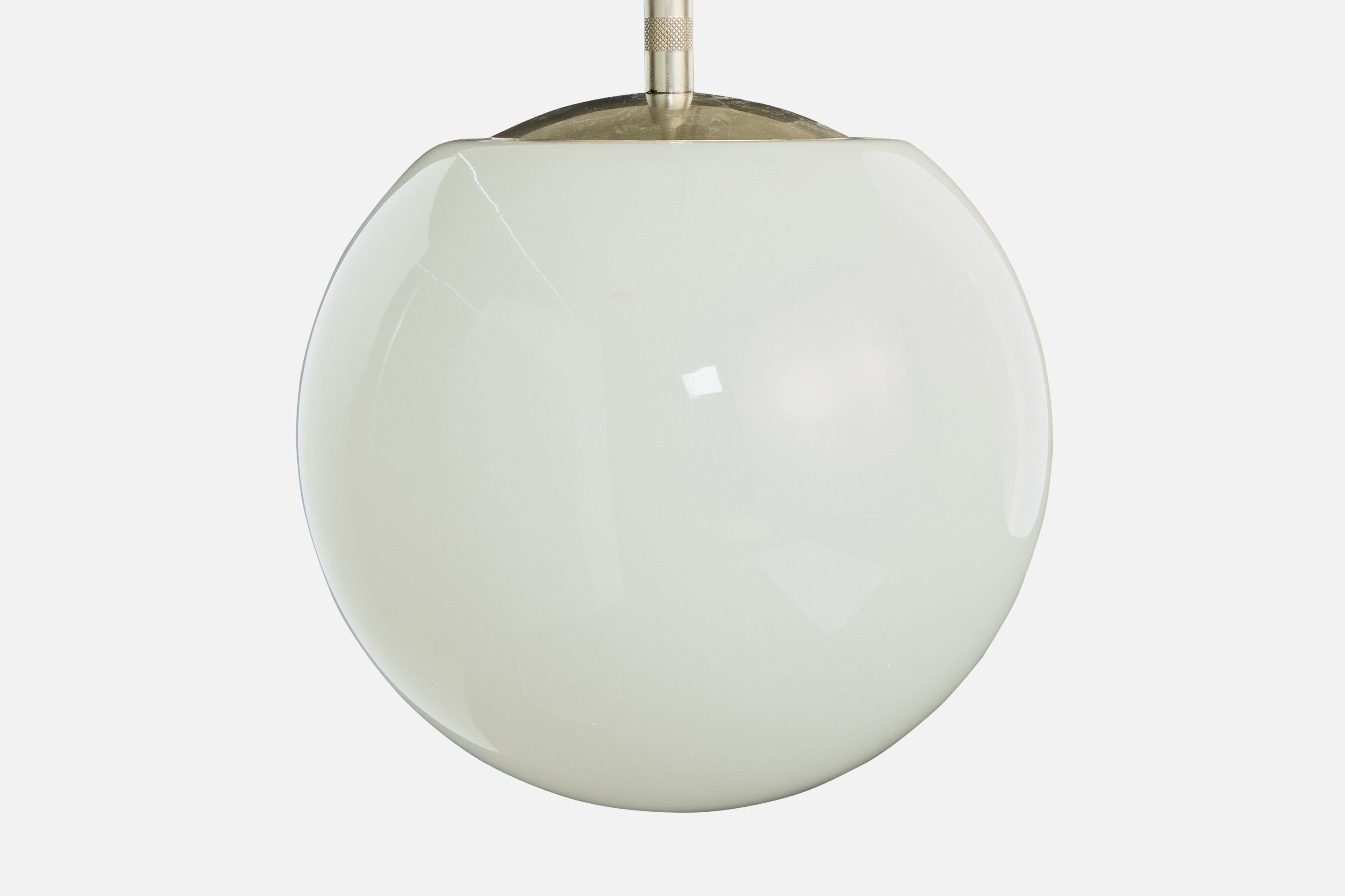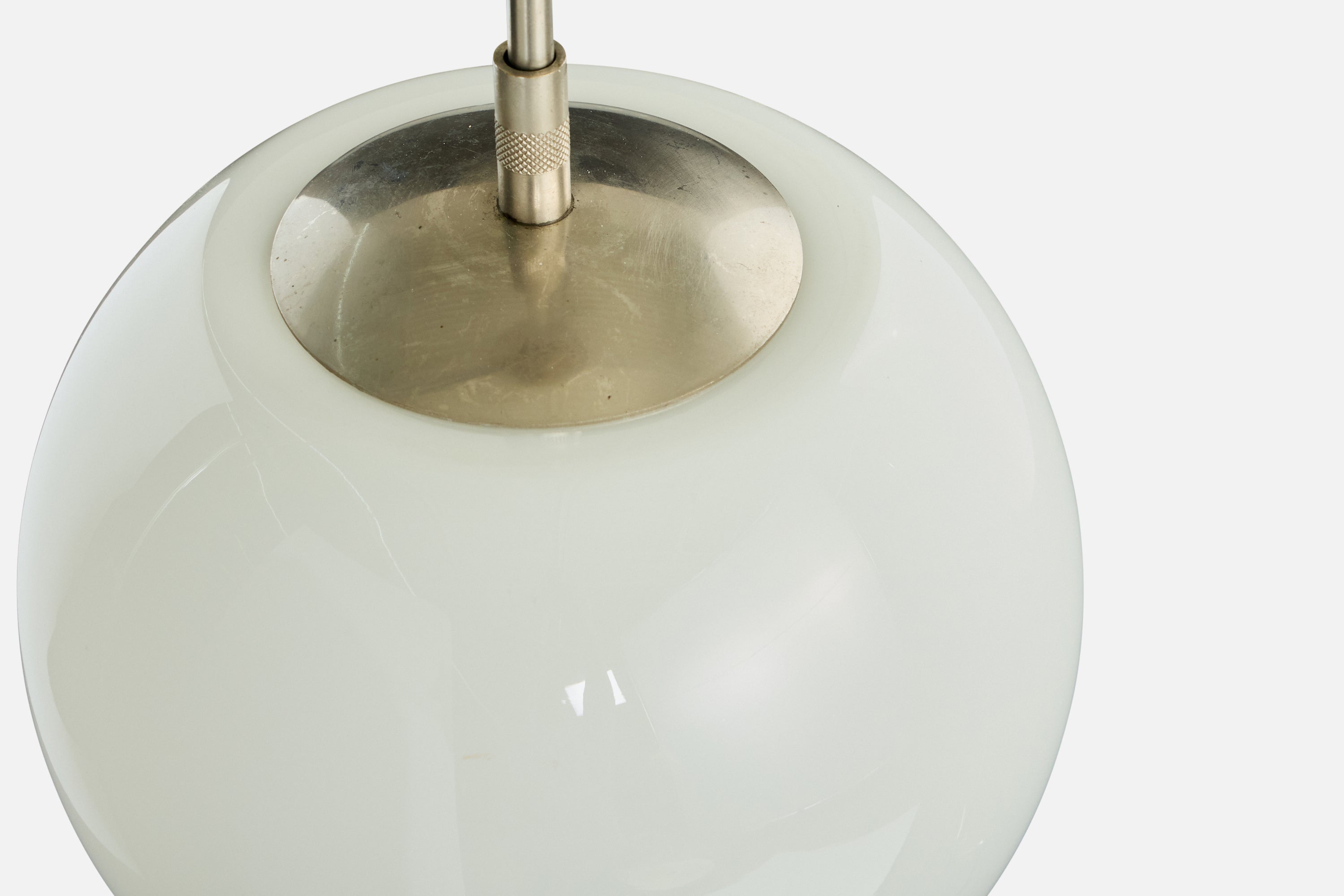A white opaline glass and chrome pendant light likely designed and produced in Sweden, c. 1930s.