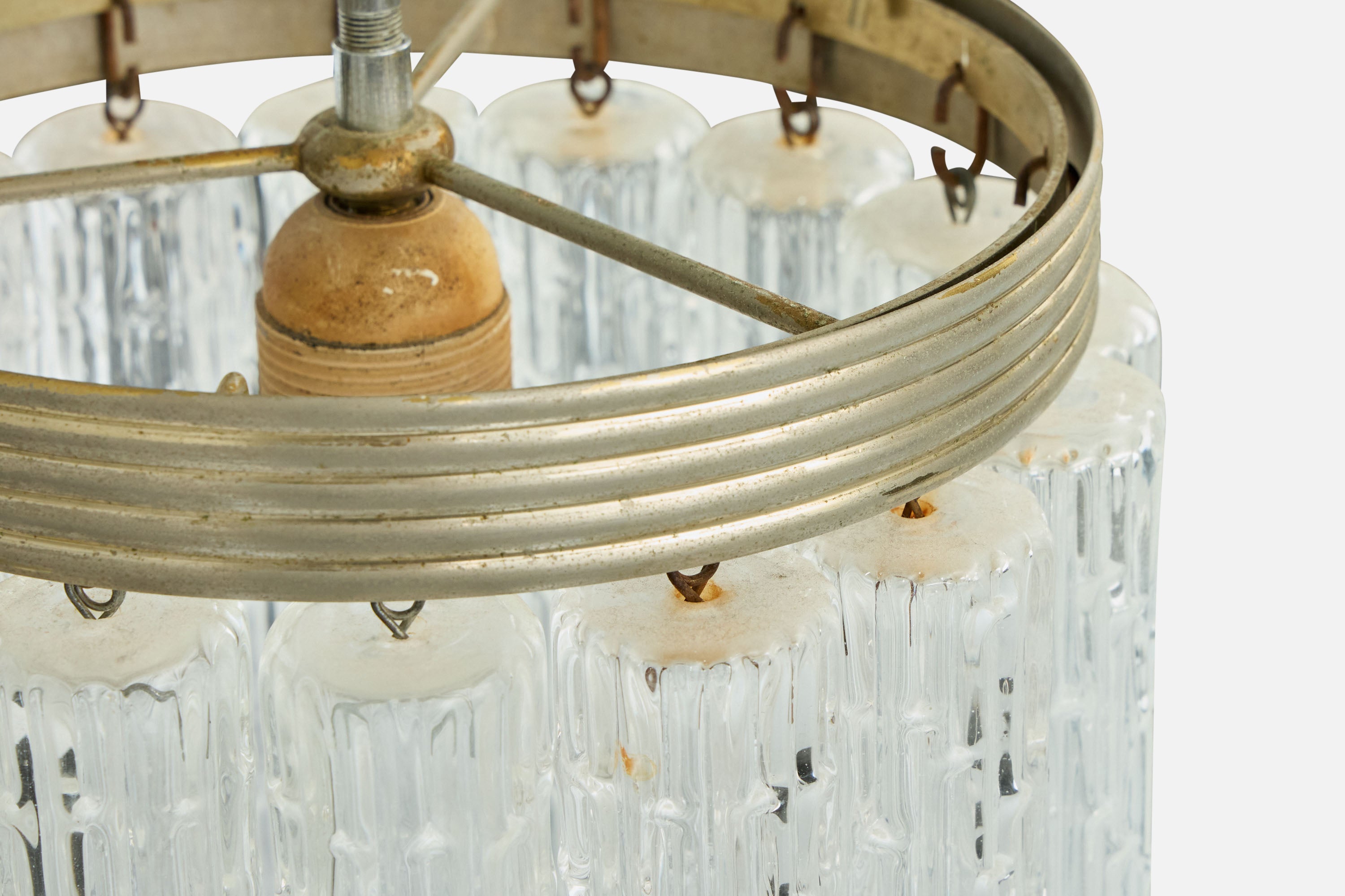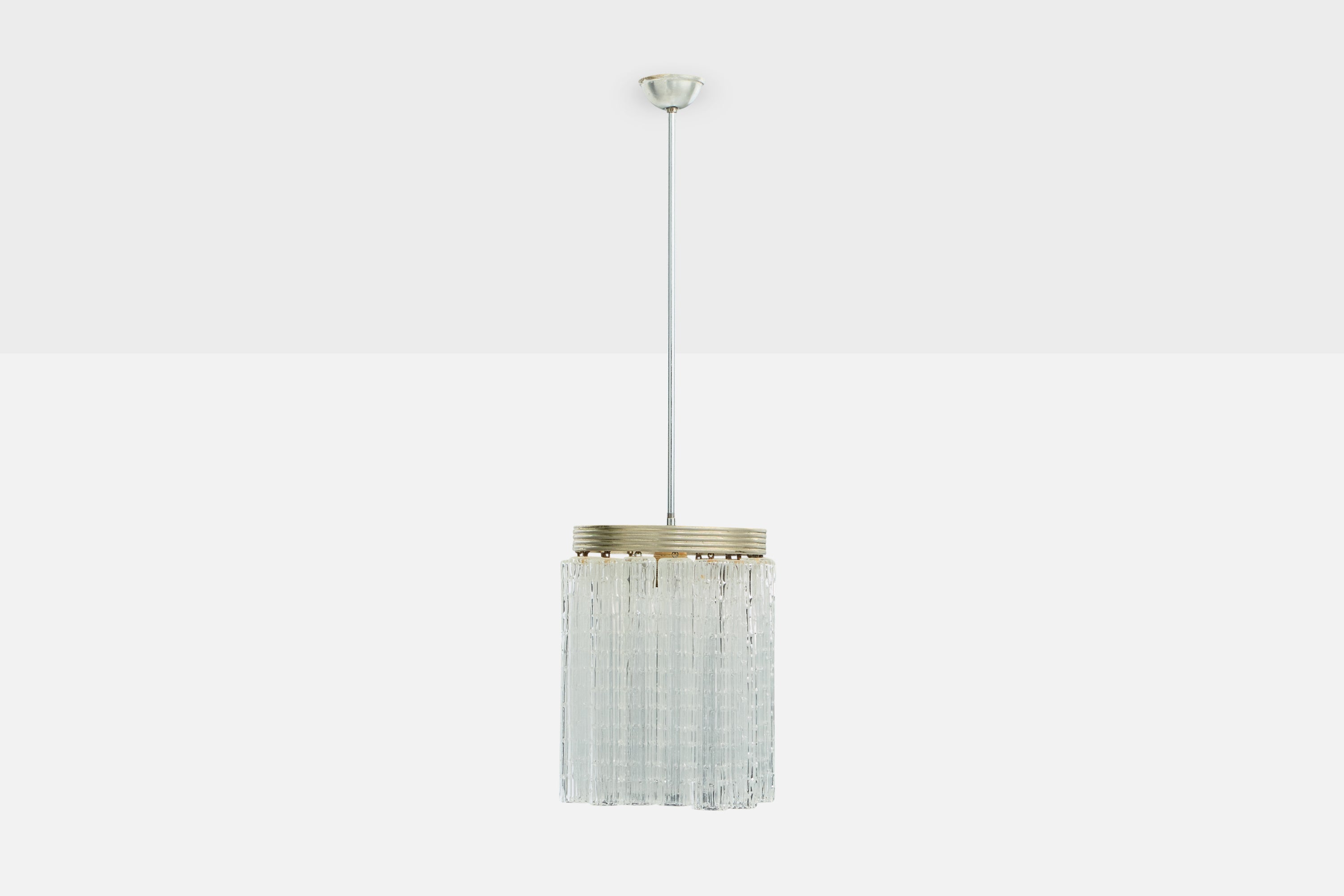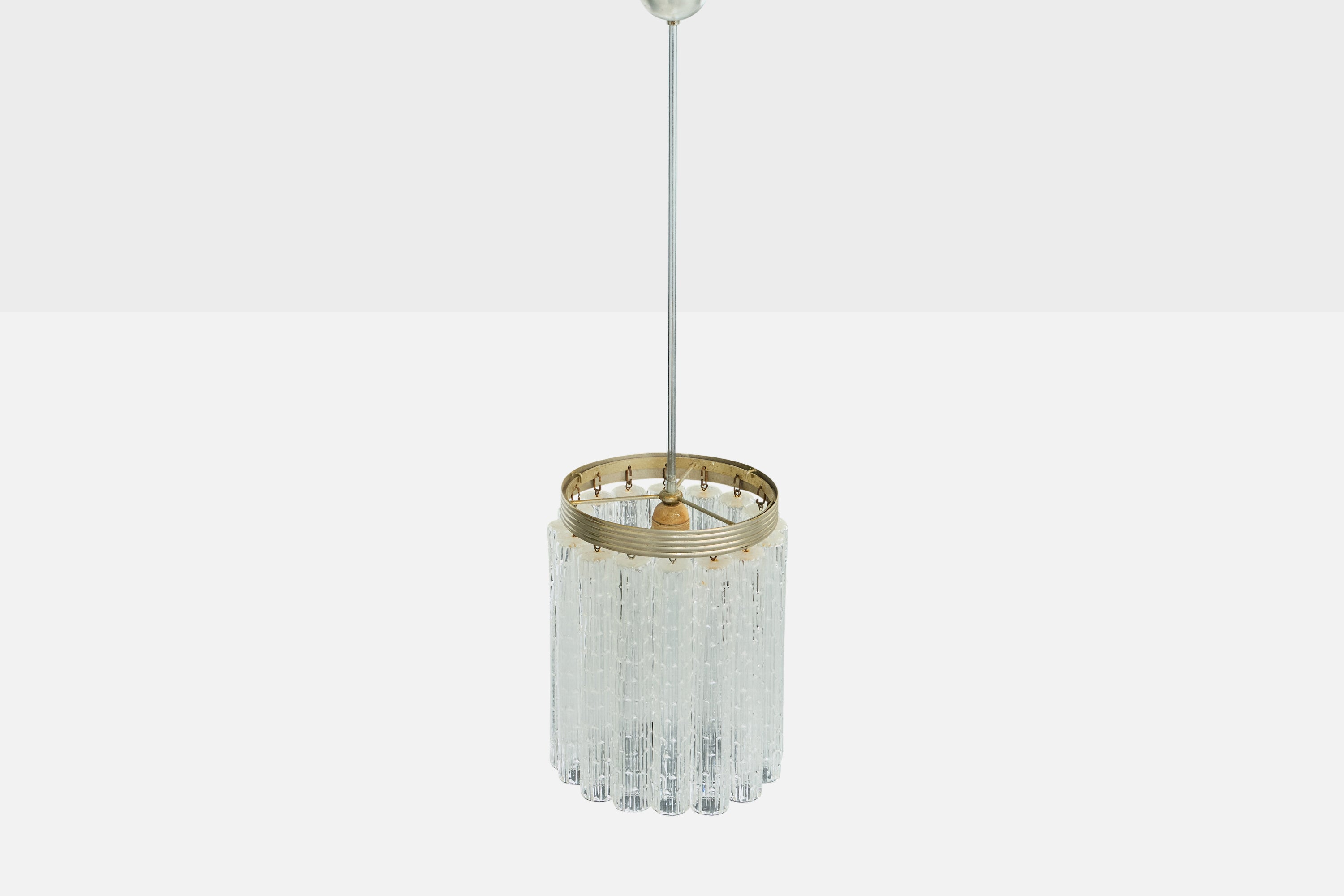 Italian Designer, Pendant Light, Glass, Metal, Italy, 1960s