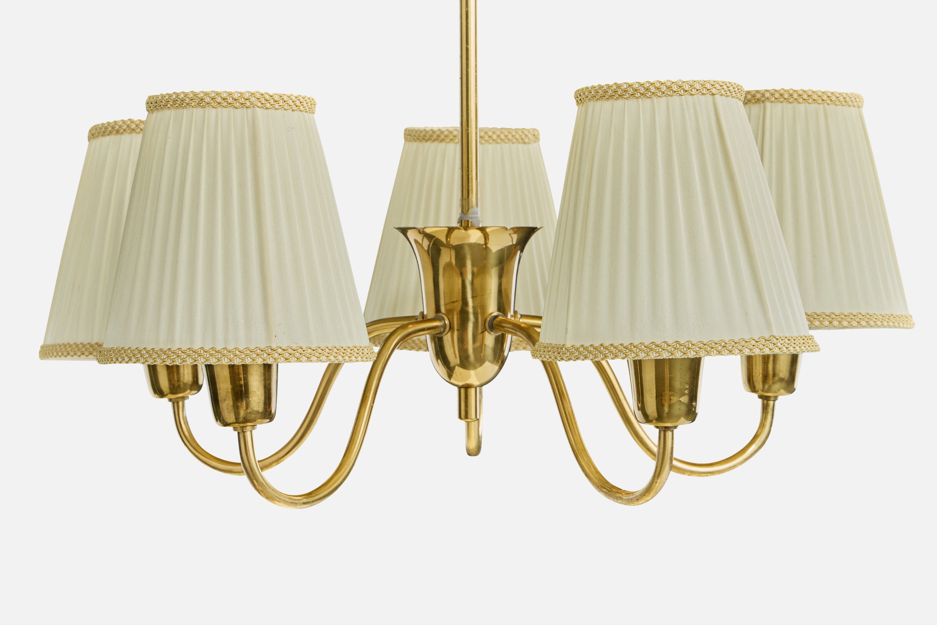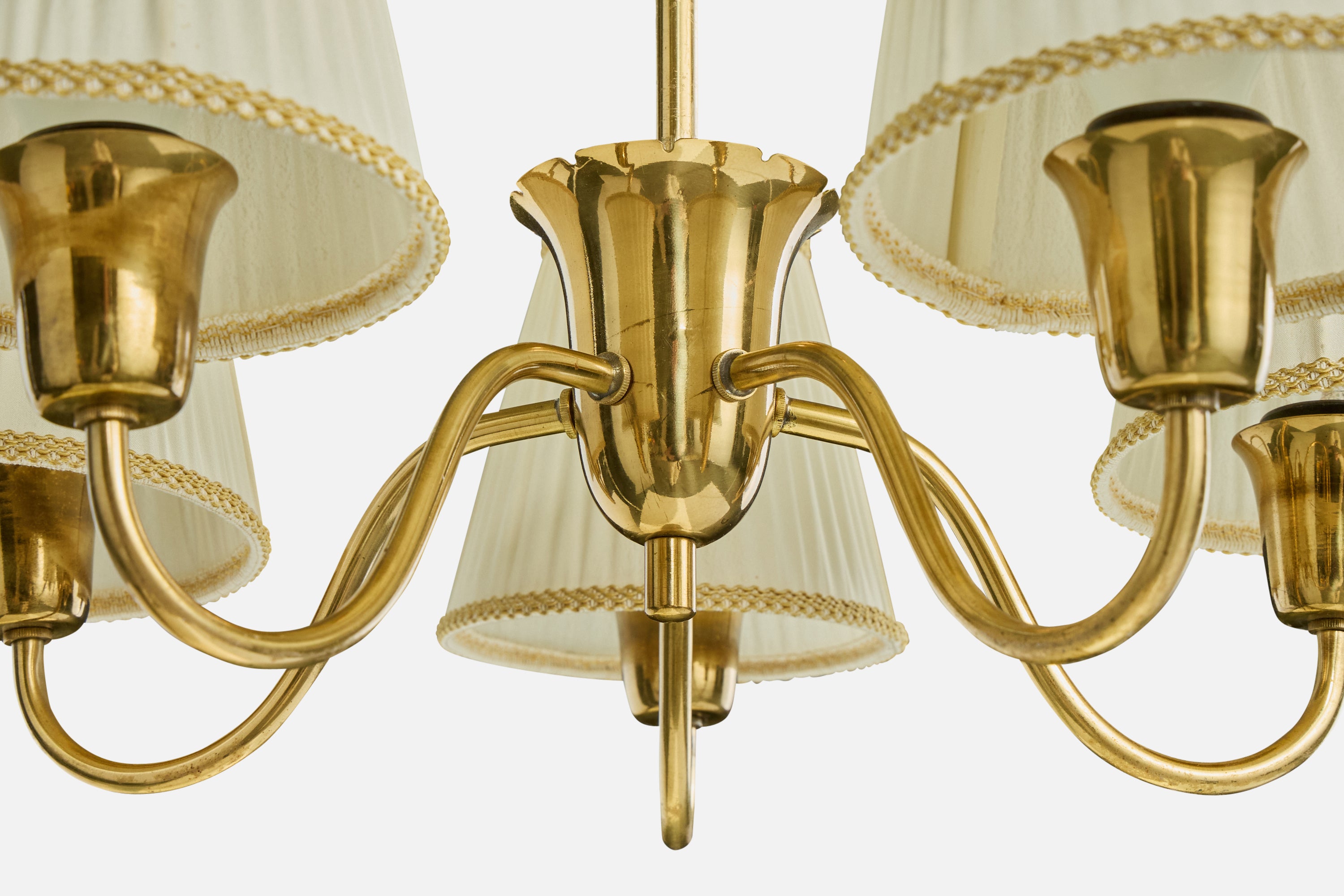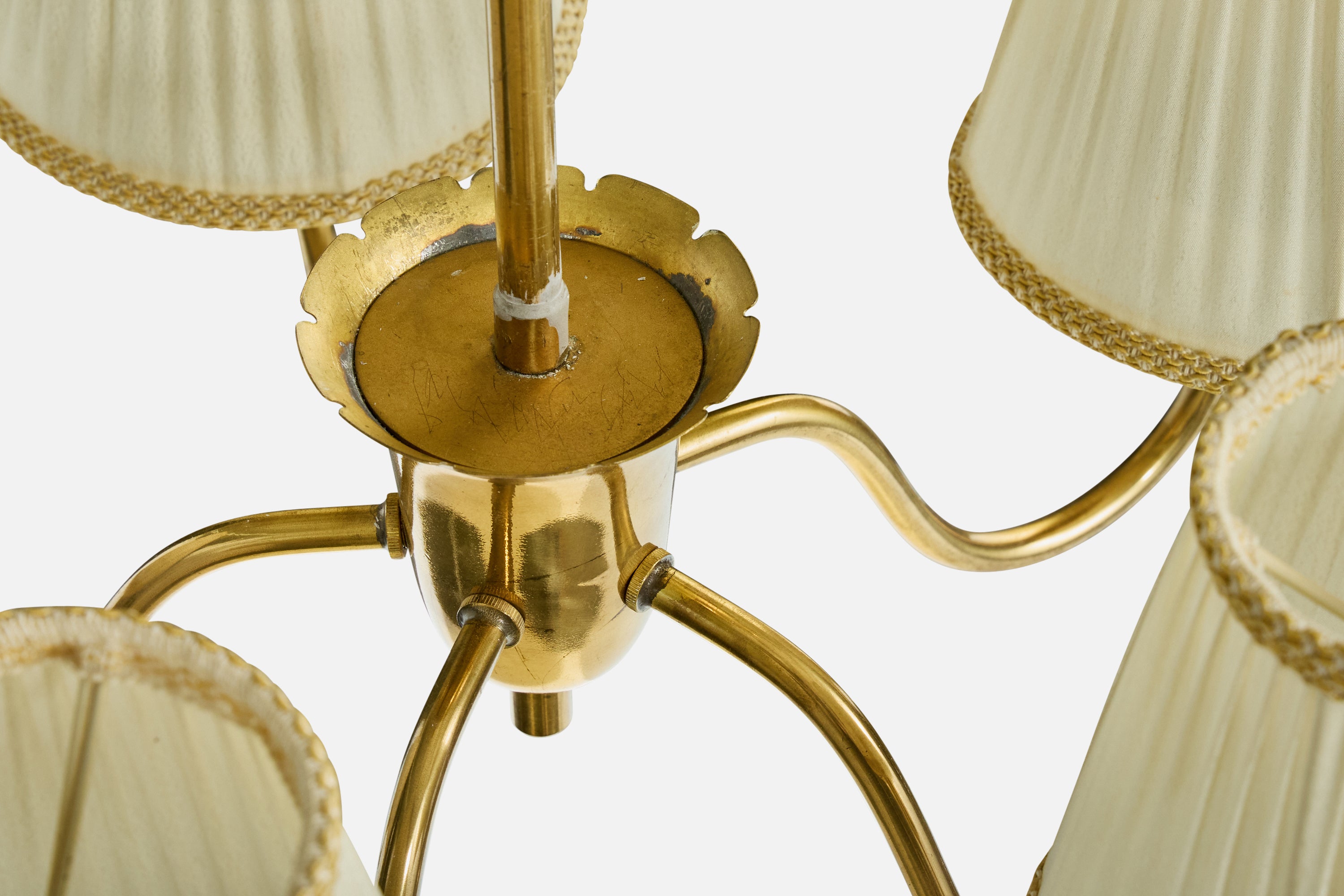 Swedish Designer, Chandelier, Brass, Fabric, Sweden, 1950s