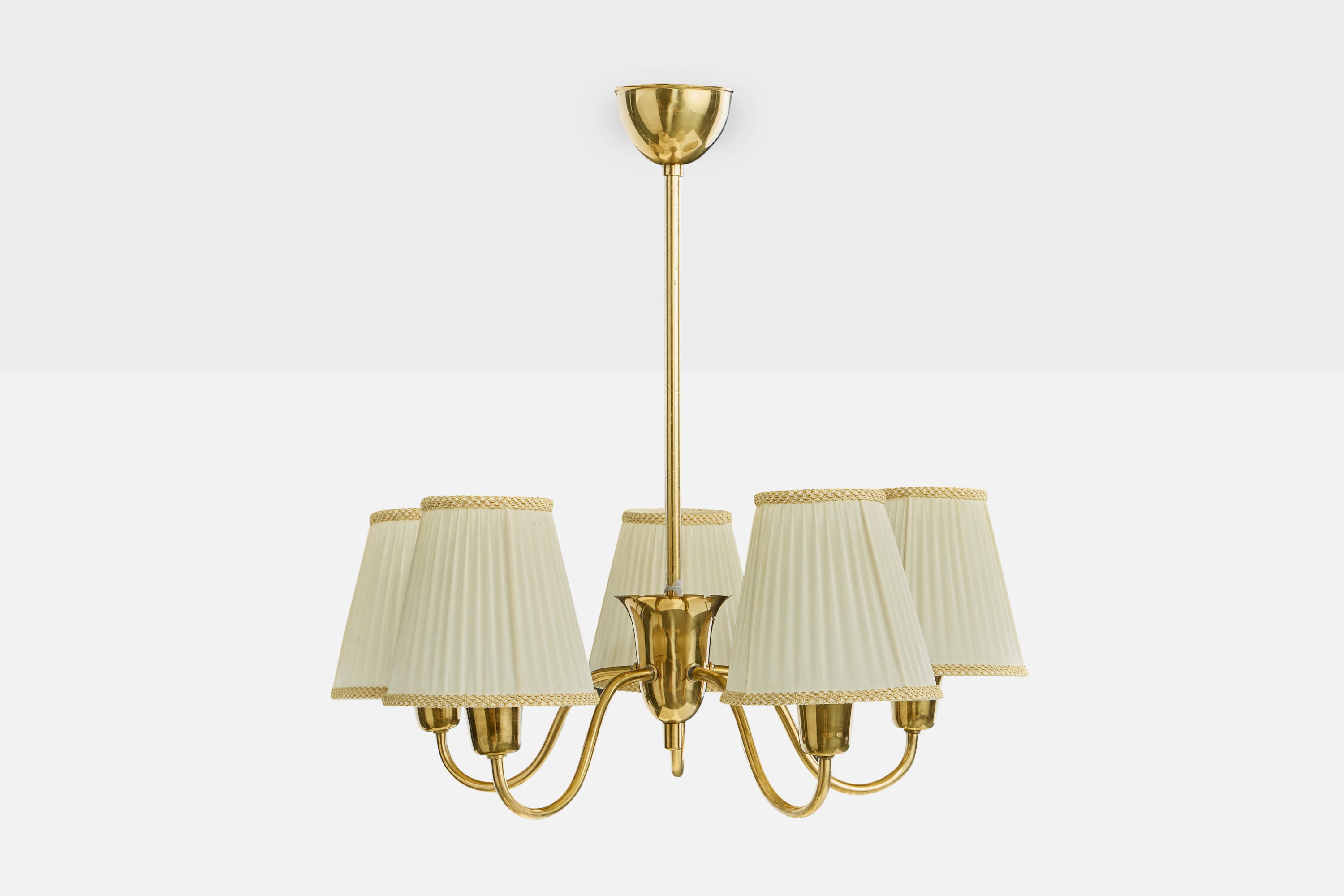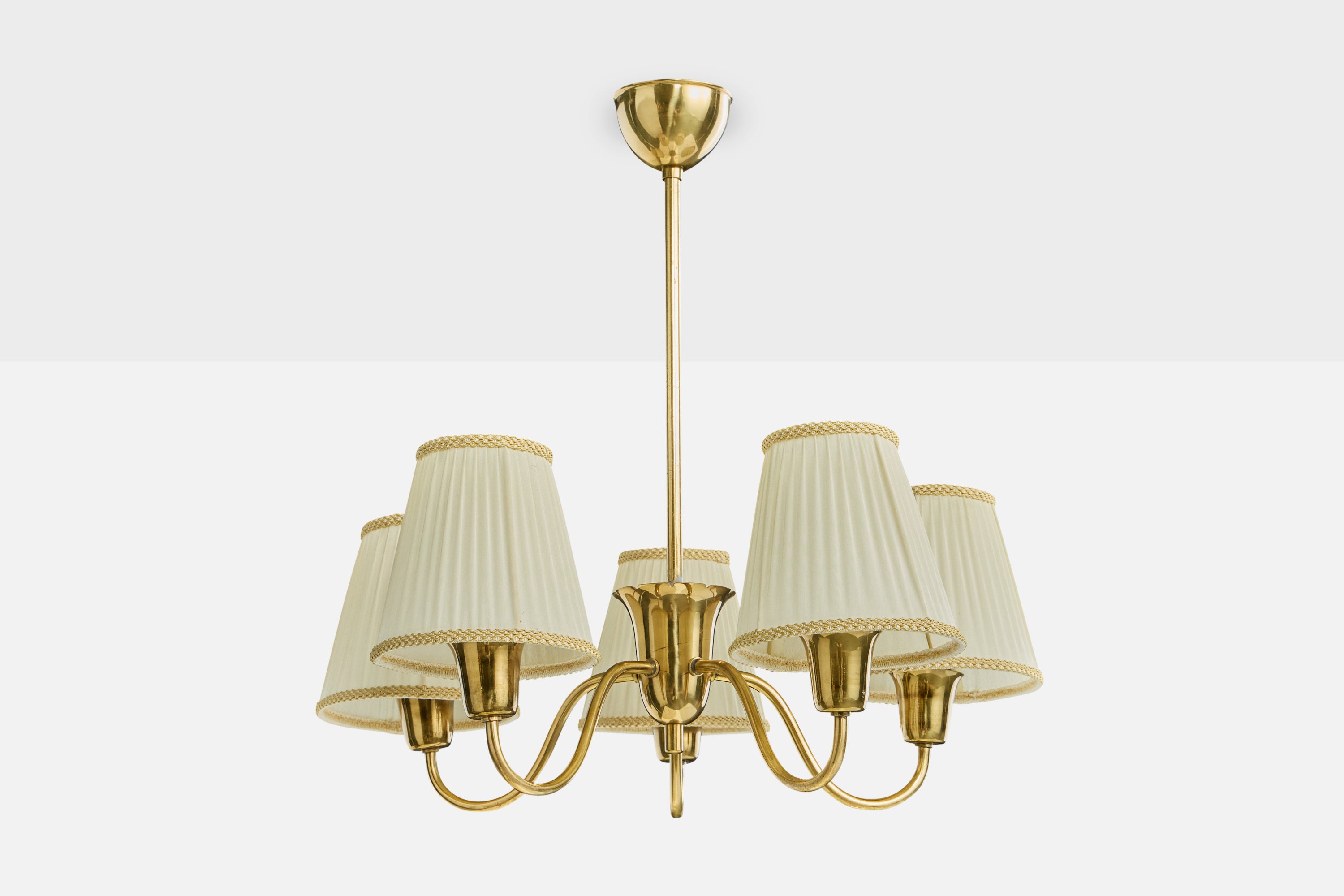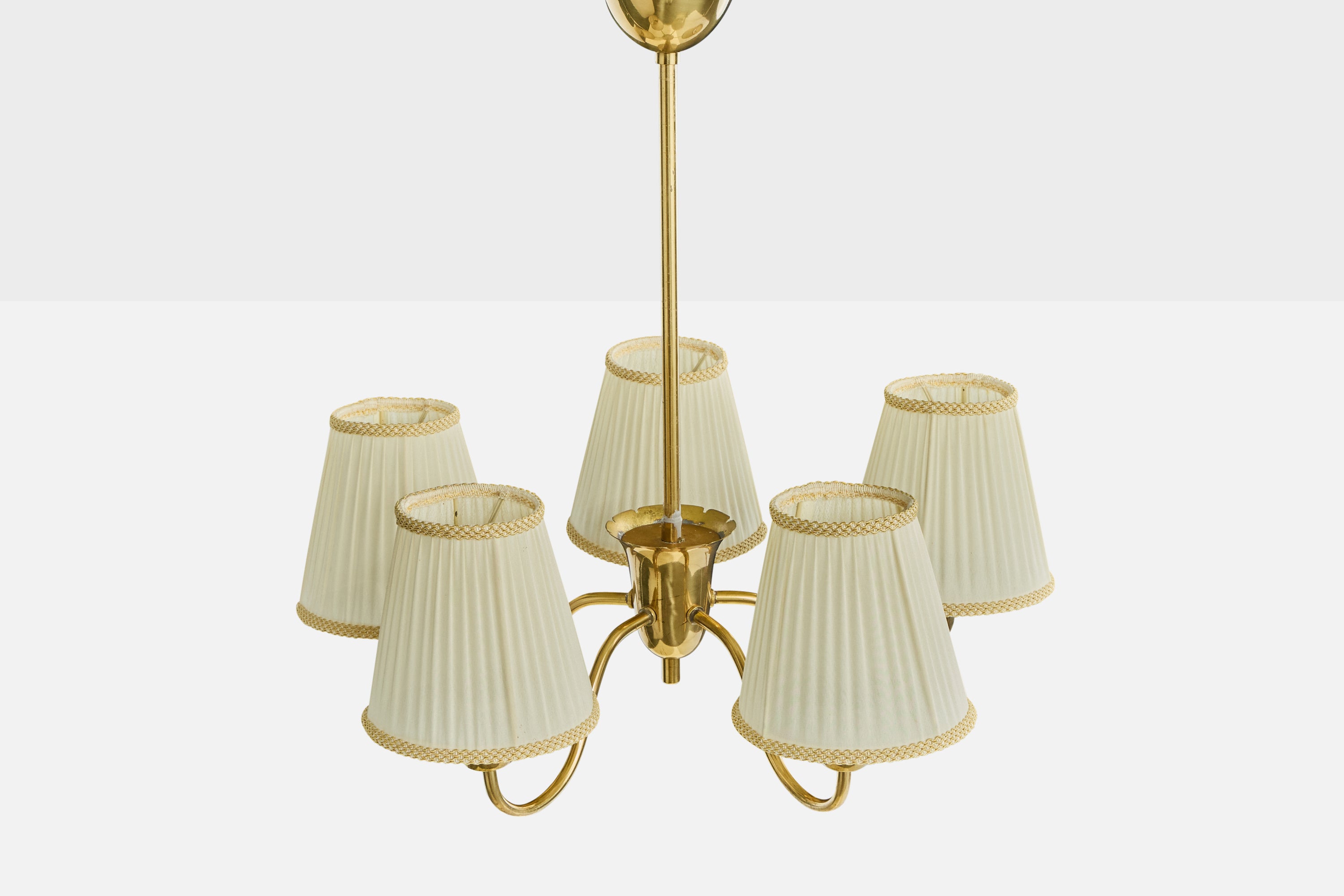 Swedish Designer, Chandelier, Brass, Fabric, Sweden, 1950s