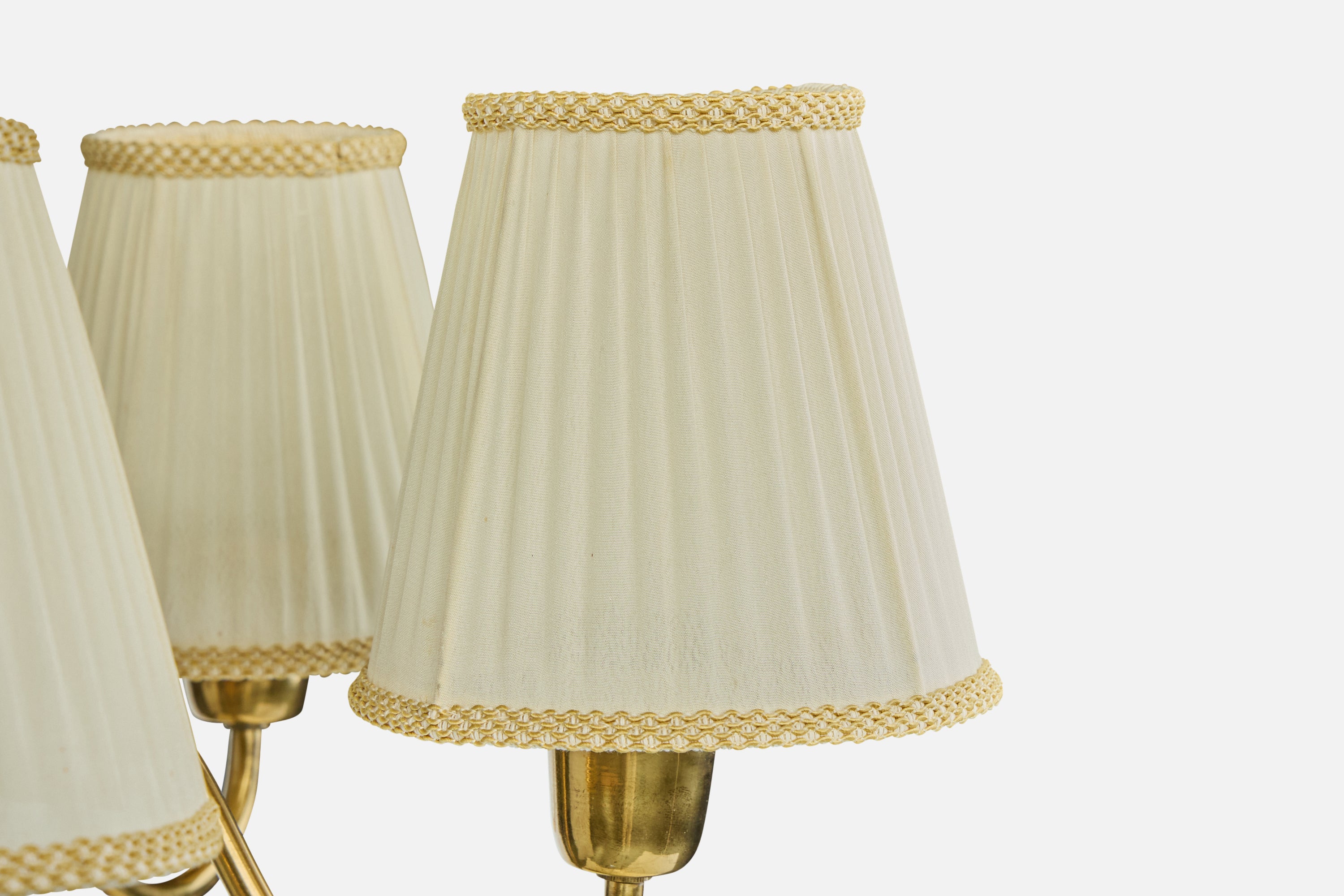 A brass and white fabric chandelier designed and produced in Sweden, c. 1950s.