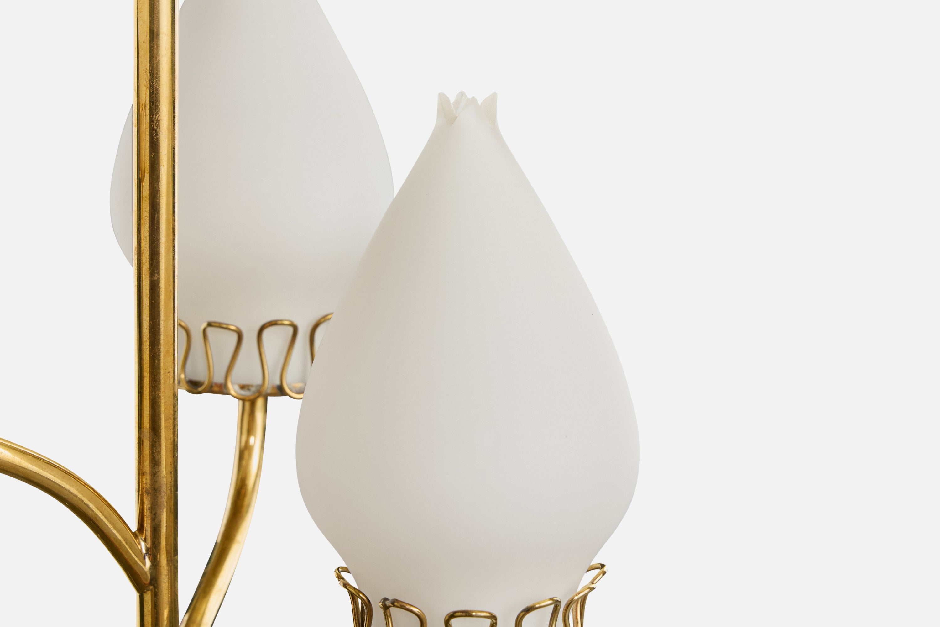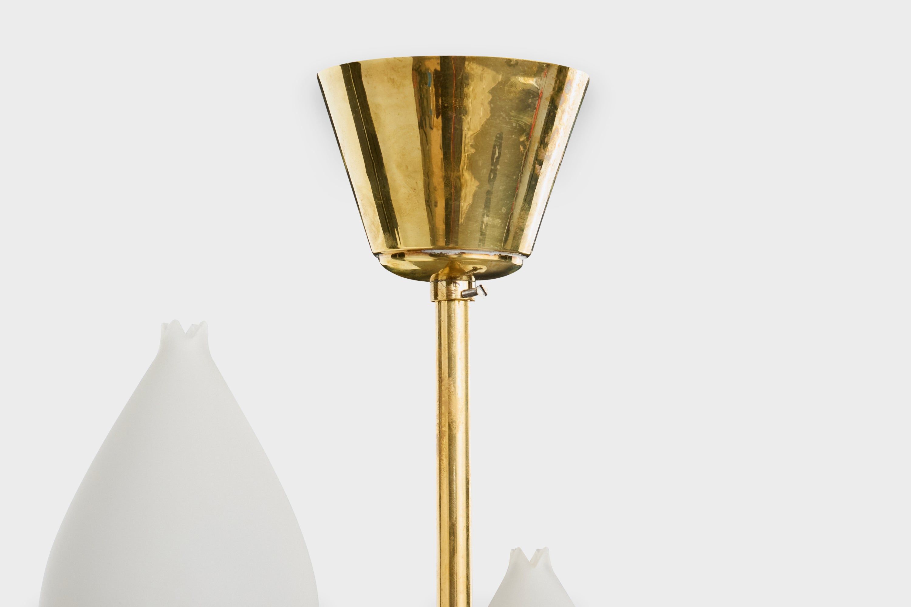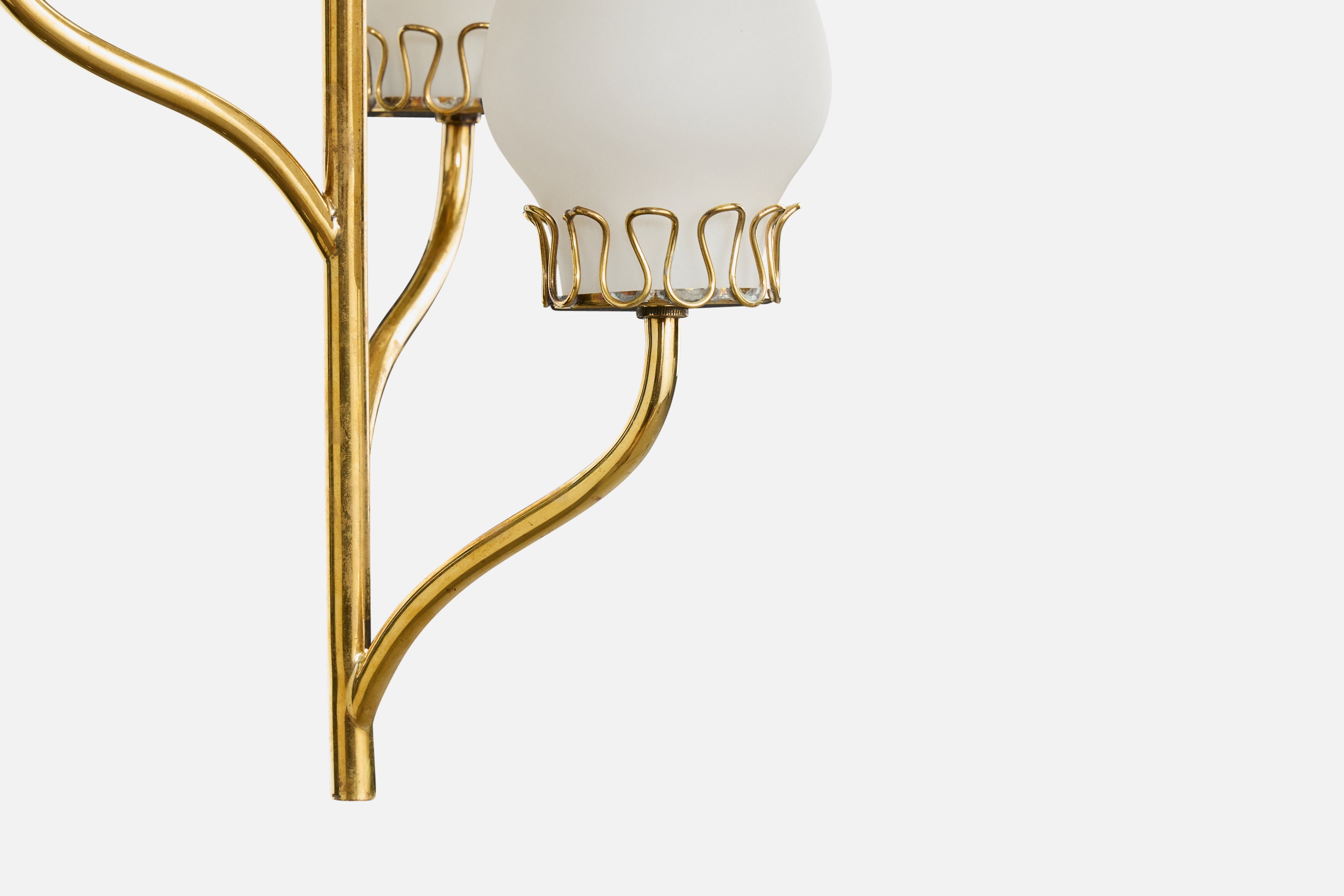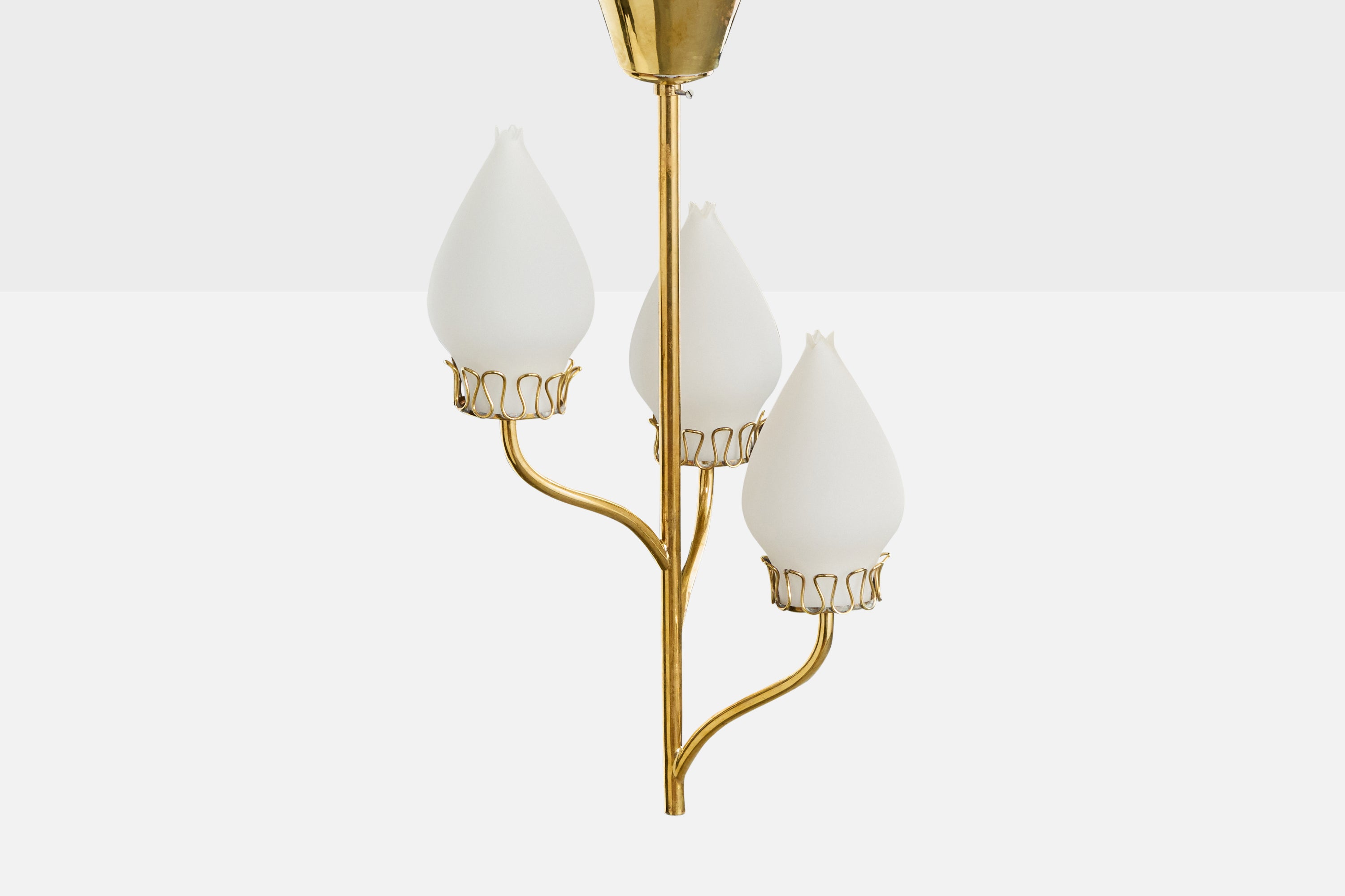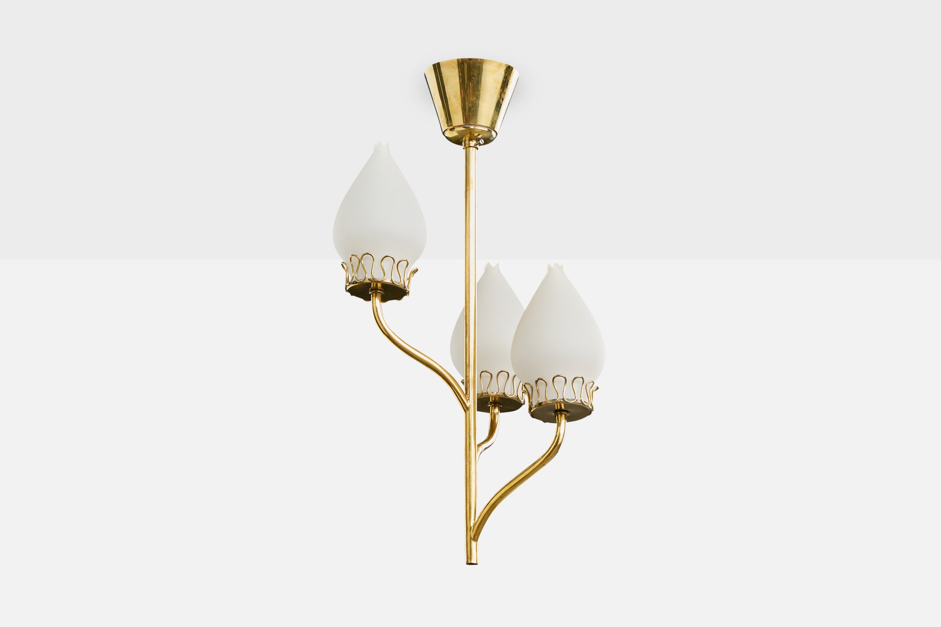 A brass and white opaline glass chandelier designed and produced in Sweden, c. 1950s.