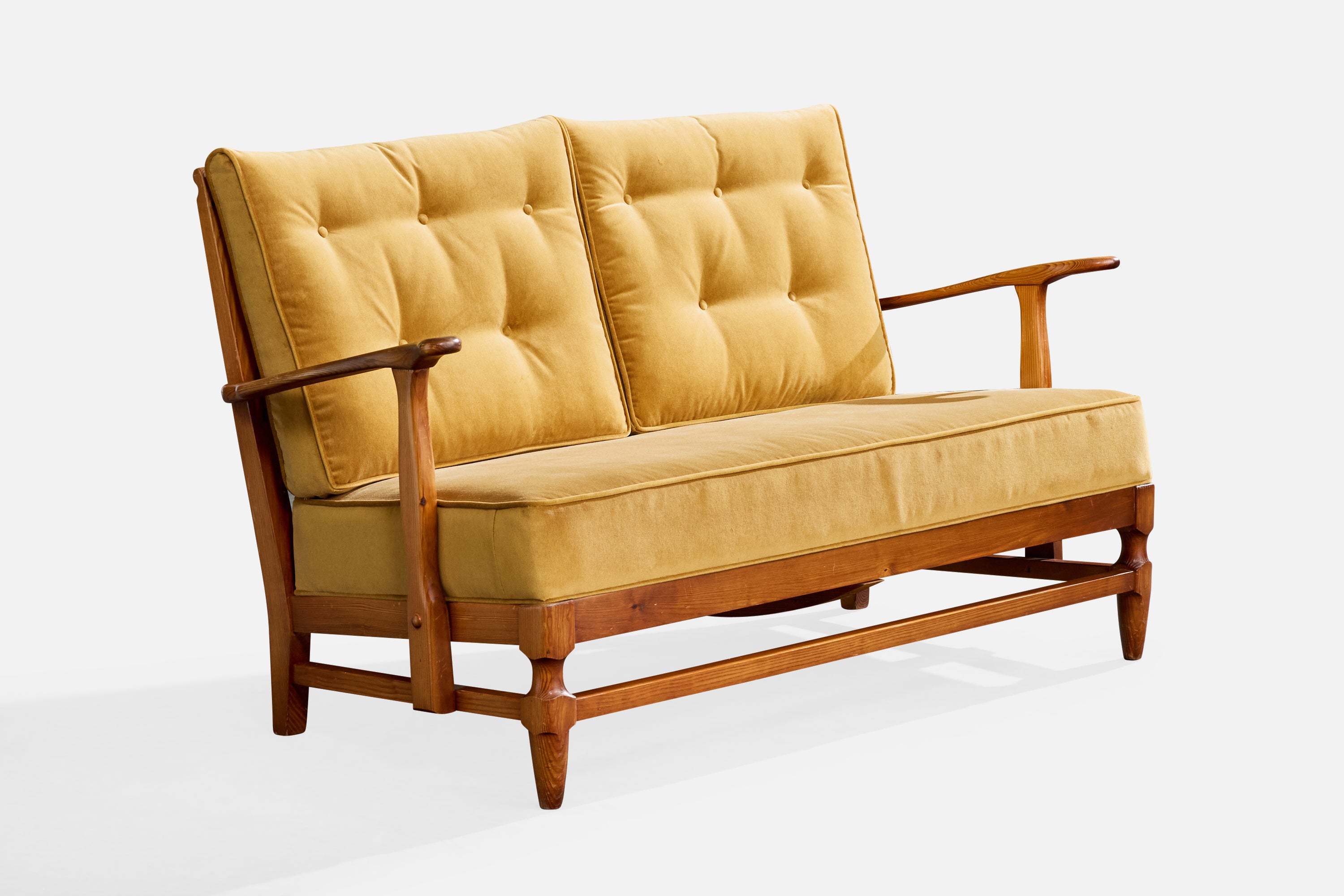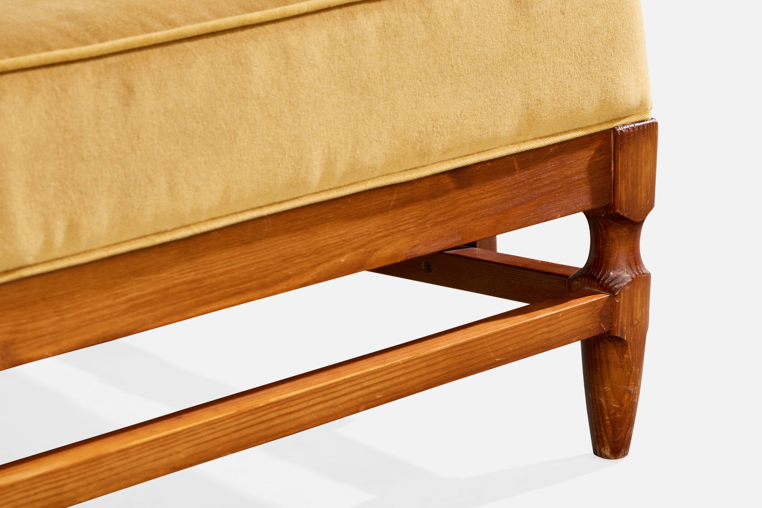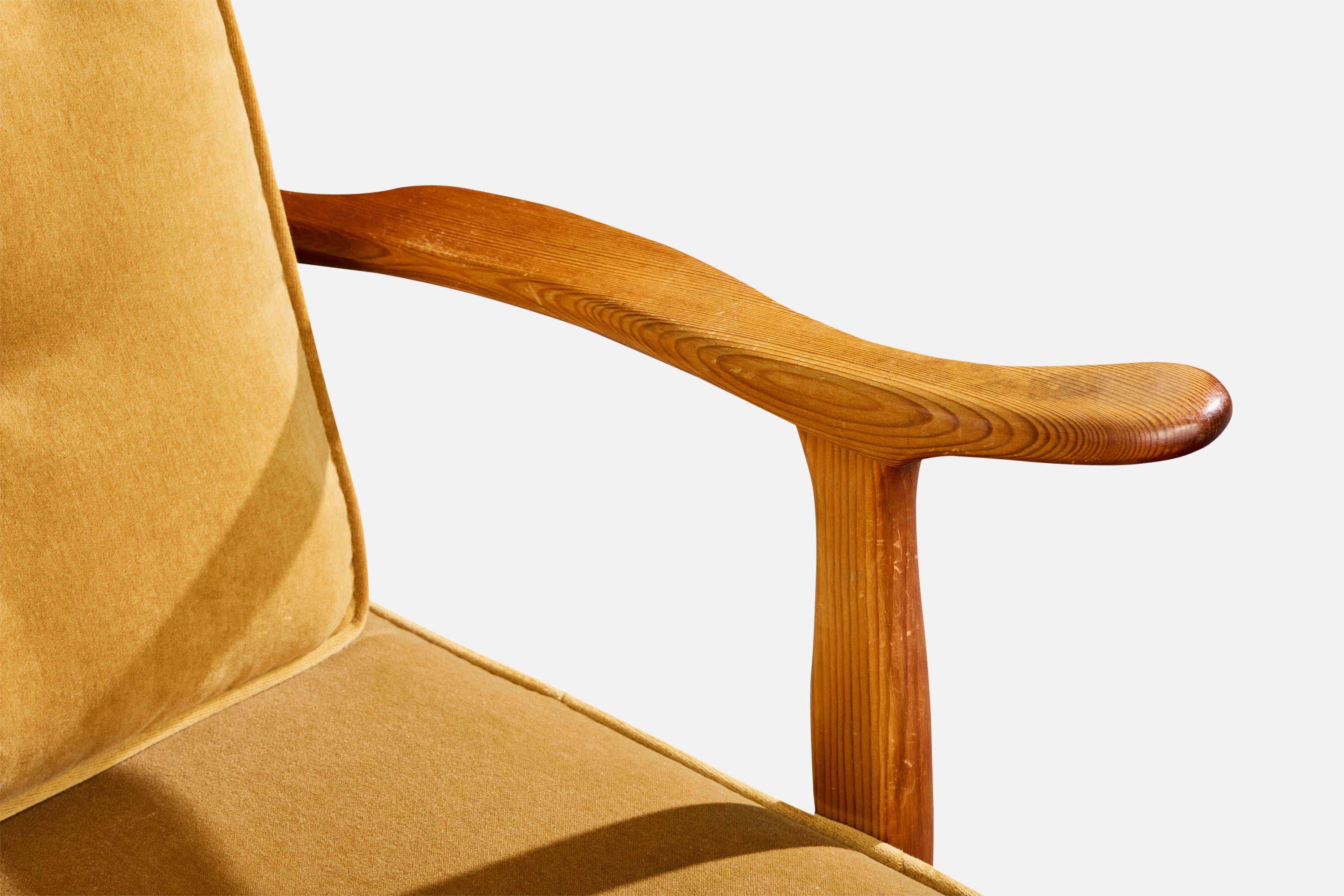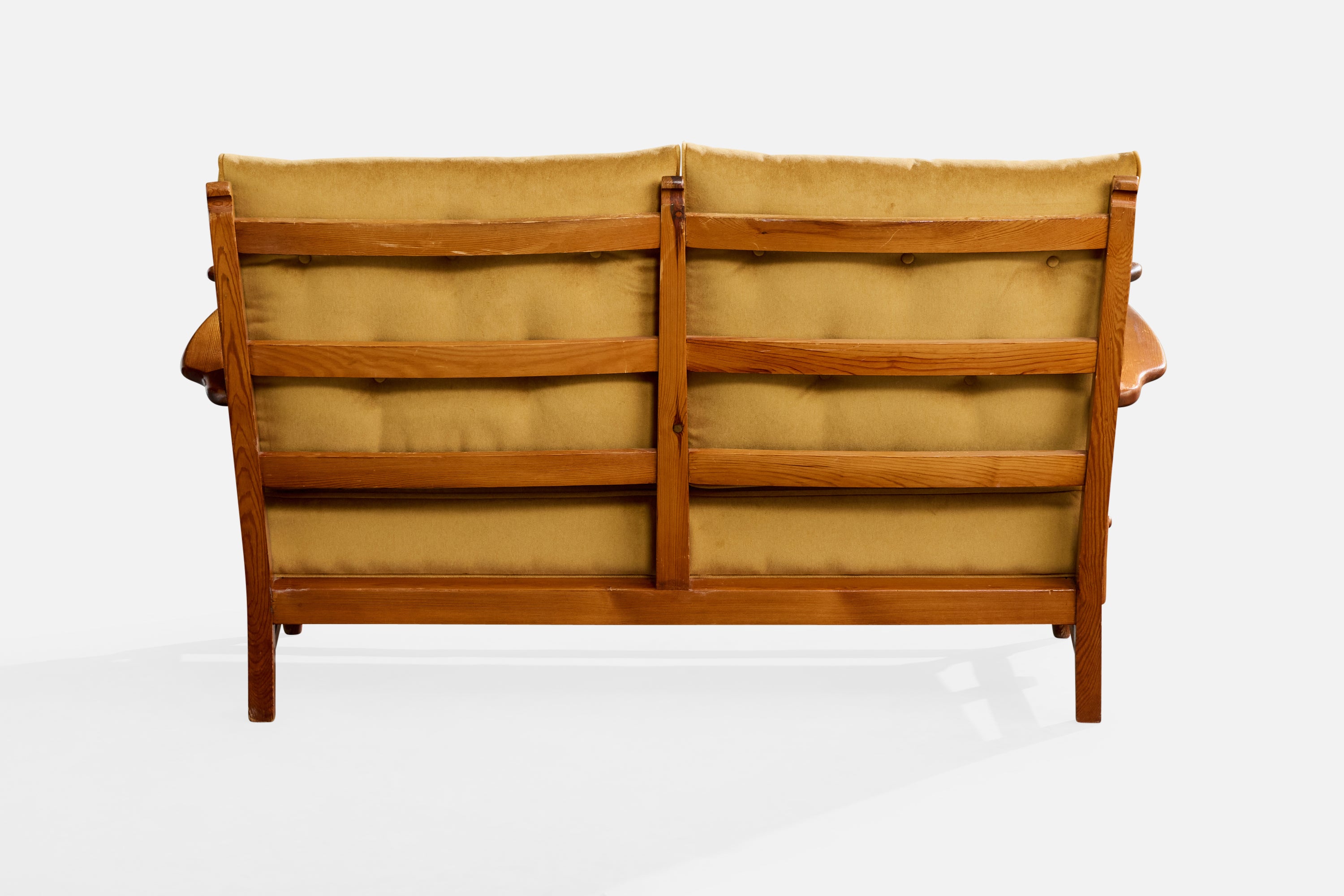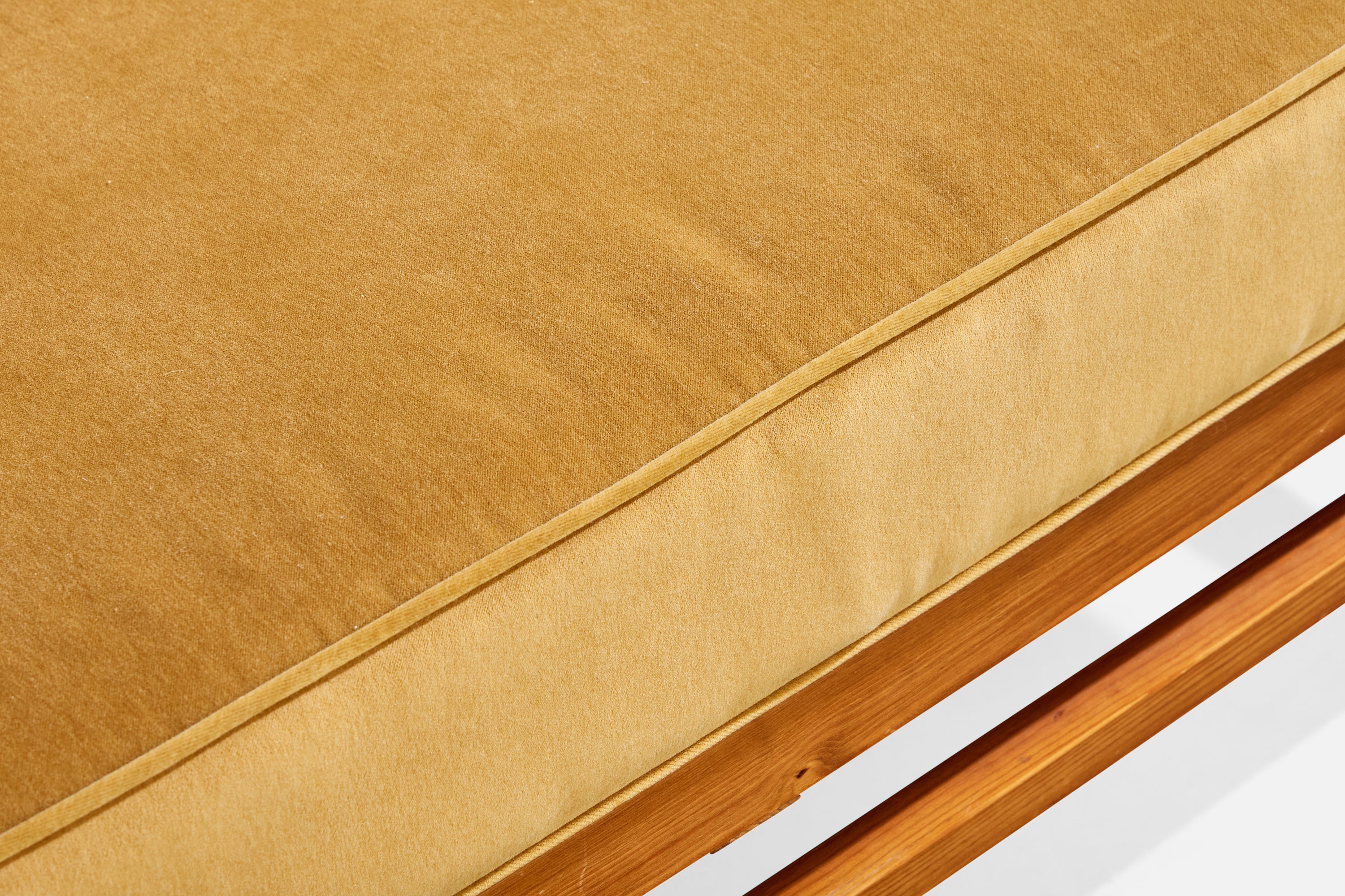 A pine and yellow velvet "Åre" sofa or settee designed and produced by Göperts Möbler, Sweden, c. 1940s.