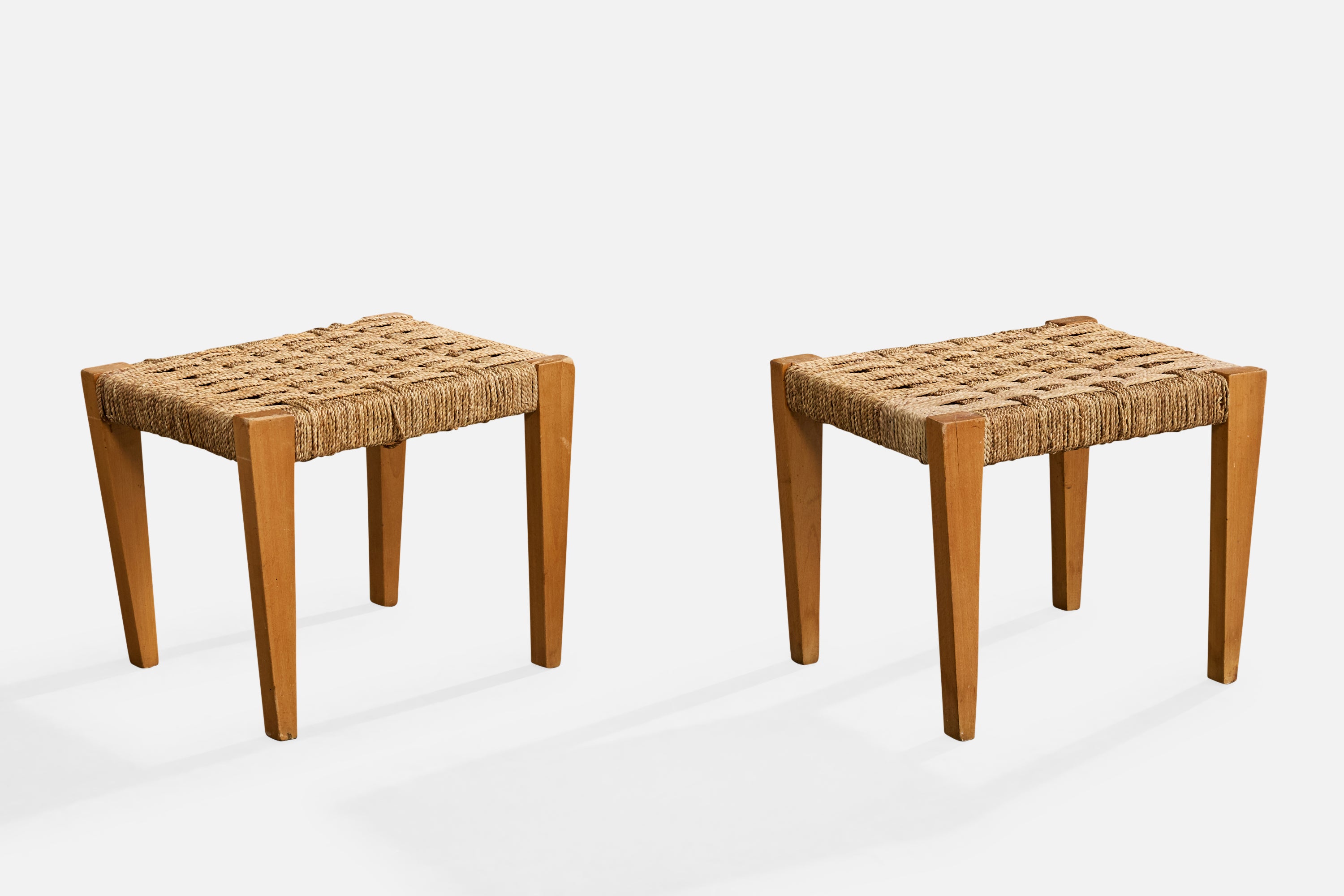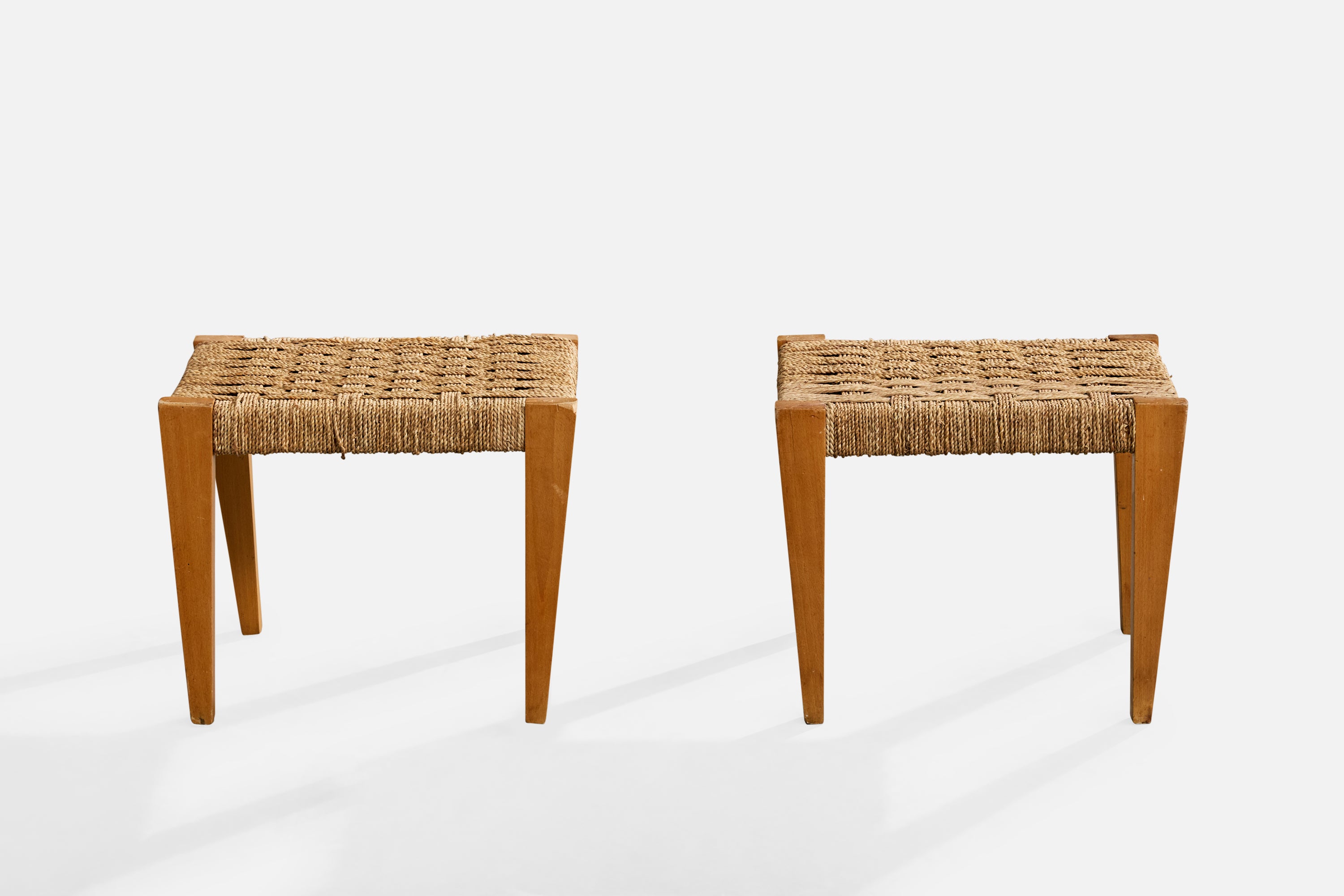 Augusto Romano Attribution, Stools, Wood, Rush, Italy, 1940s