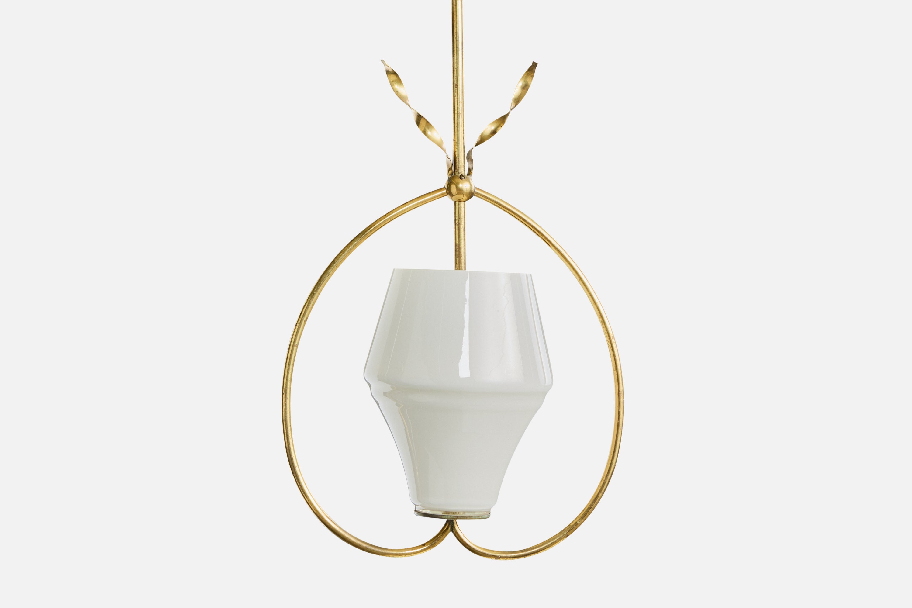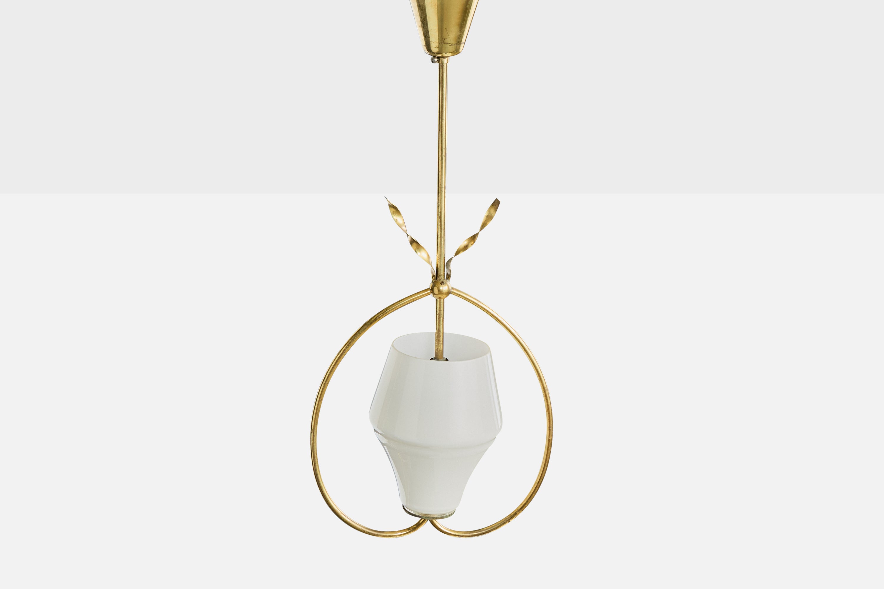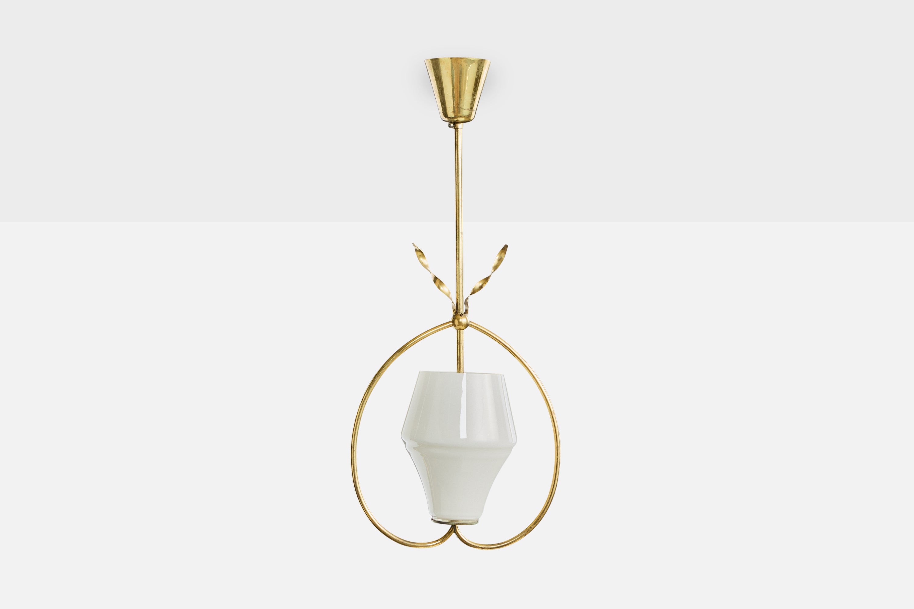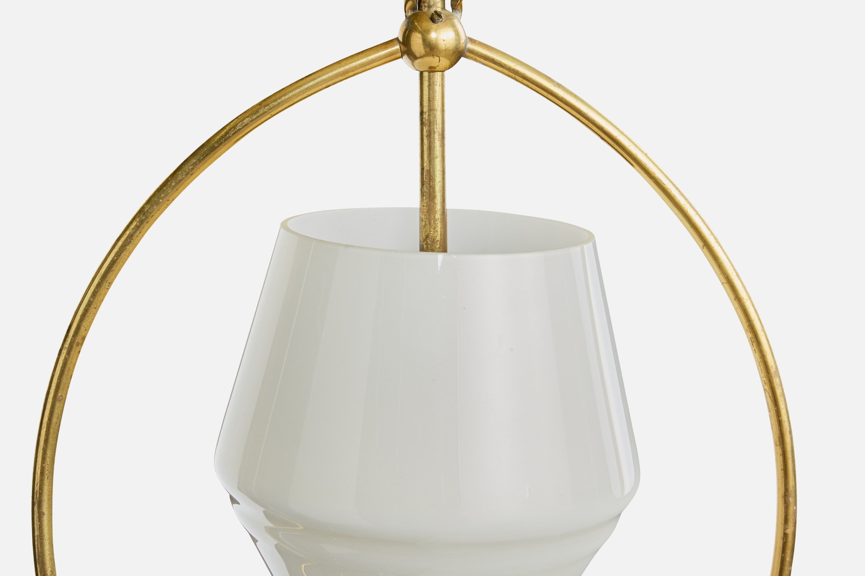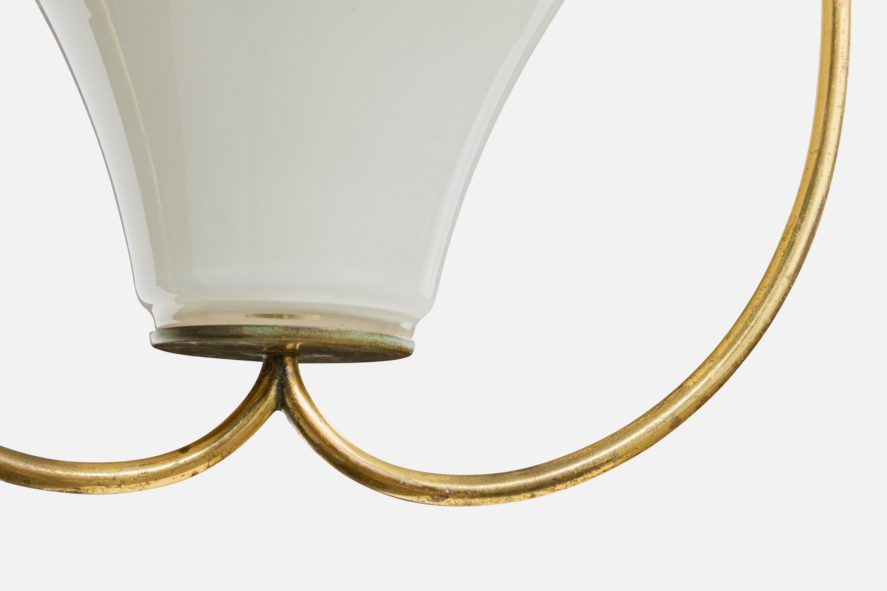 A brass and white opaline glass pendant light produced by Idman, Finland, c. 1950s.