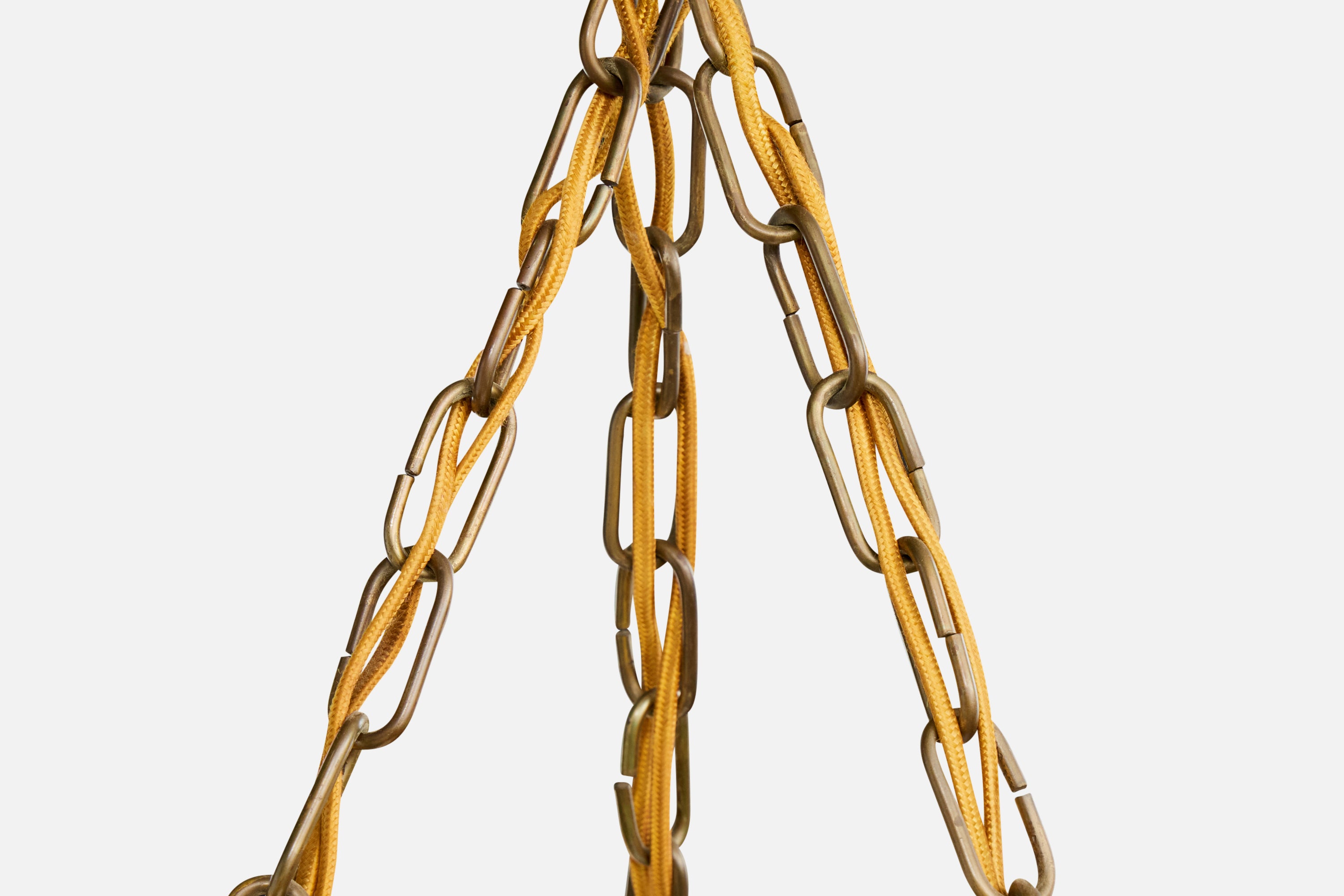 Danish Designer, Chandelier, Brass, Glass, Denmark, 1940s