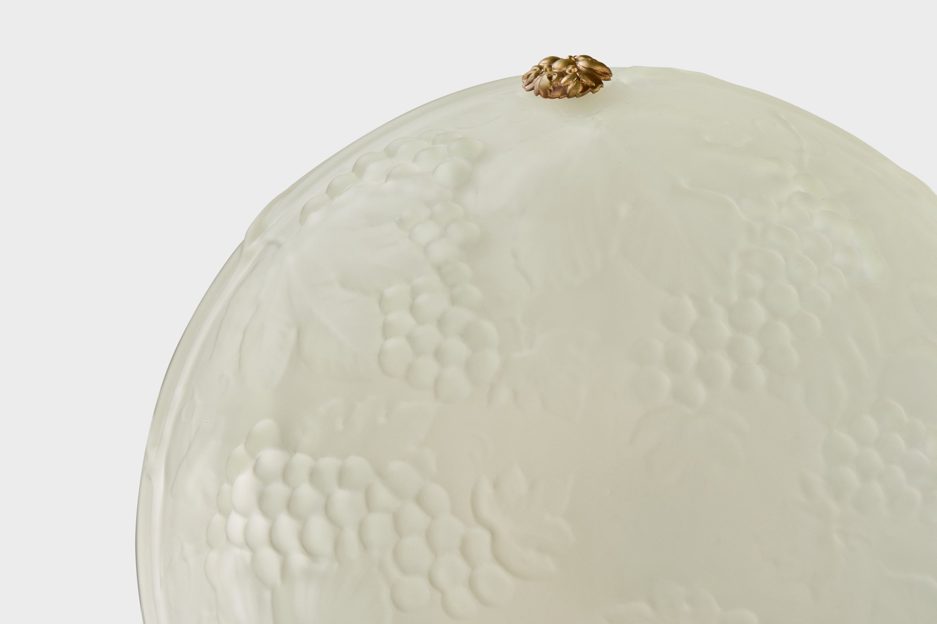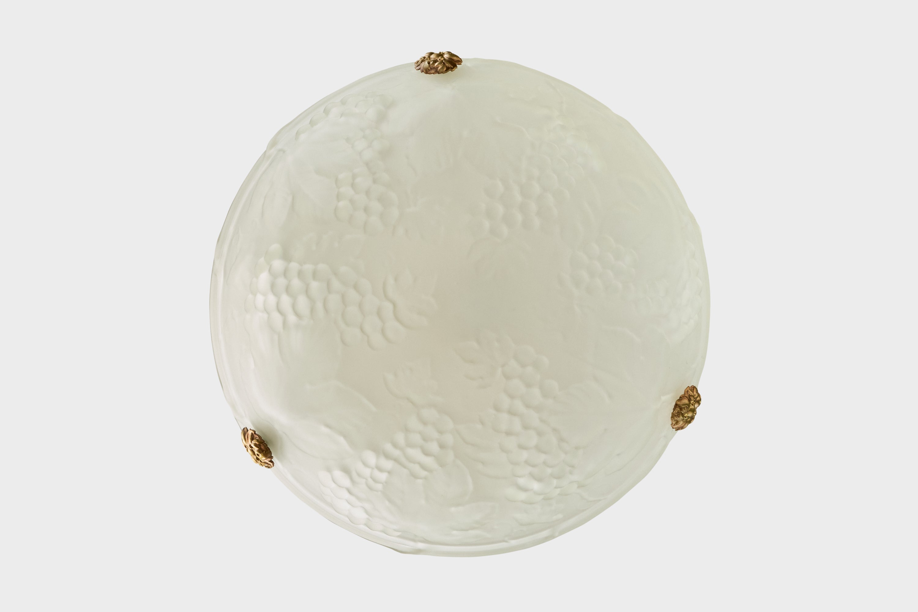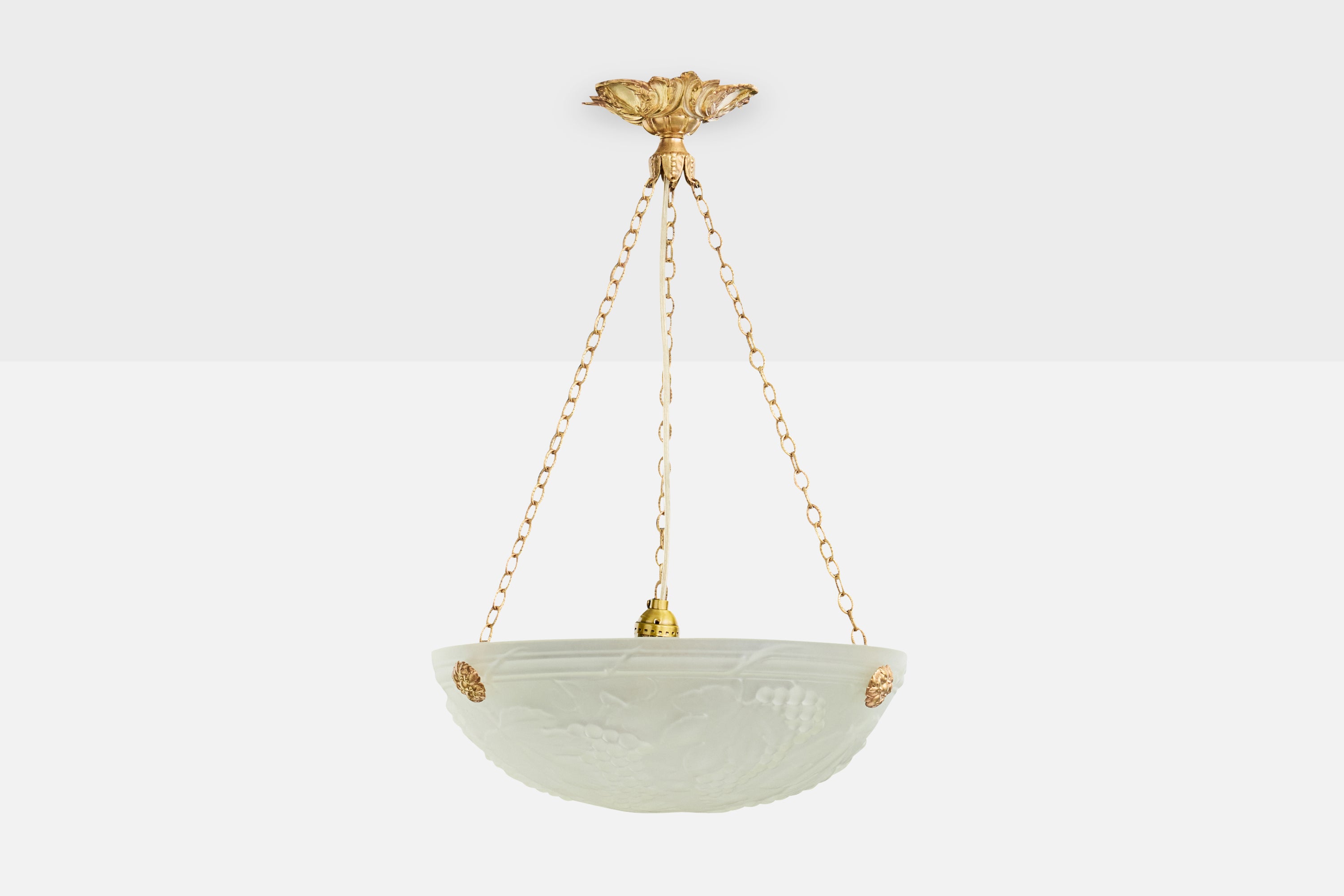 A brass and glass pendant light designed and produced in France, c. 1930s.