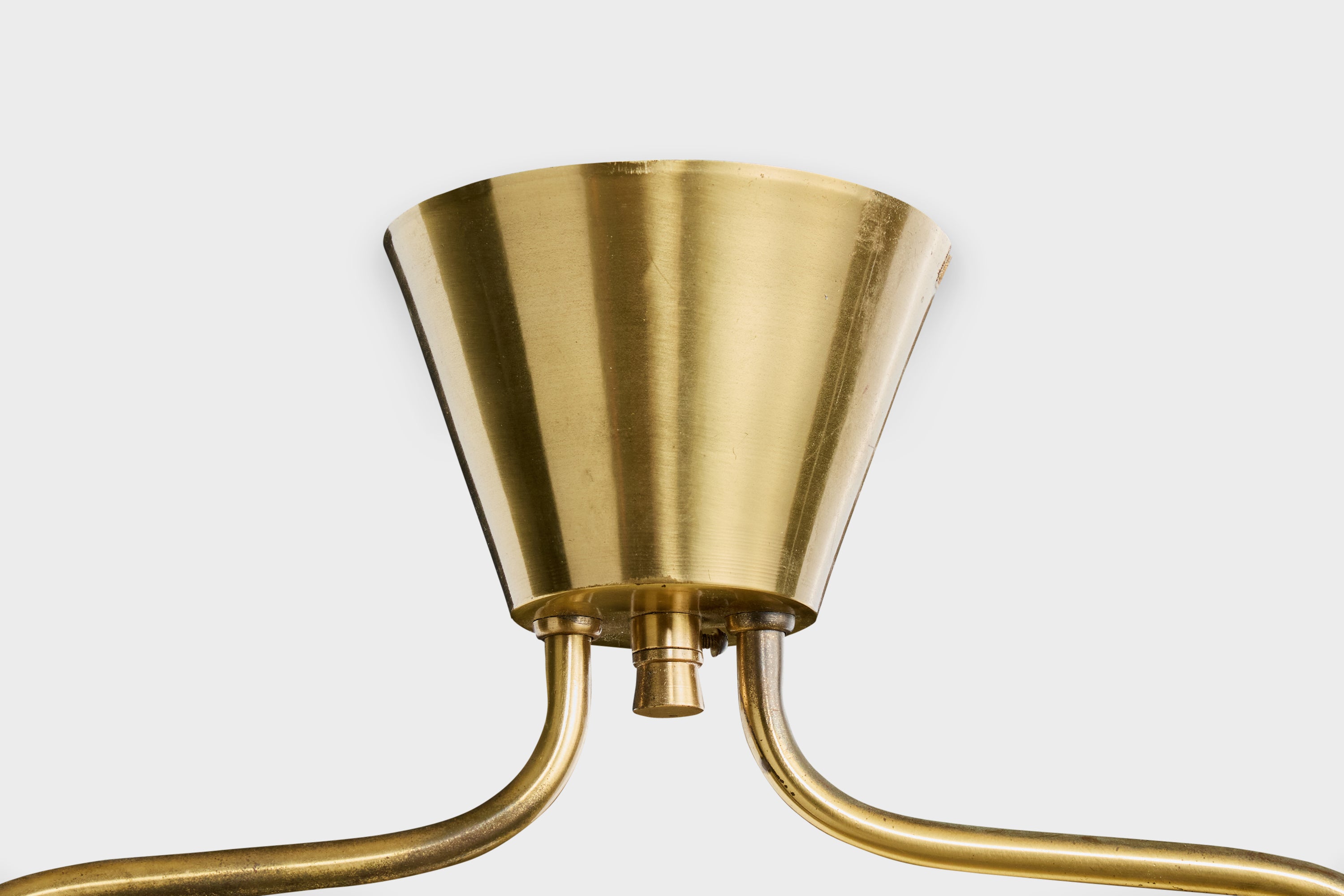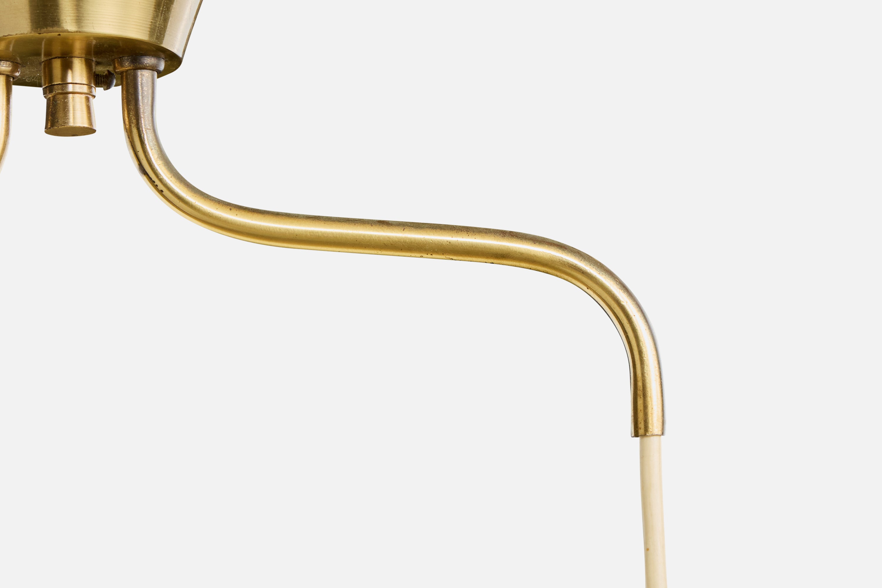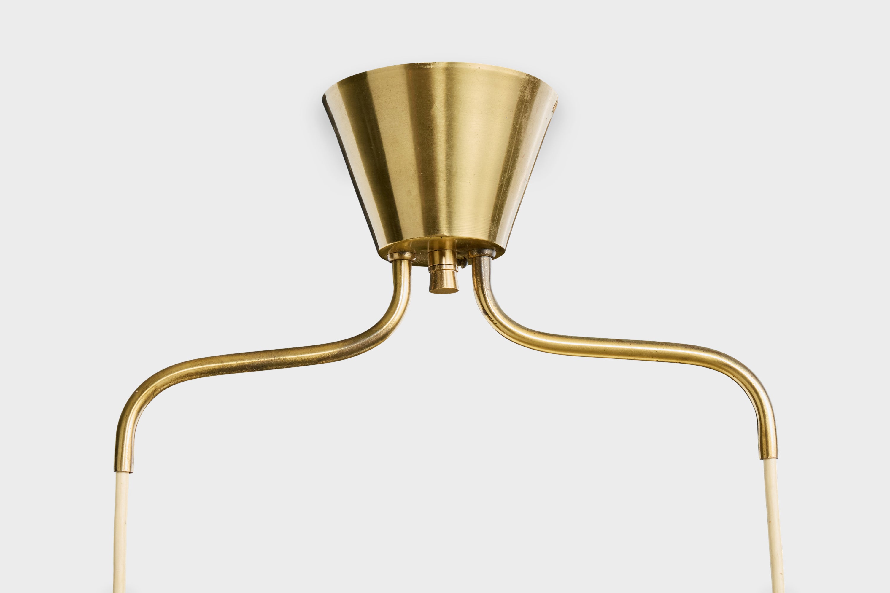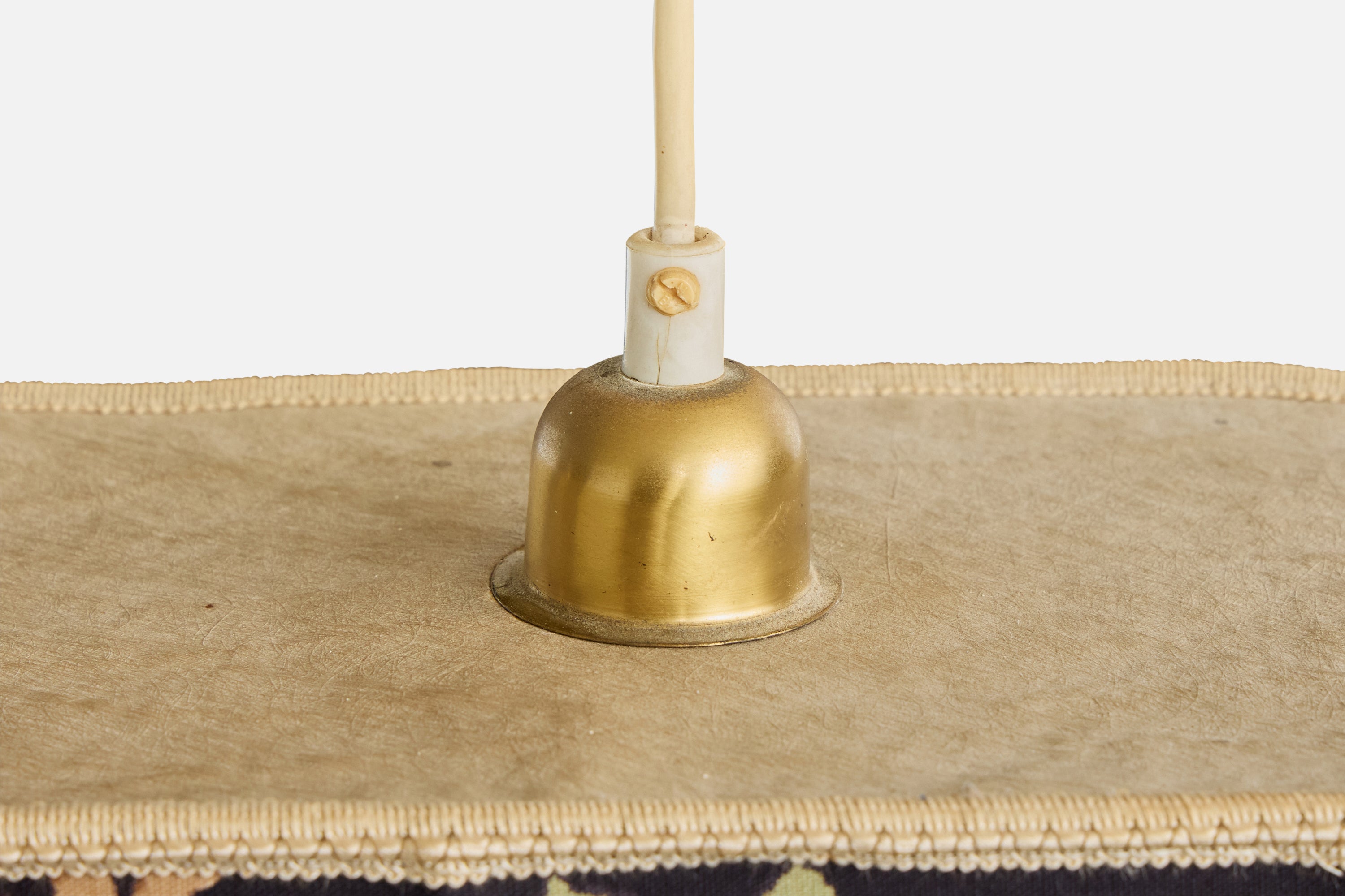 Swedish Designer, Pendant Light, Brass, Fabric, Sweden, 1950s