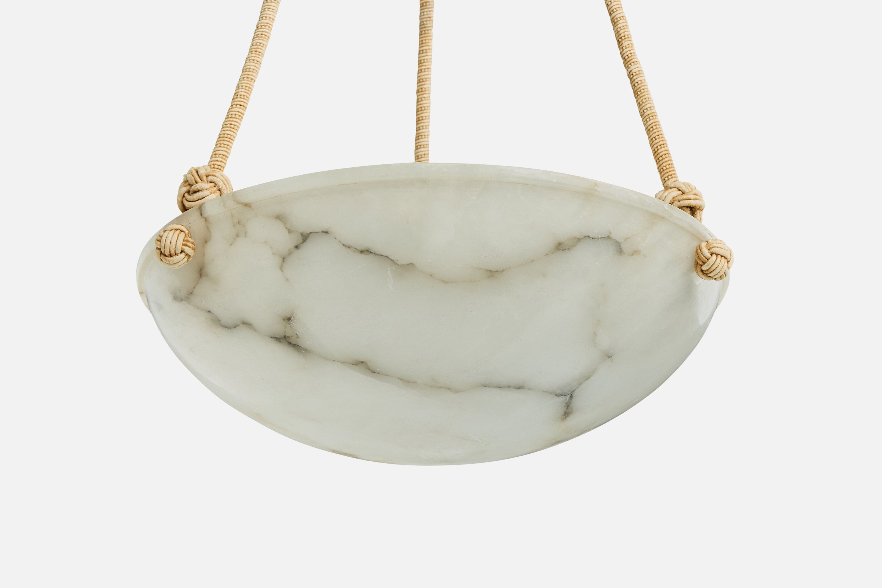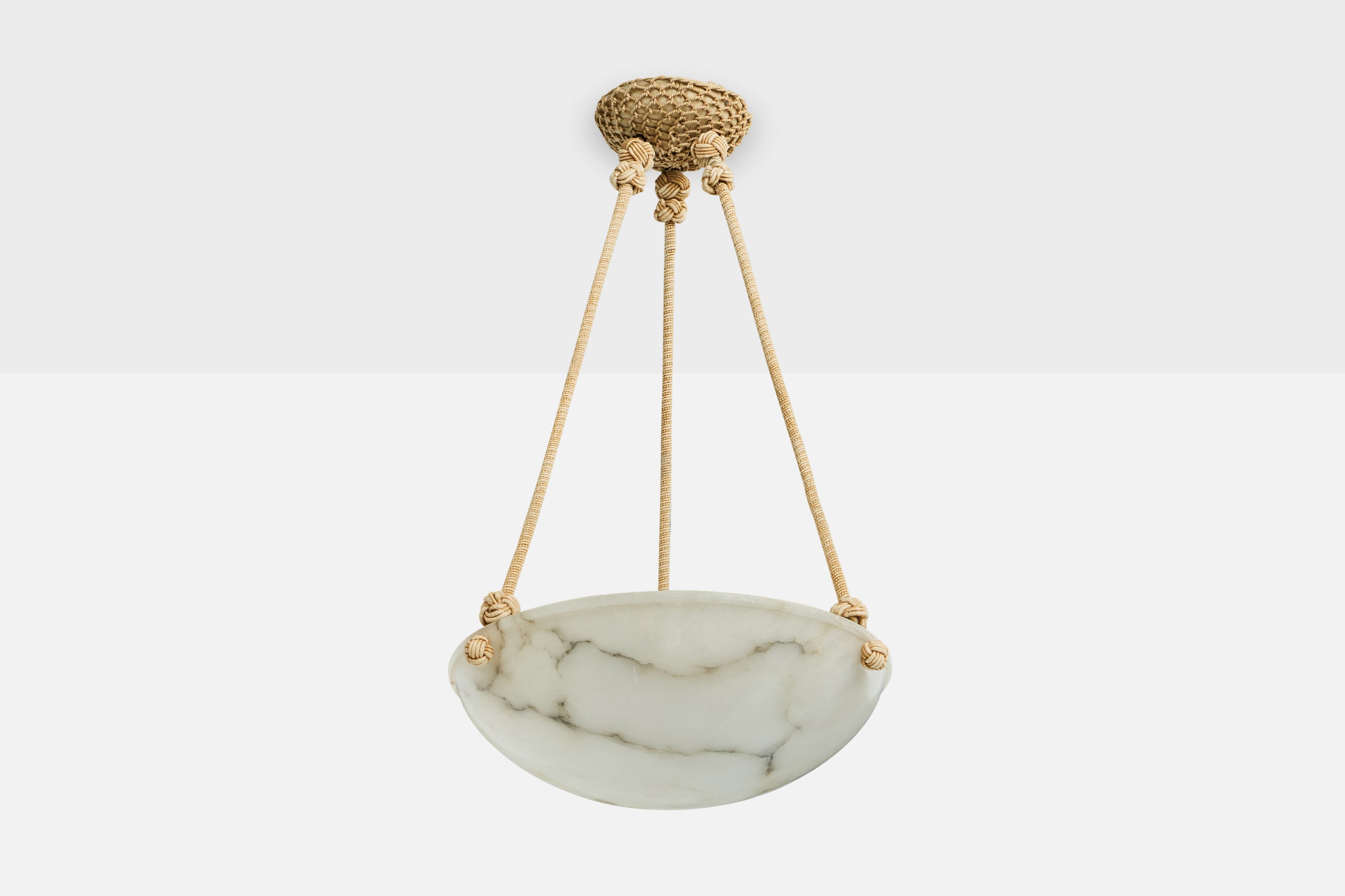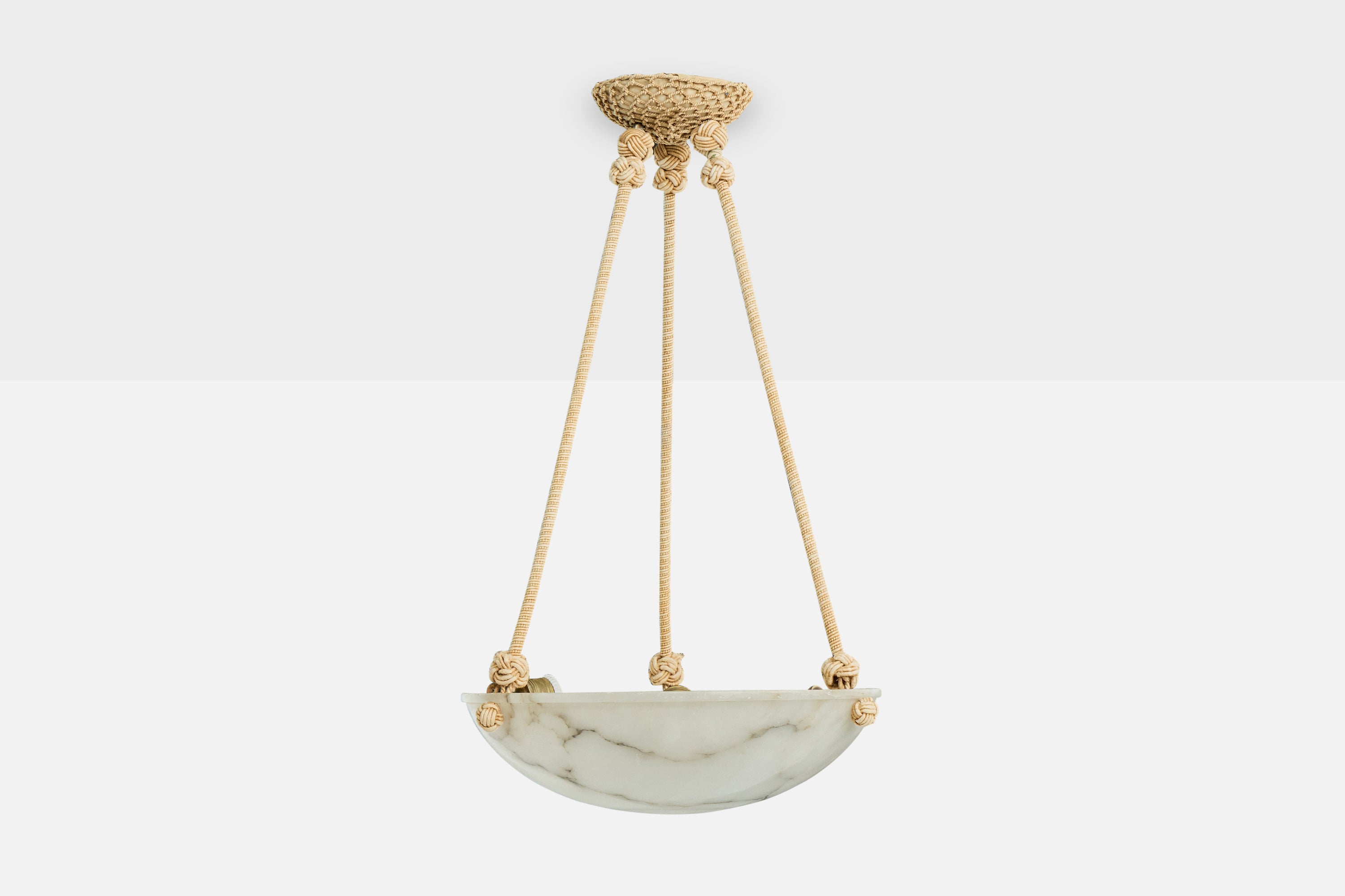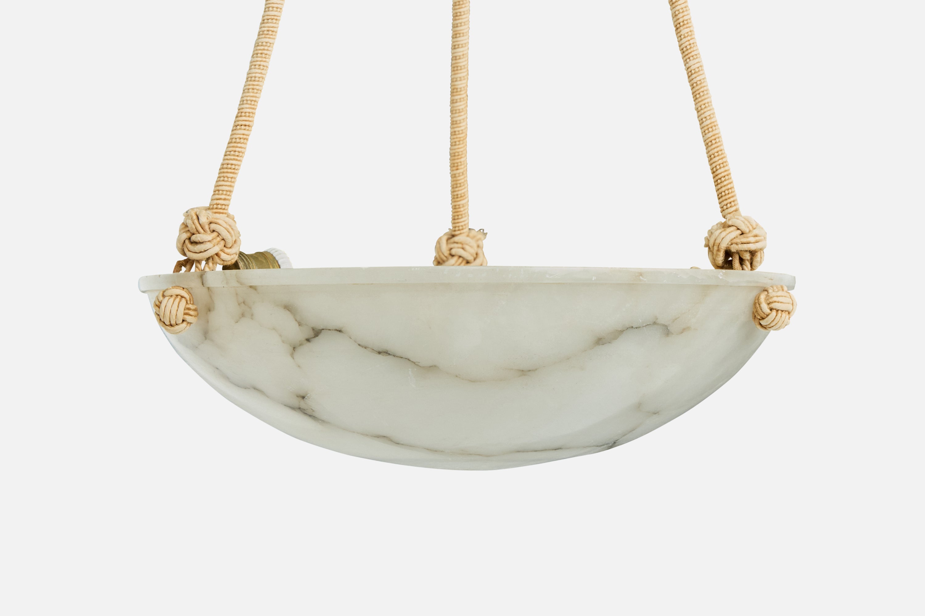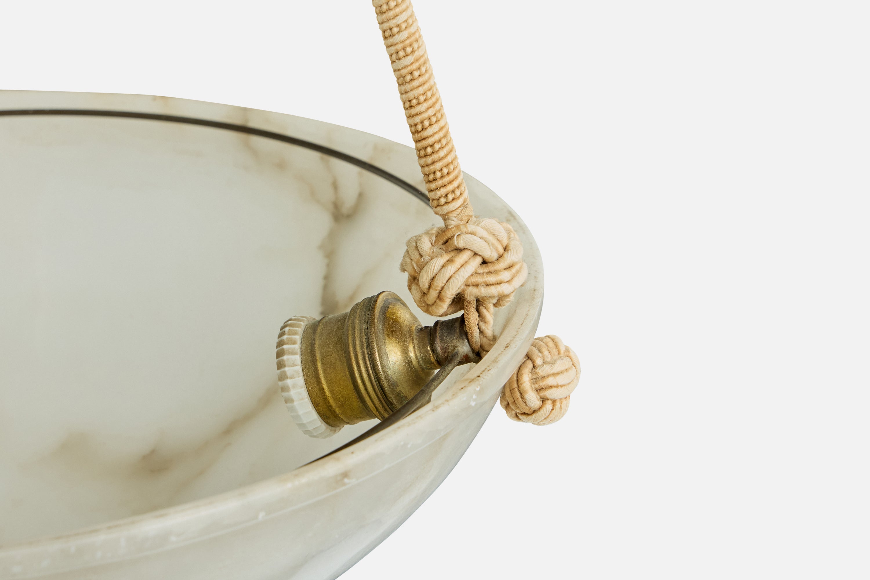 Swedish Designer, Pendant Light, Alabaster, Rope, Sweden, 1930s