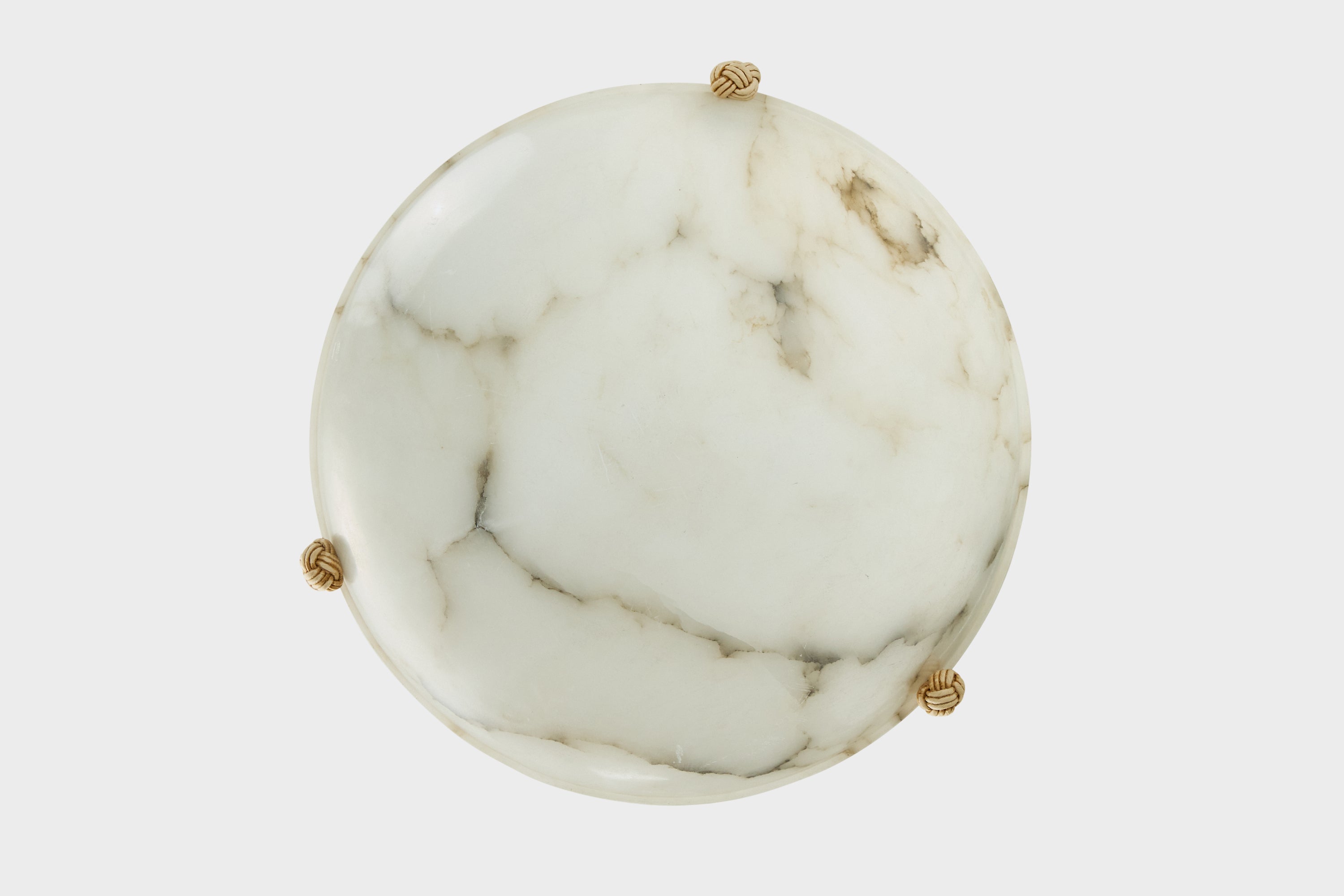 An alabaster, beige rope pendant light likely designed and produced in Sweden, c. 1930s.