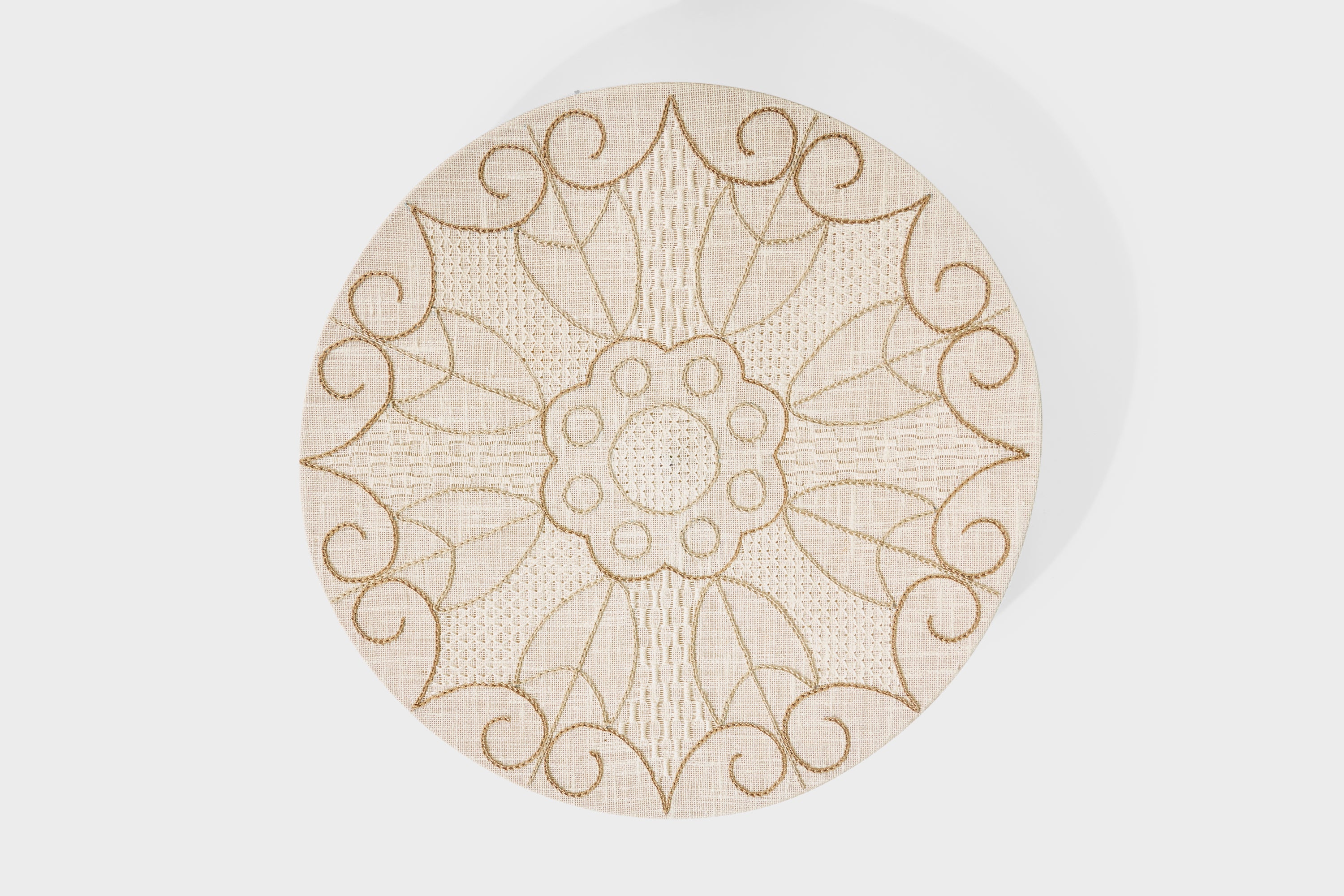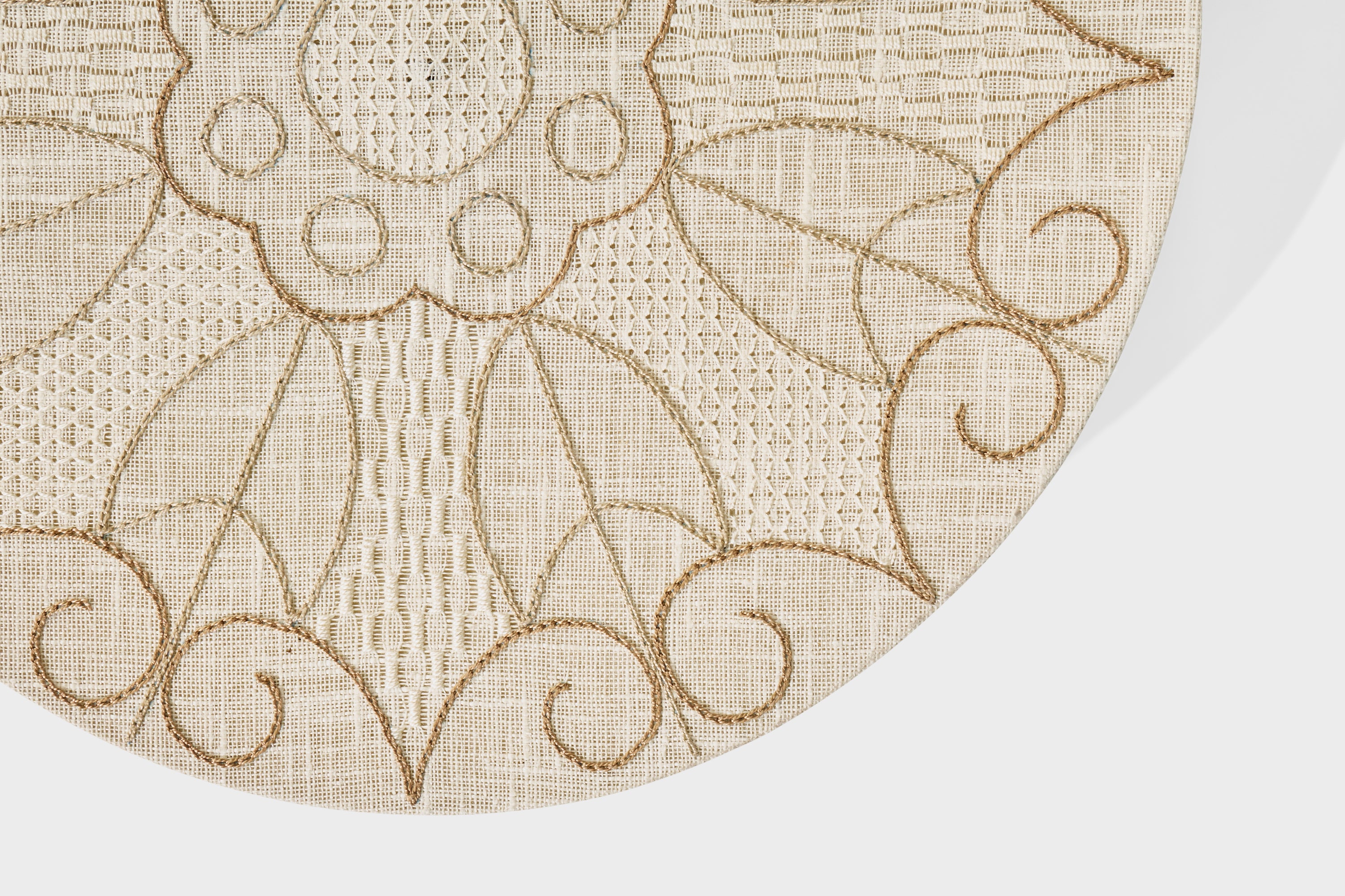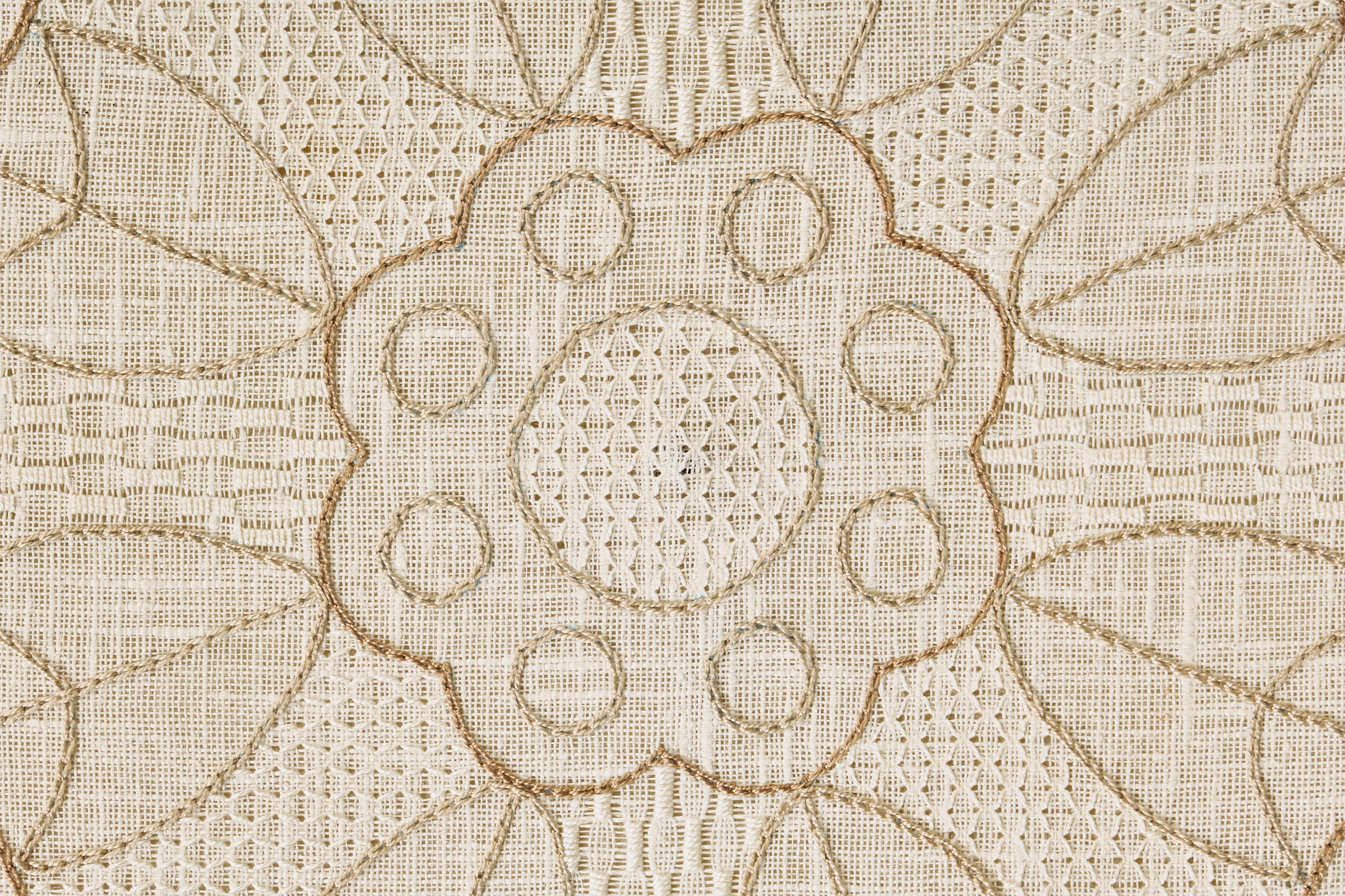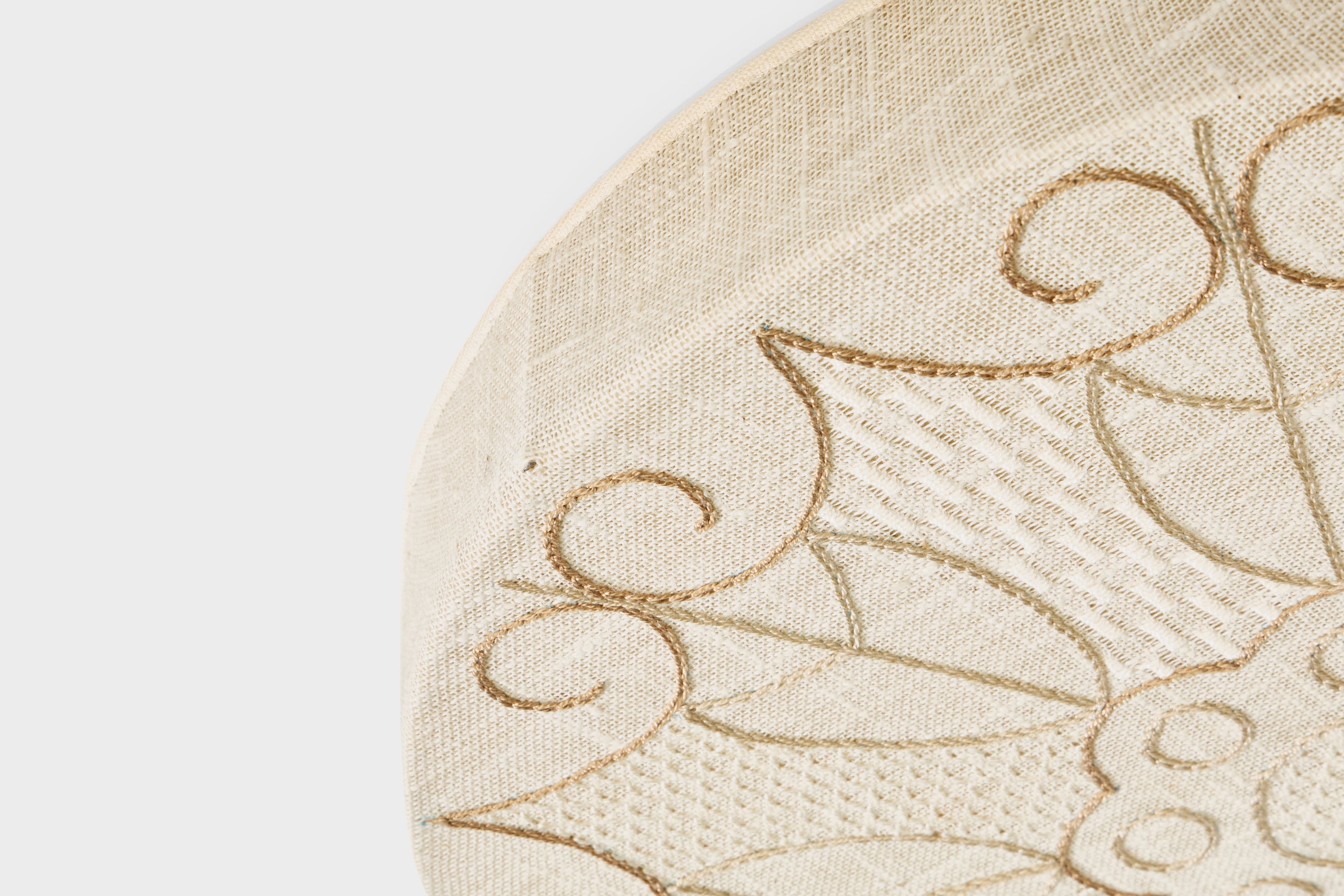 An off-white embroidery fabric flush mount designed and produced in Sweden, c. 1960s.