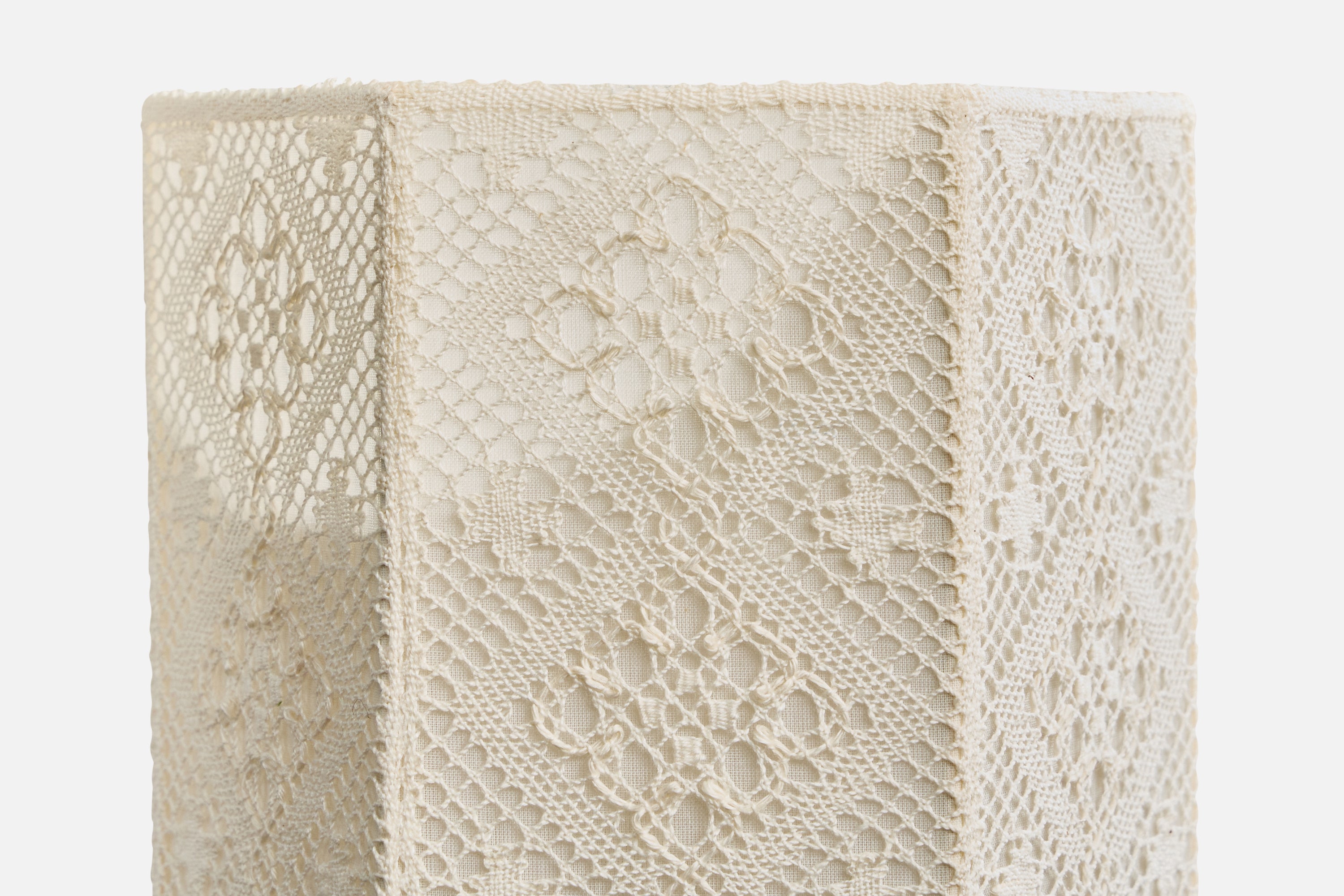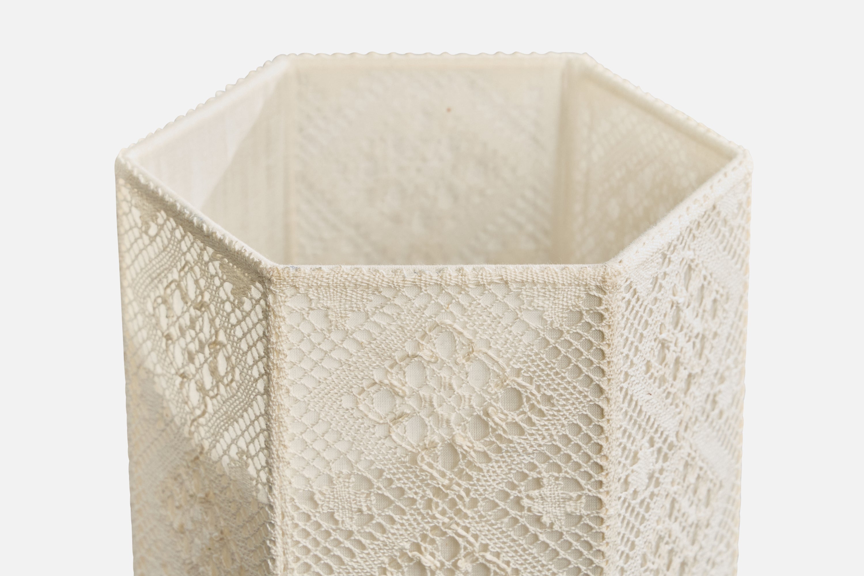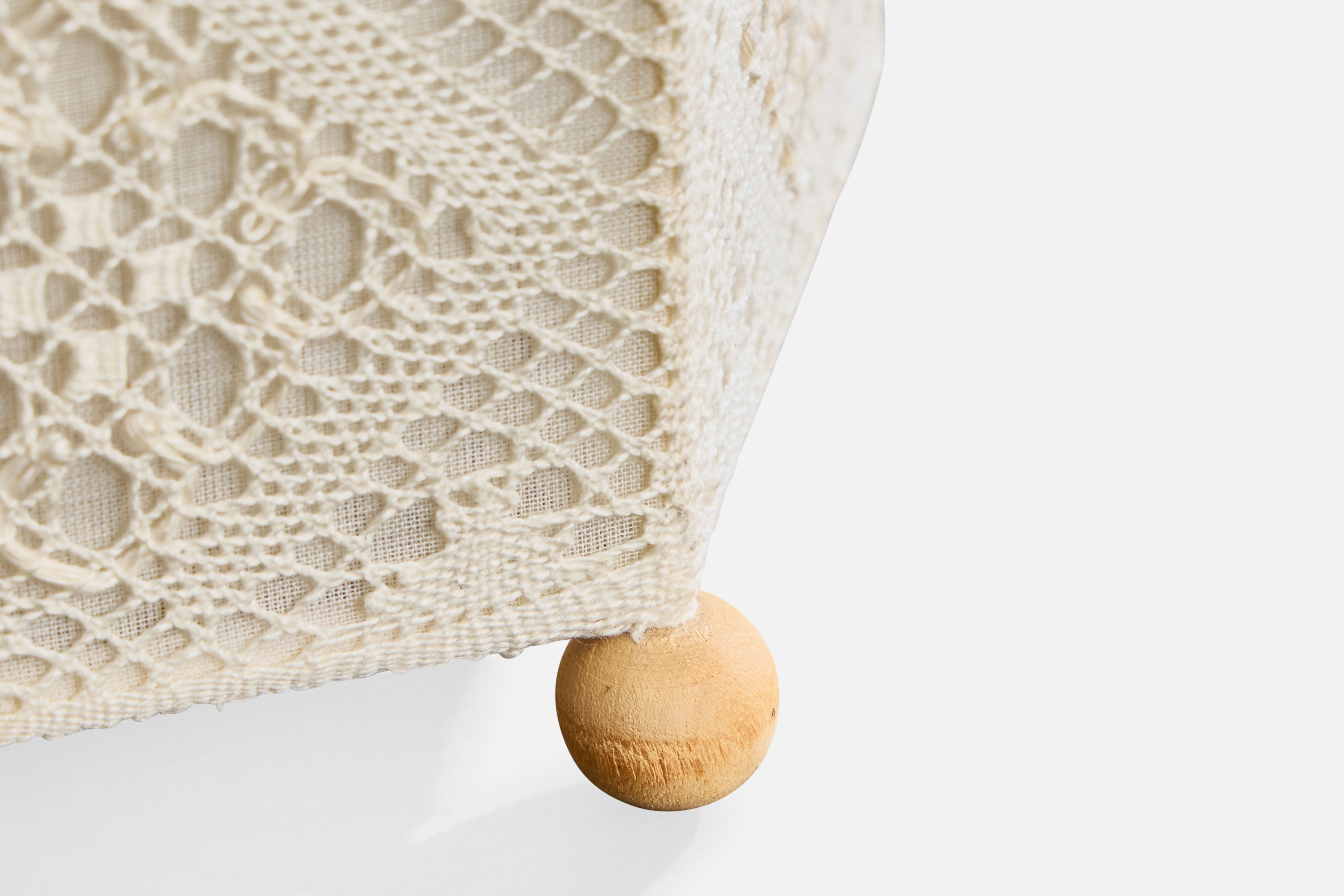 A wood and embroidery fabric table lamp designed and produced in Sweden, c. 1960s.