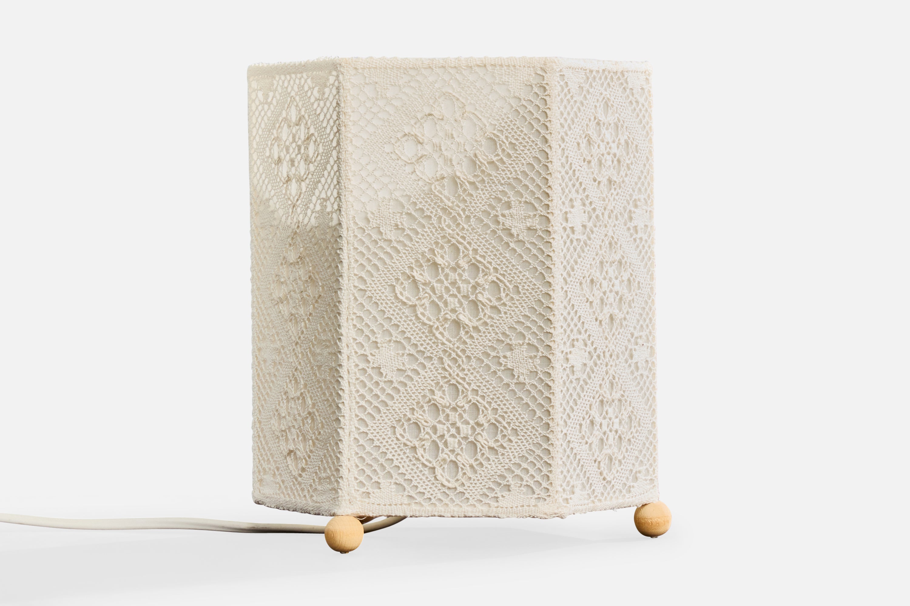 Swedish Designer, Table Lamp, Fabric, Wood, Sweden, 1960s