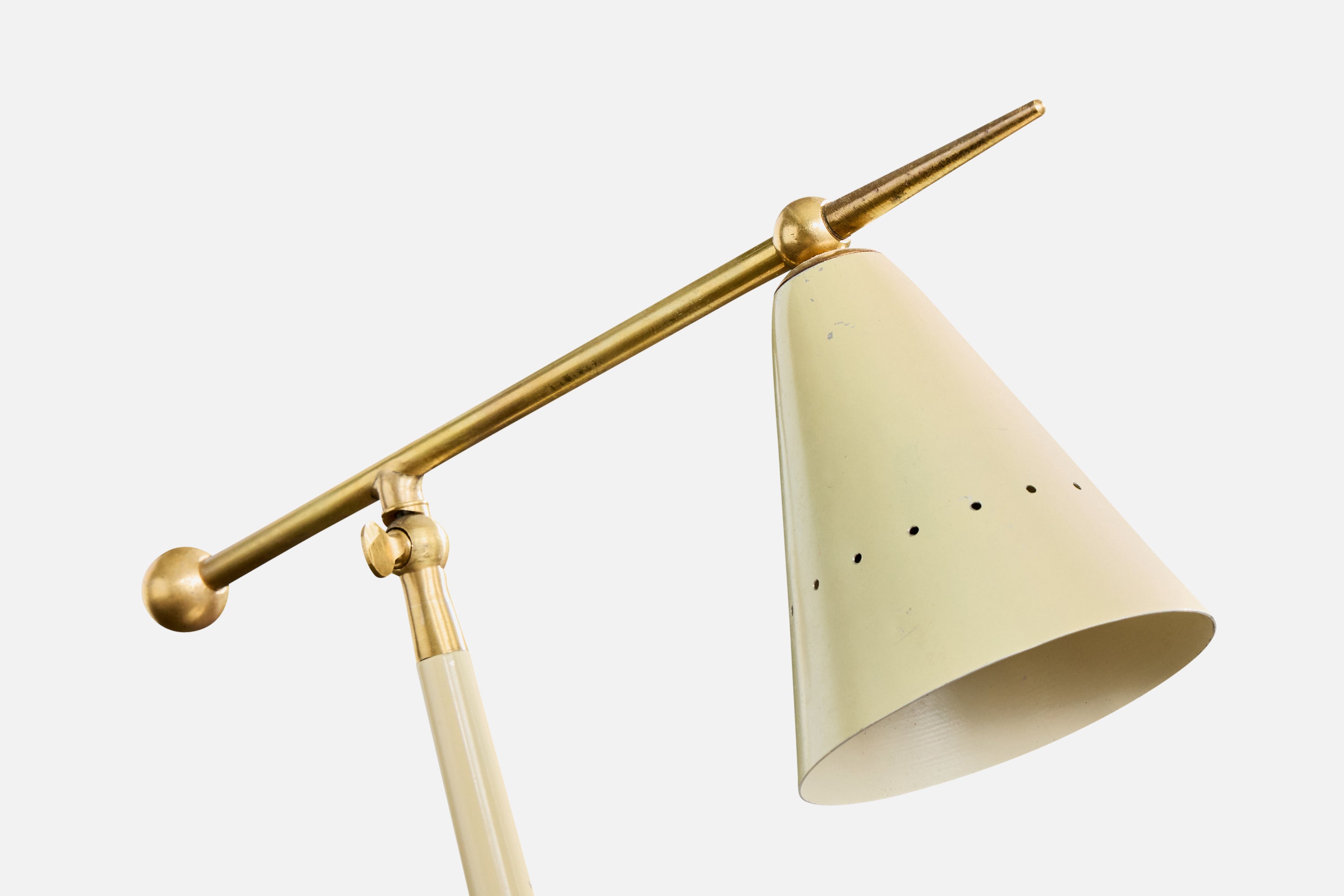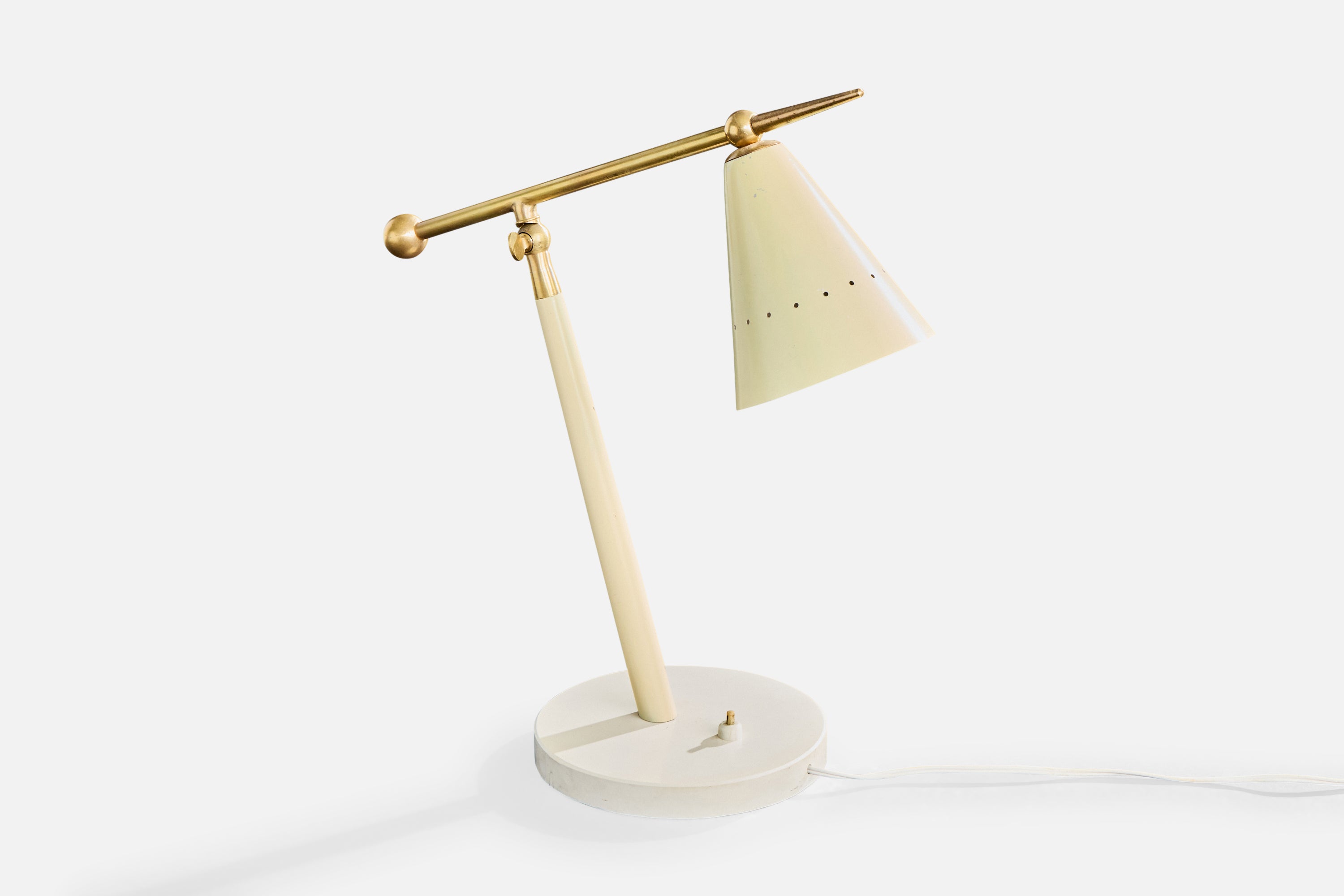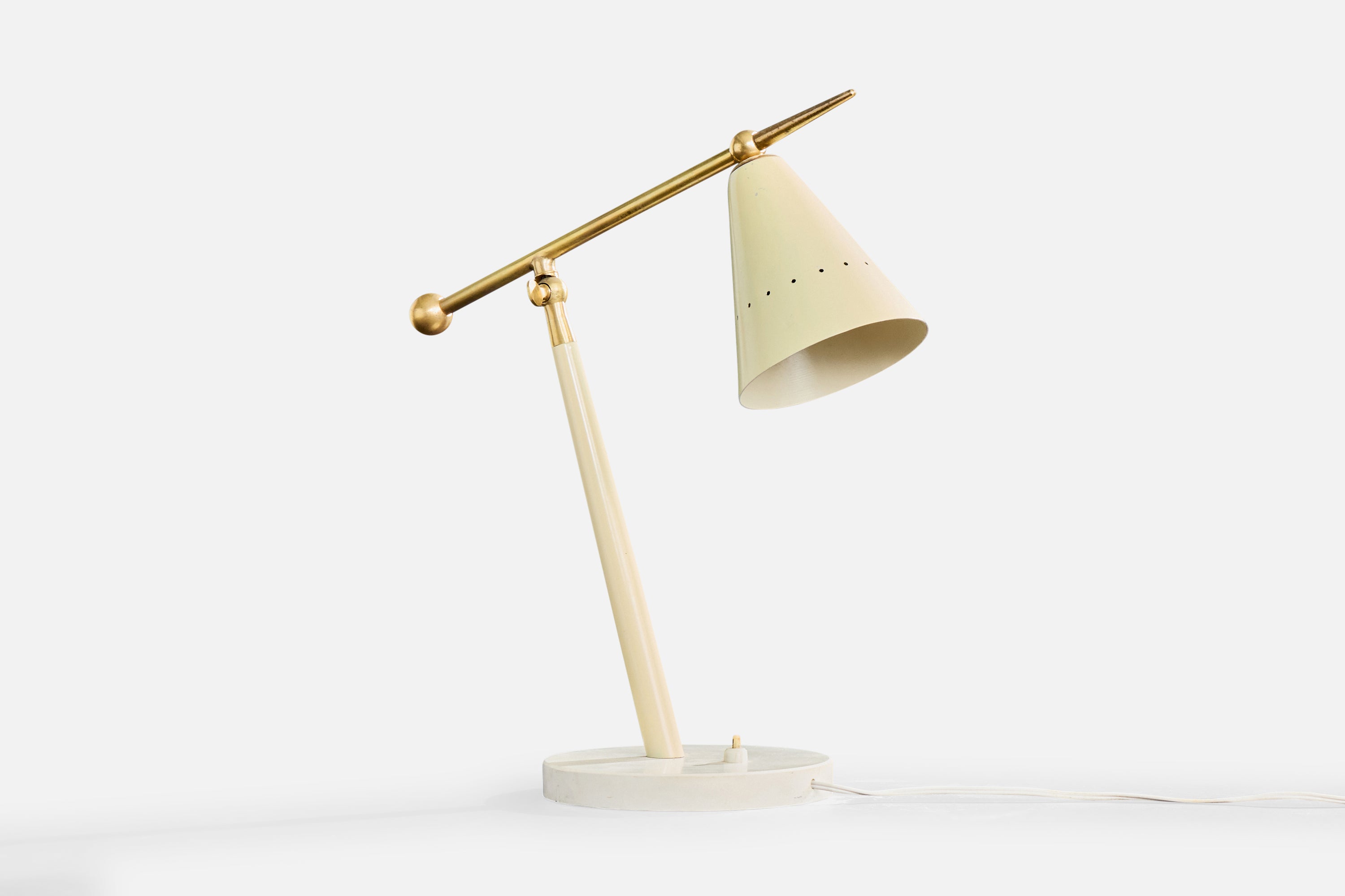 A beige-lacquered metal, brass and marble table lamp designed and produced in Italy, c. 1960s.