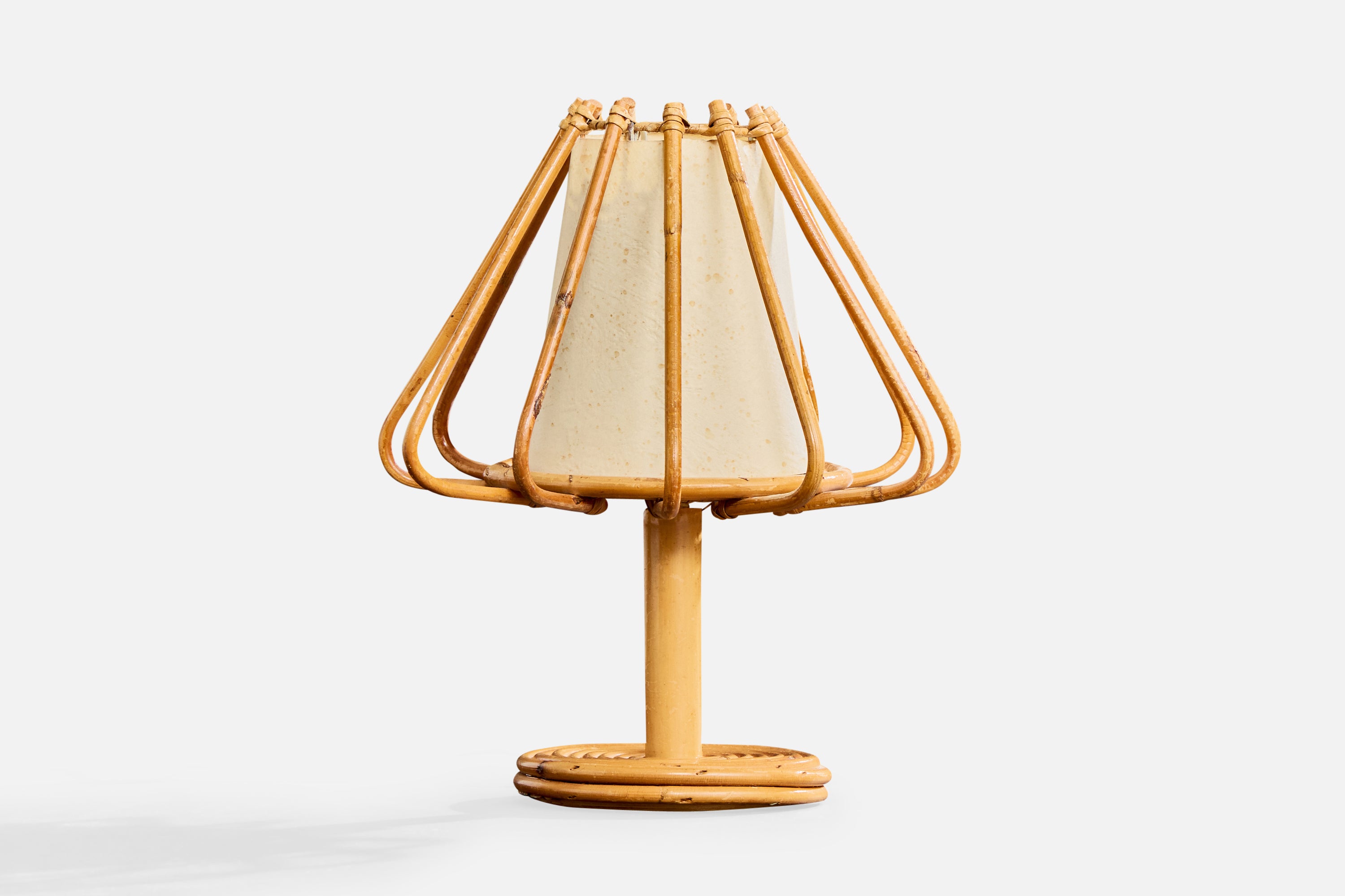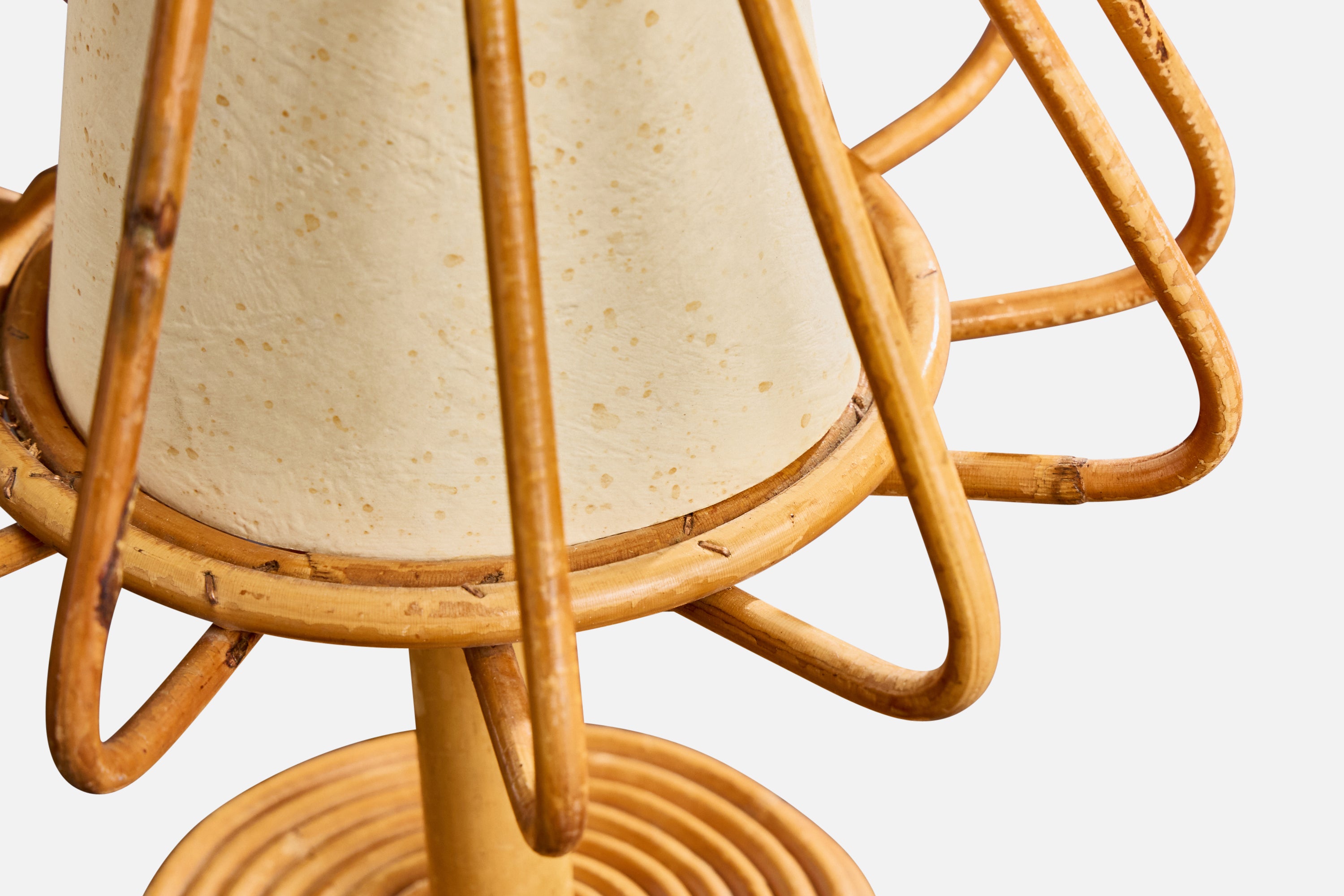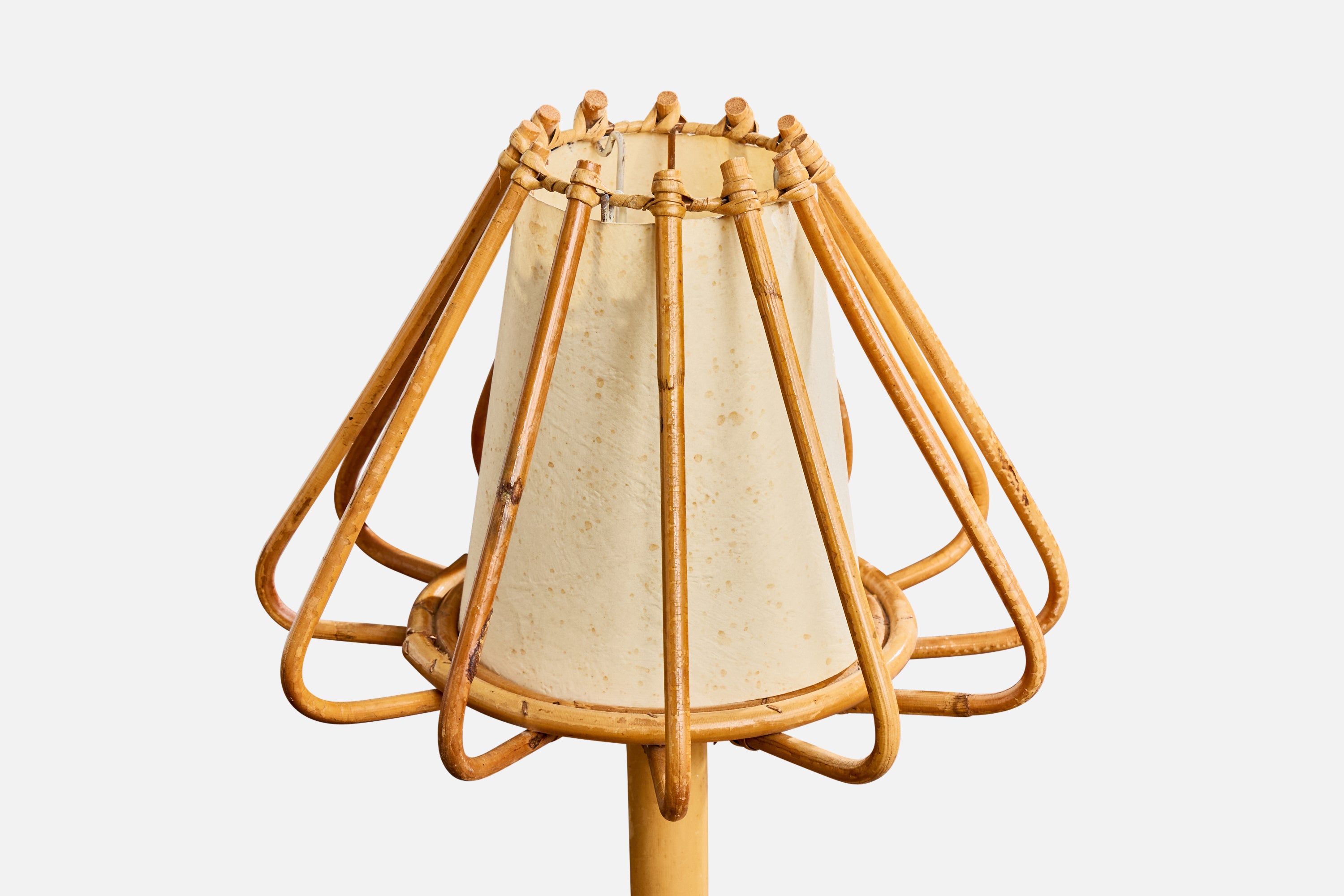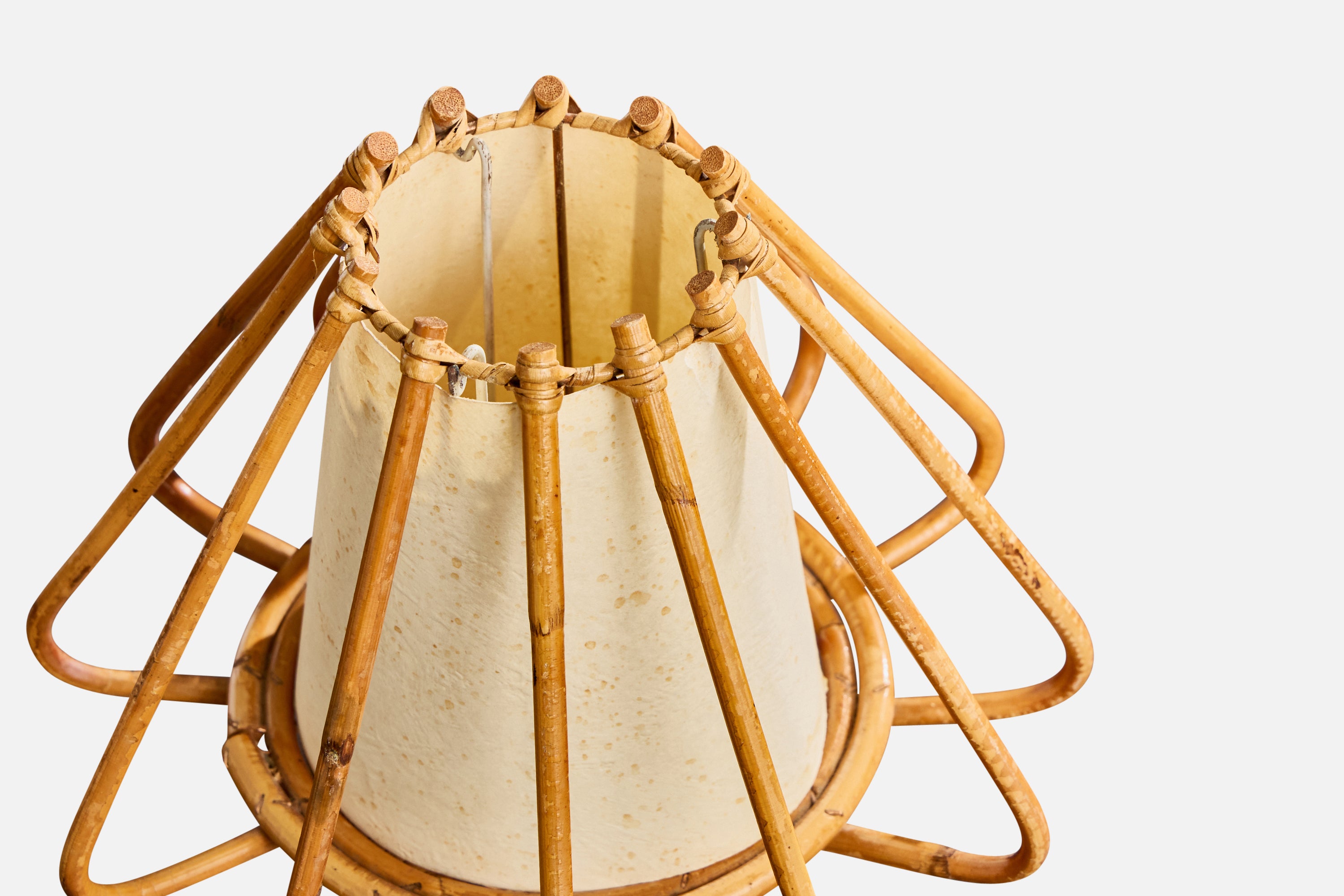 French Designer, Table Lamp, Bamboo, Rattan, Paper, France, 1970s