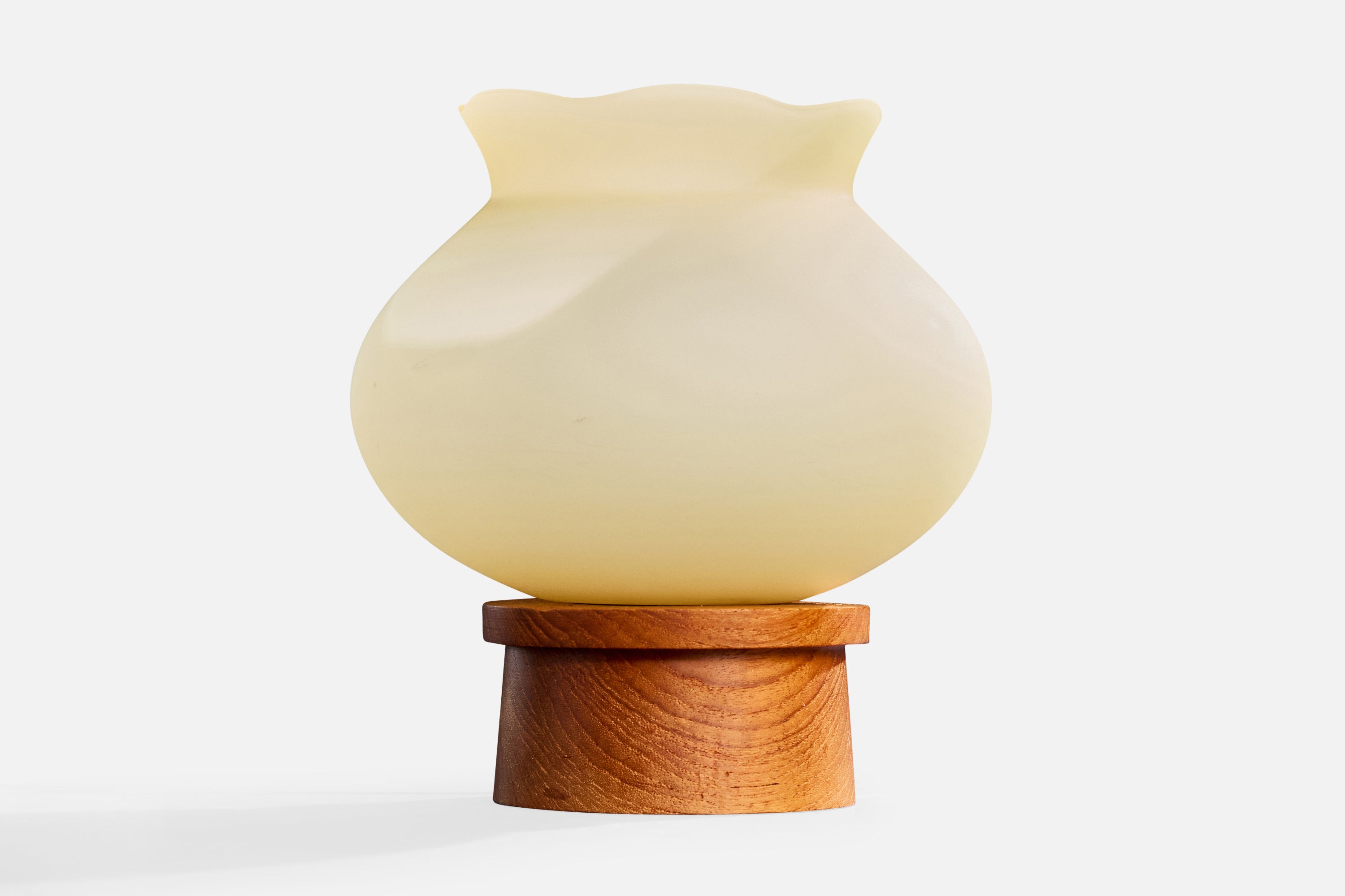 Swedish Designer, Table Lamp, Glass, Teak, Sweden, 1950s