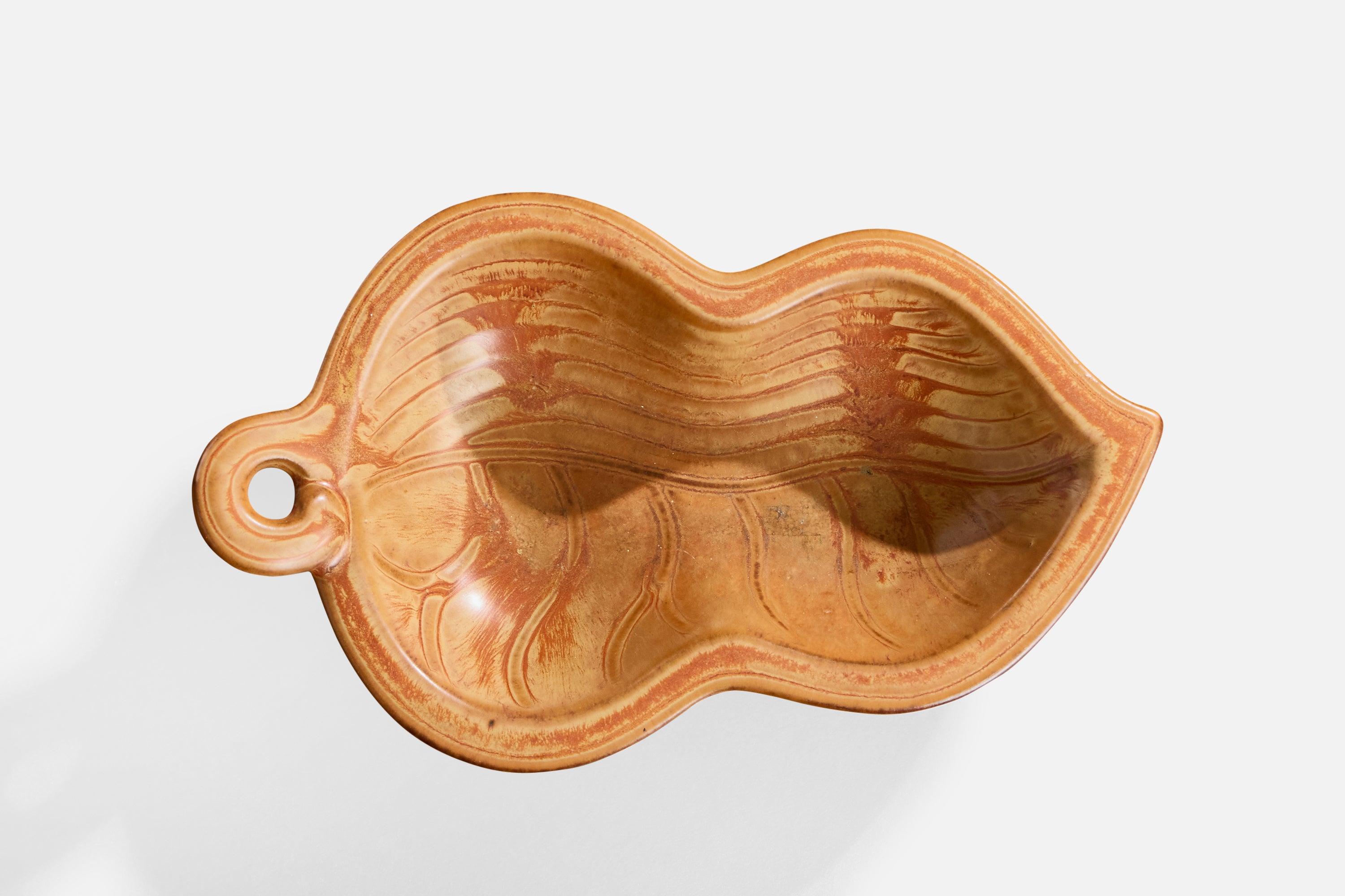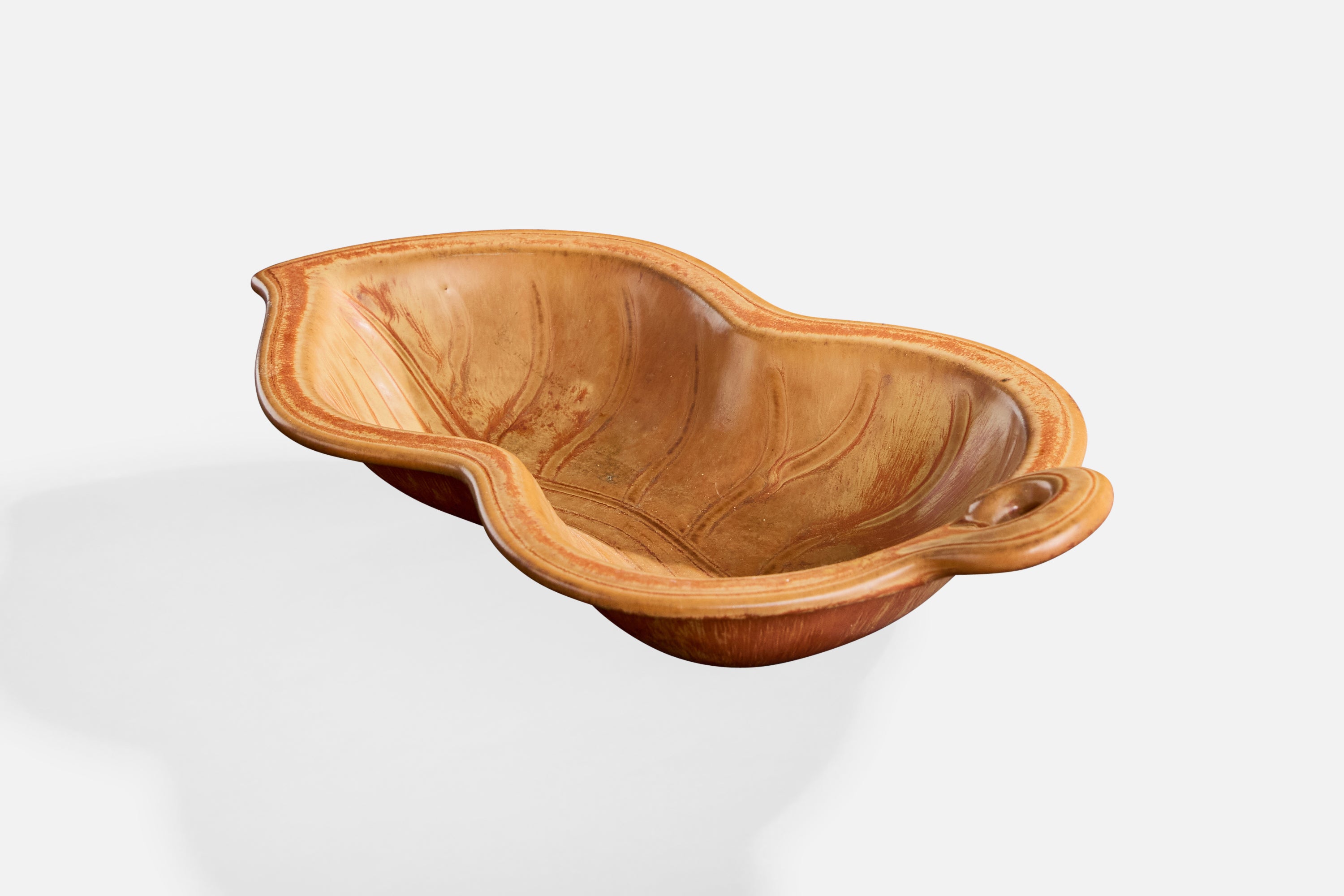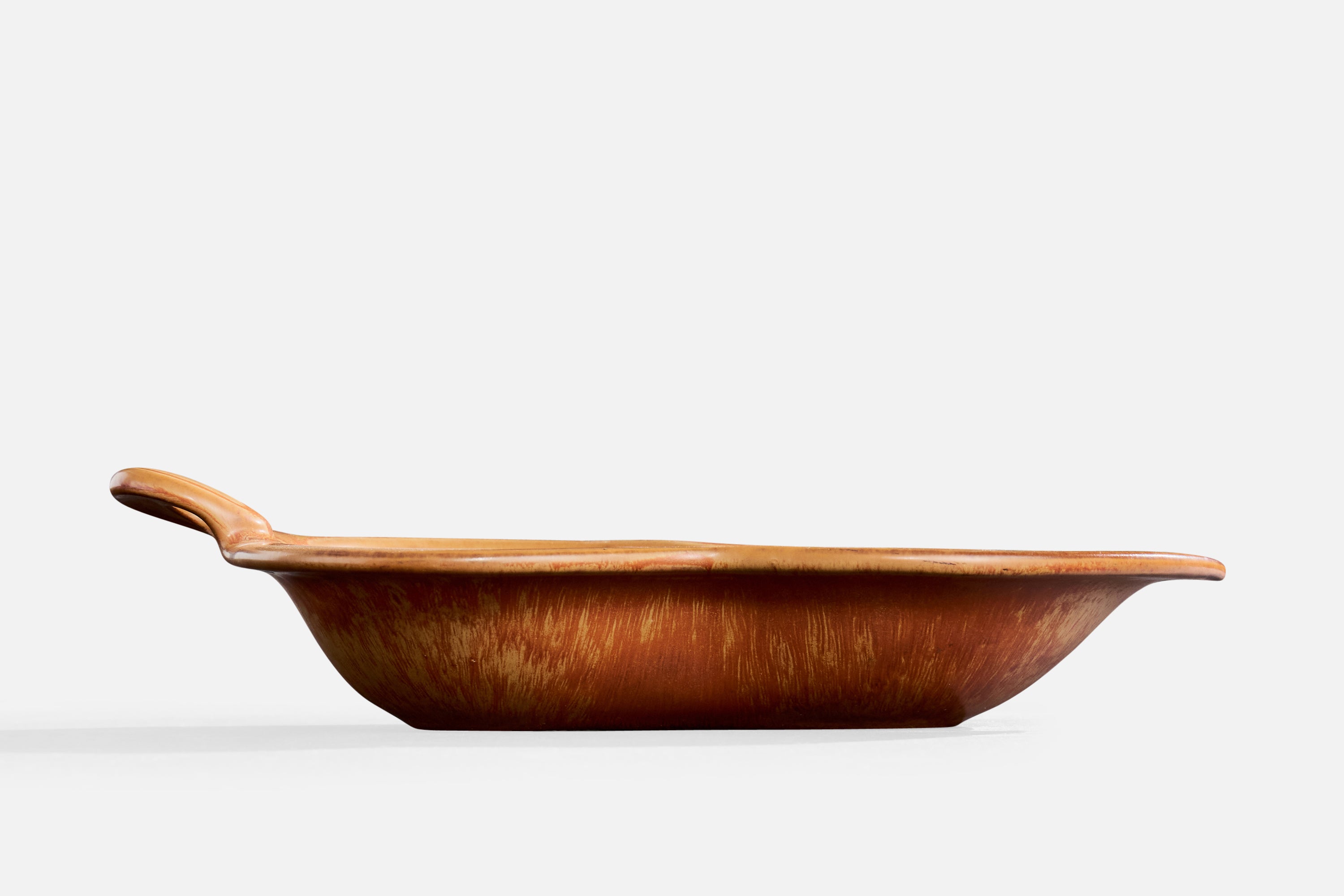 A brown-glazed stoneware bowl or dish designed by Gunnar Nylund and produced by Rörstrand, Sweden, c. 1940s.
