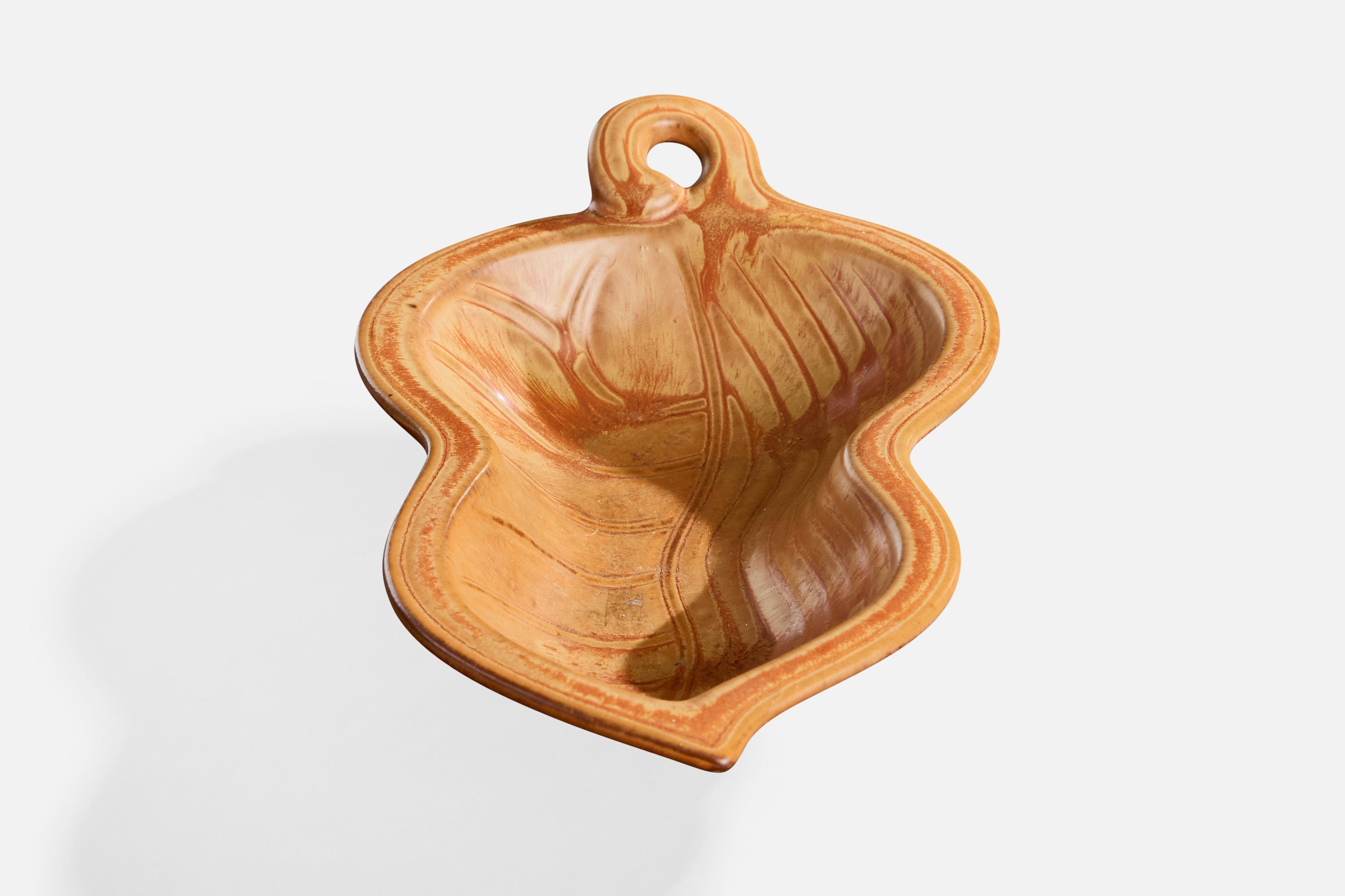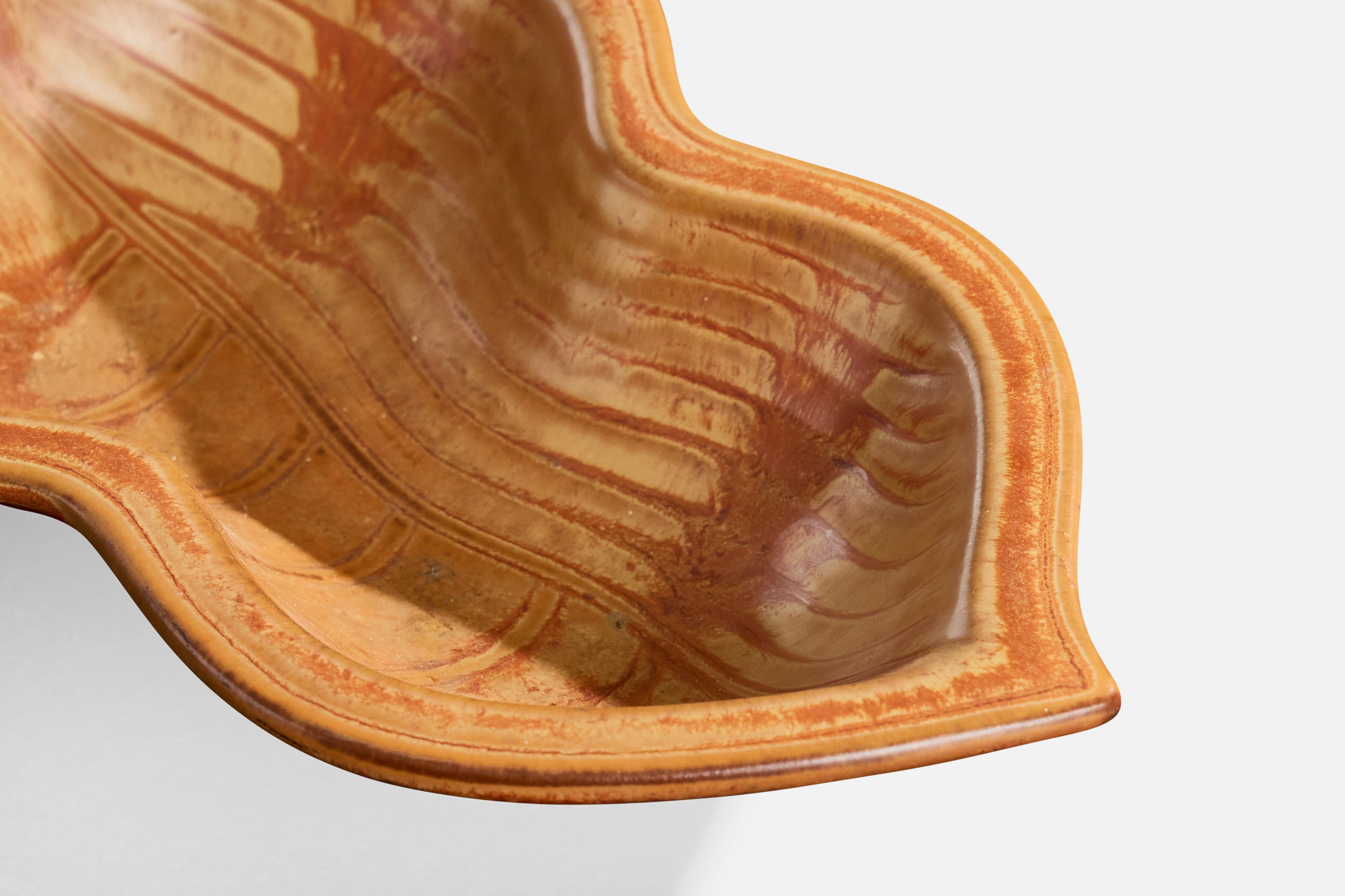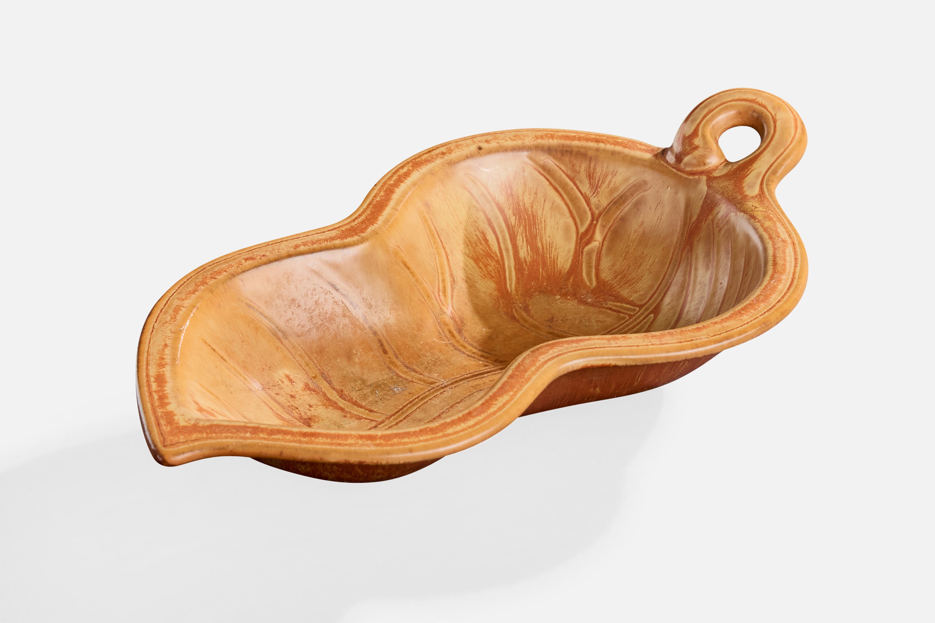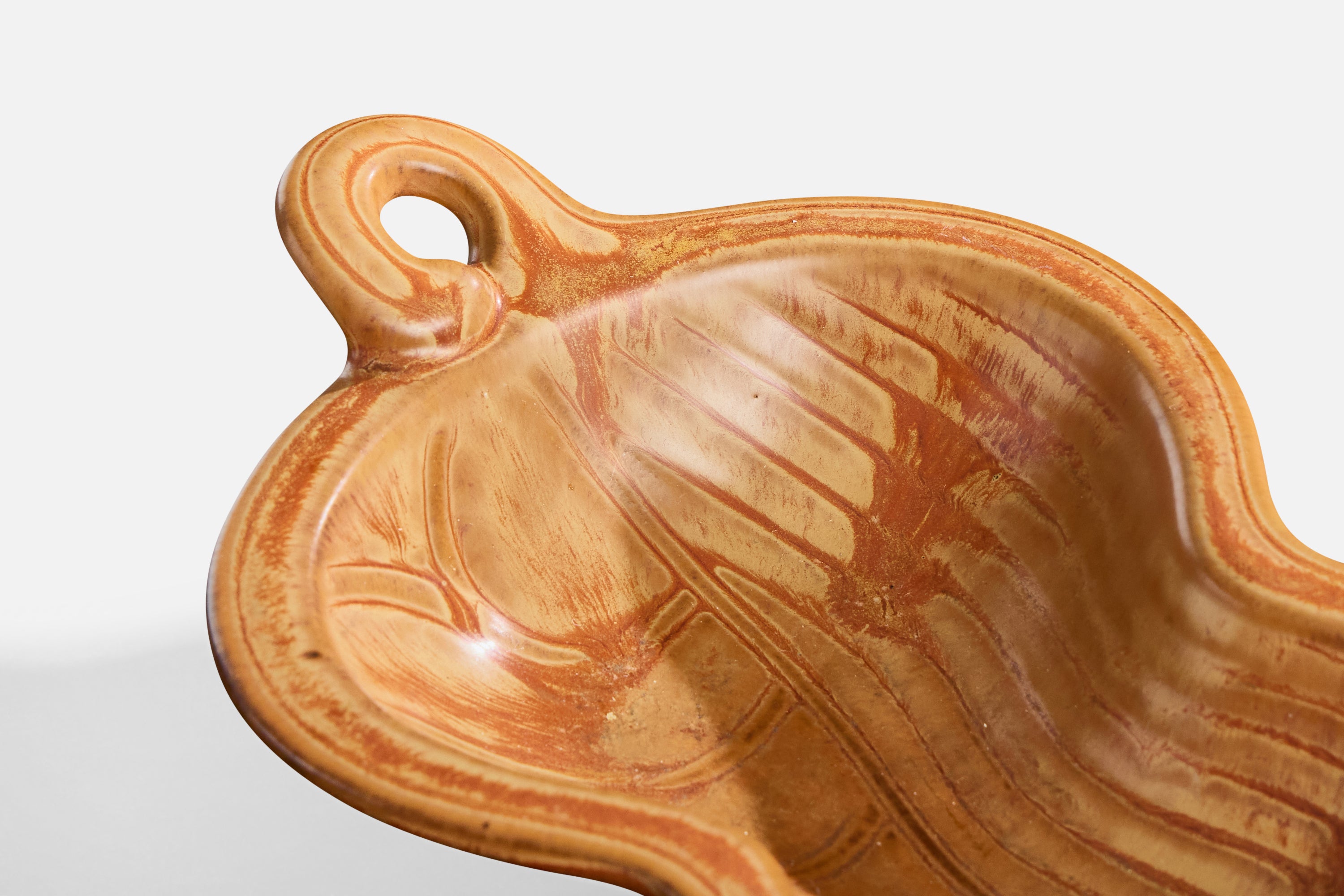 A brown-glazed stoneware bowl or dish designed by Gunnar Nylund and produced by Rörstrand, Sweden, c. 1940s.