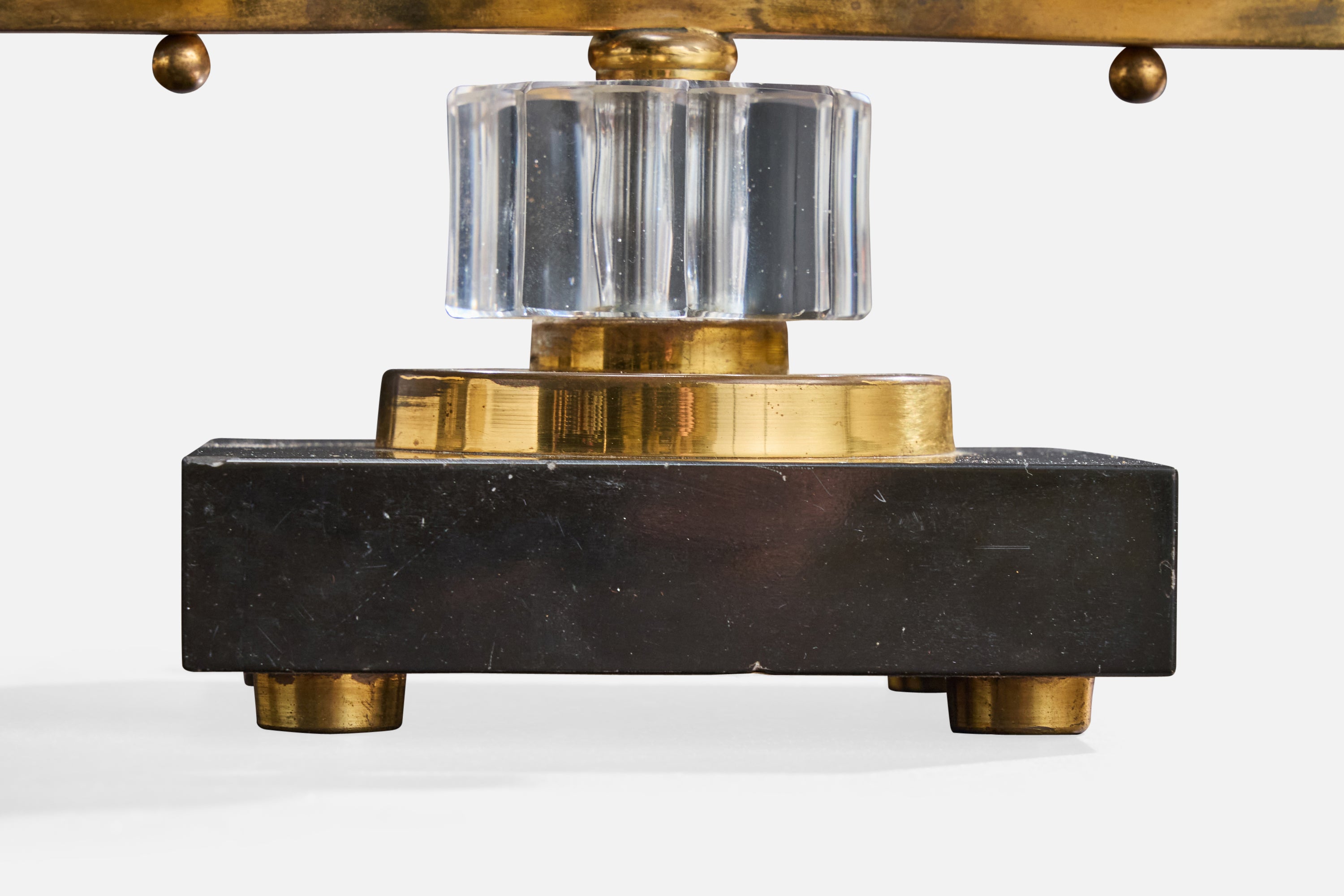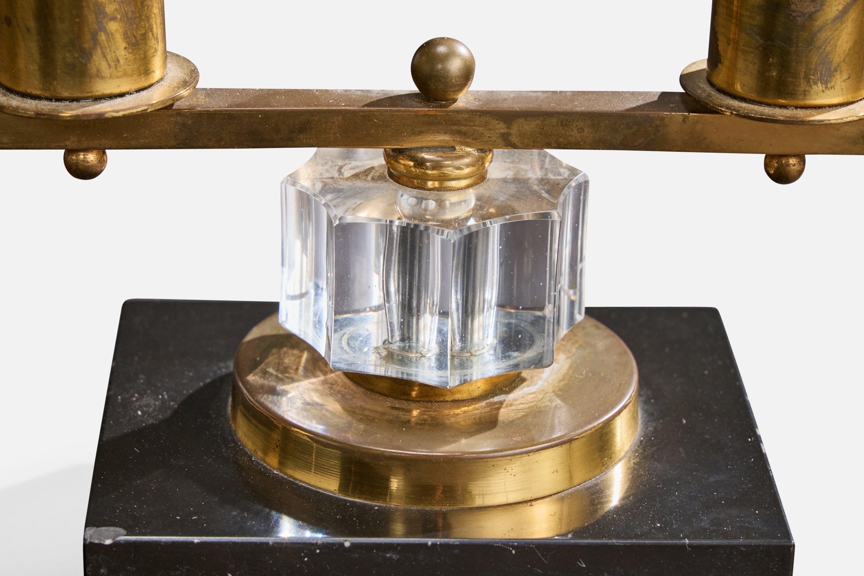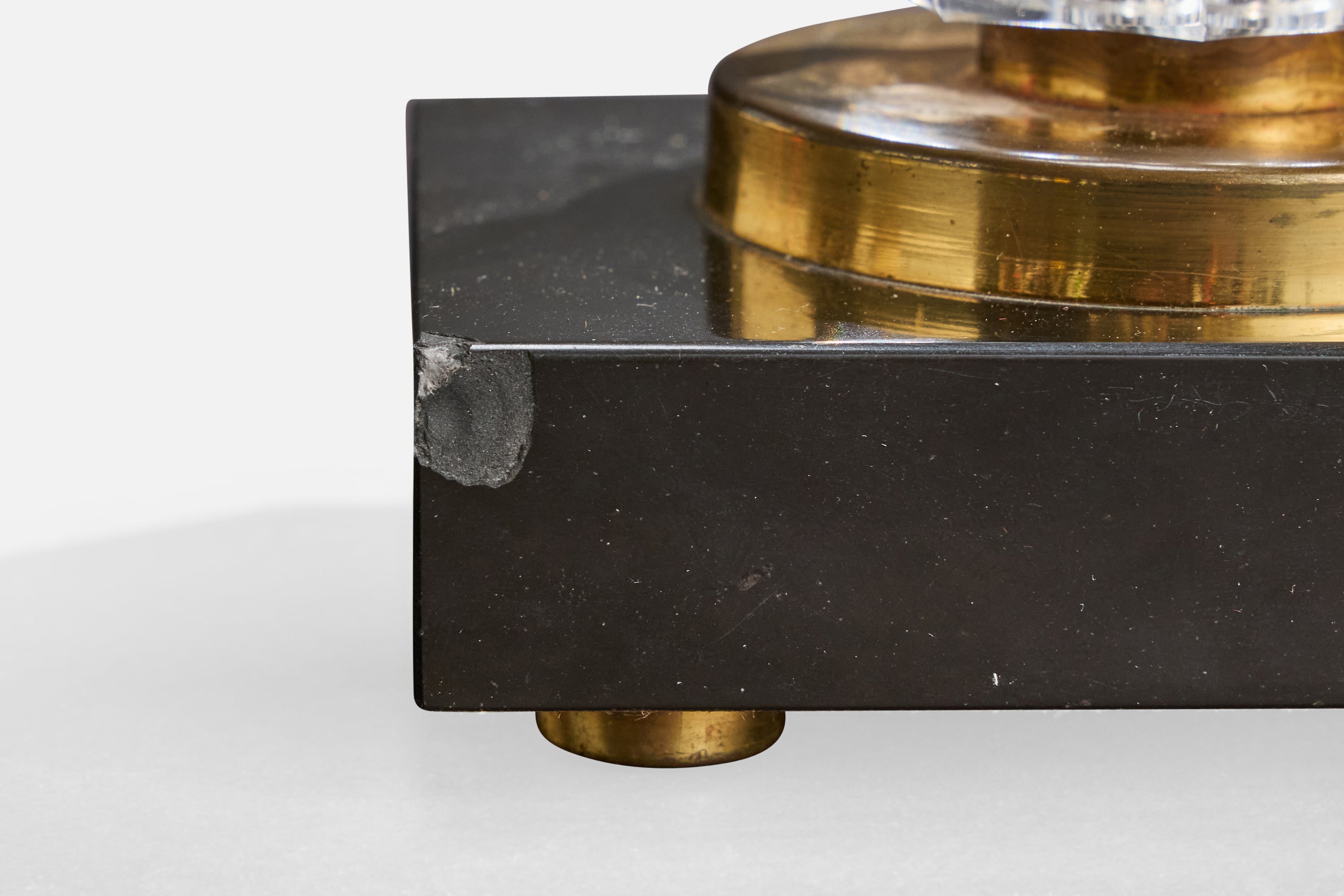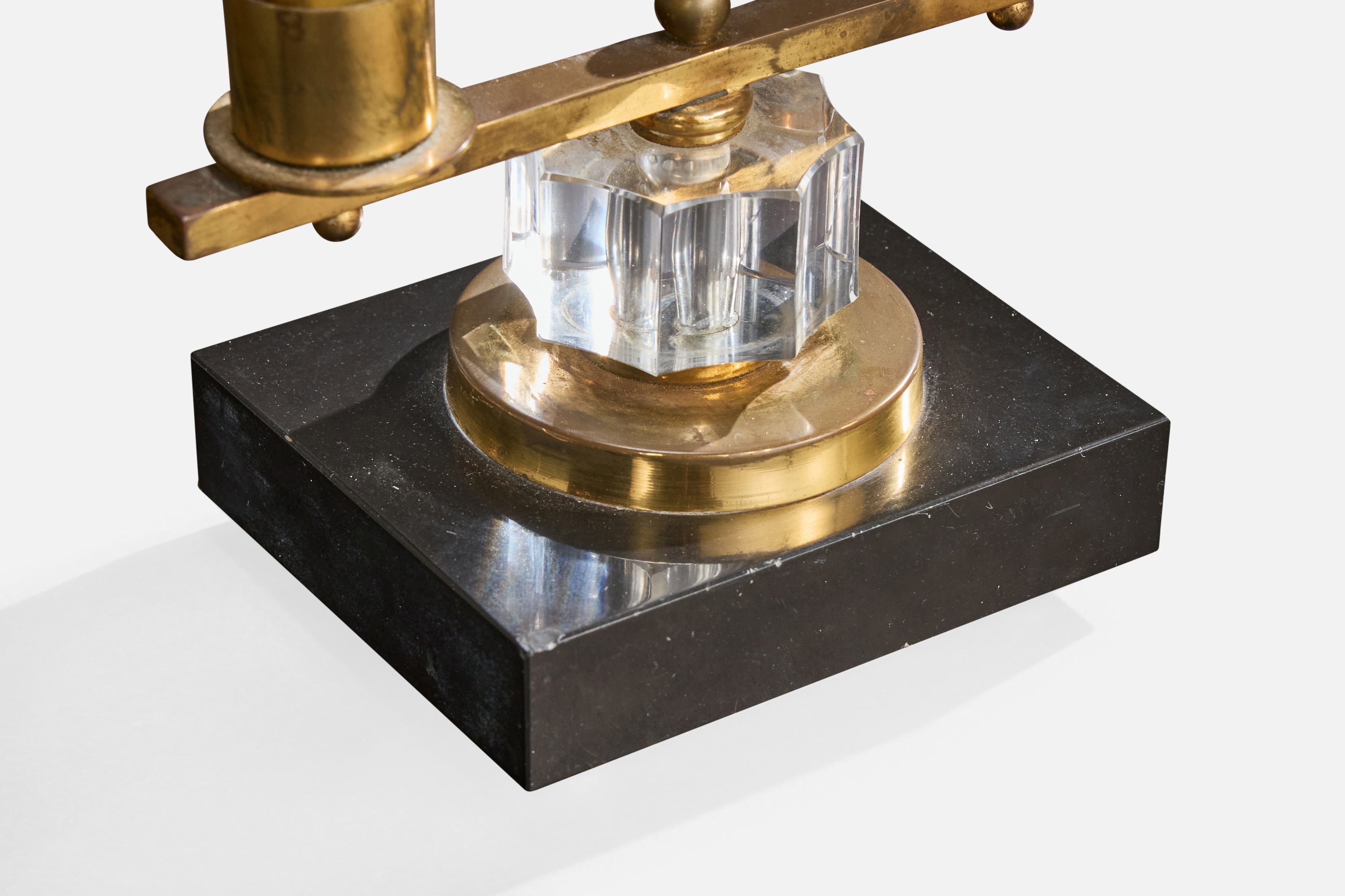 French Designer, Table Lamps, Brass, Marble, Acrylic, Fabric, France, 1950s