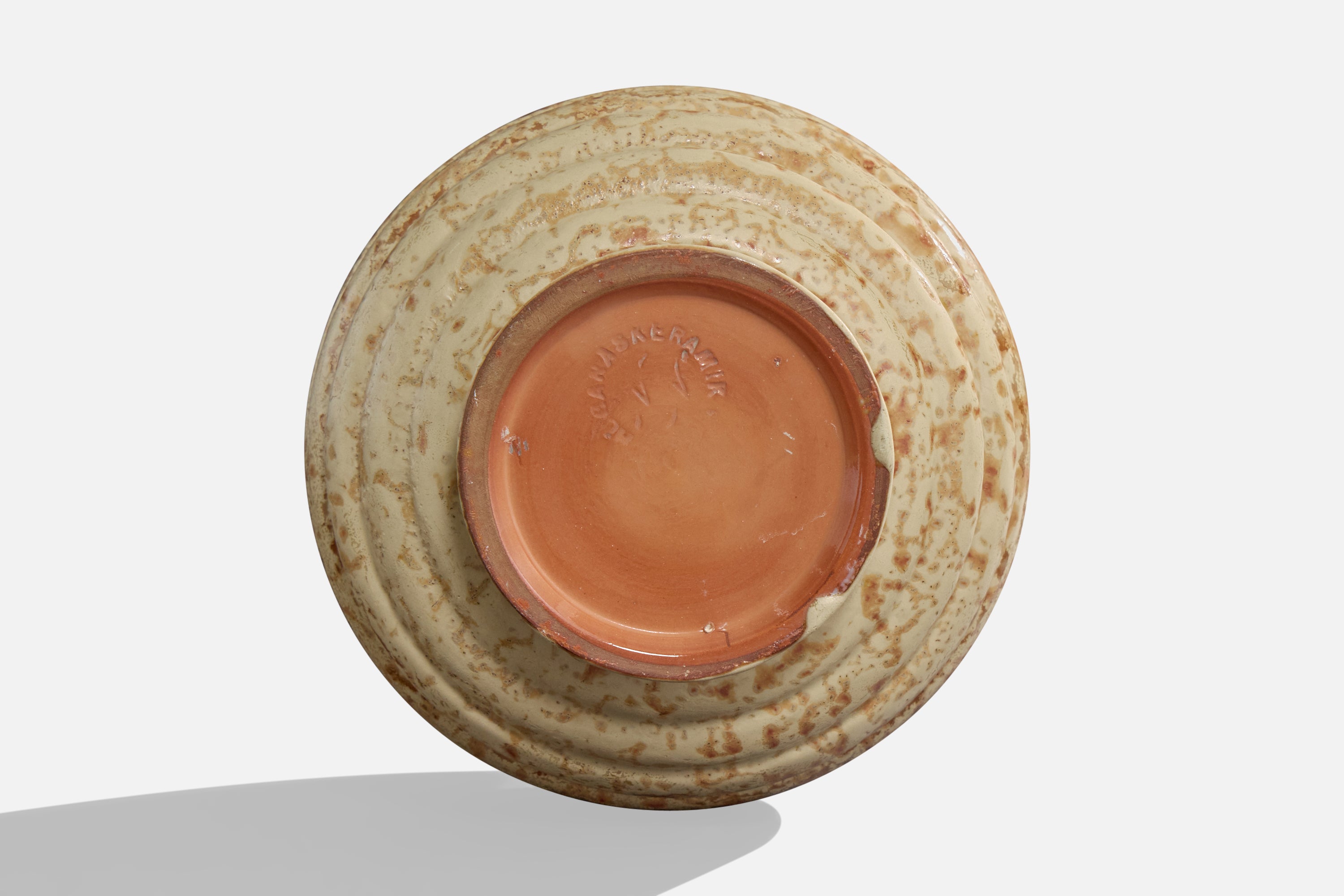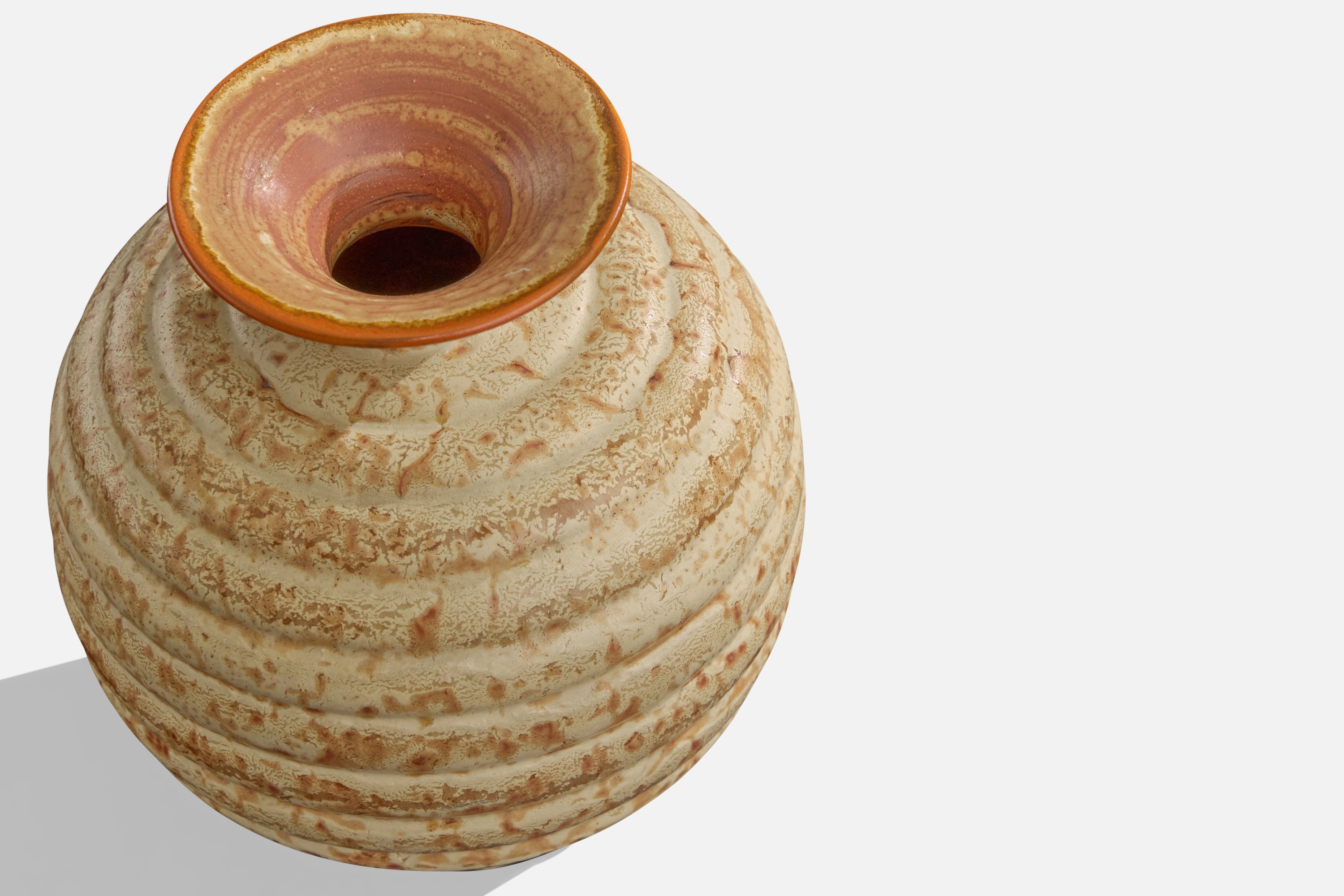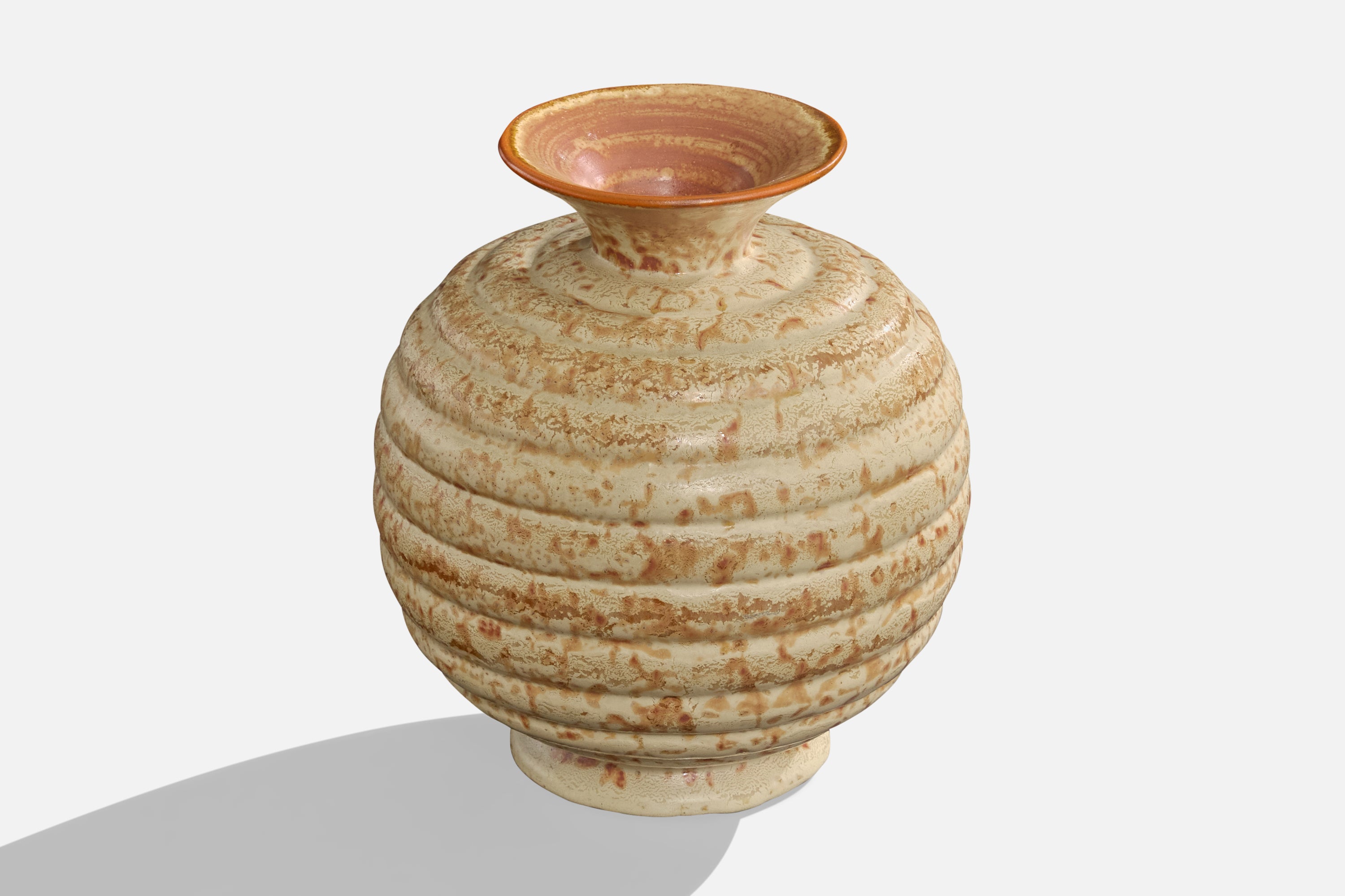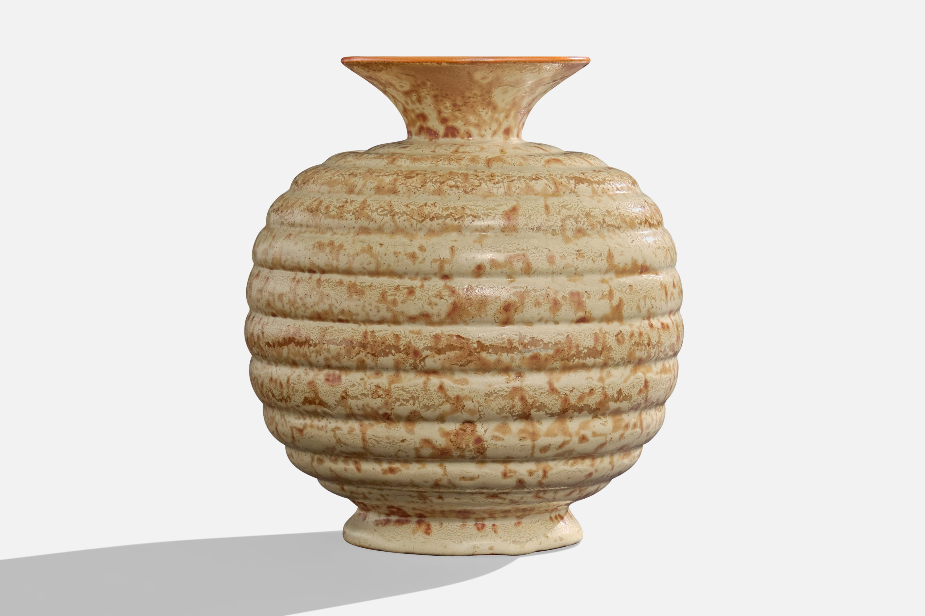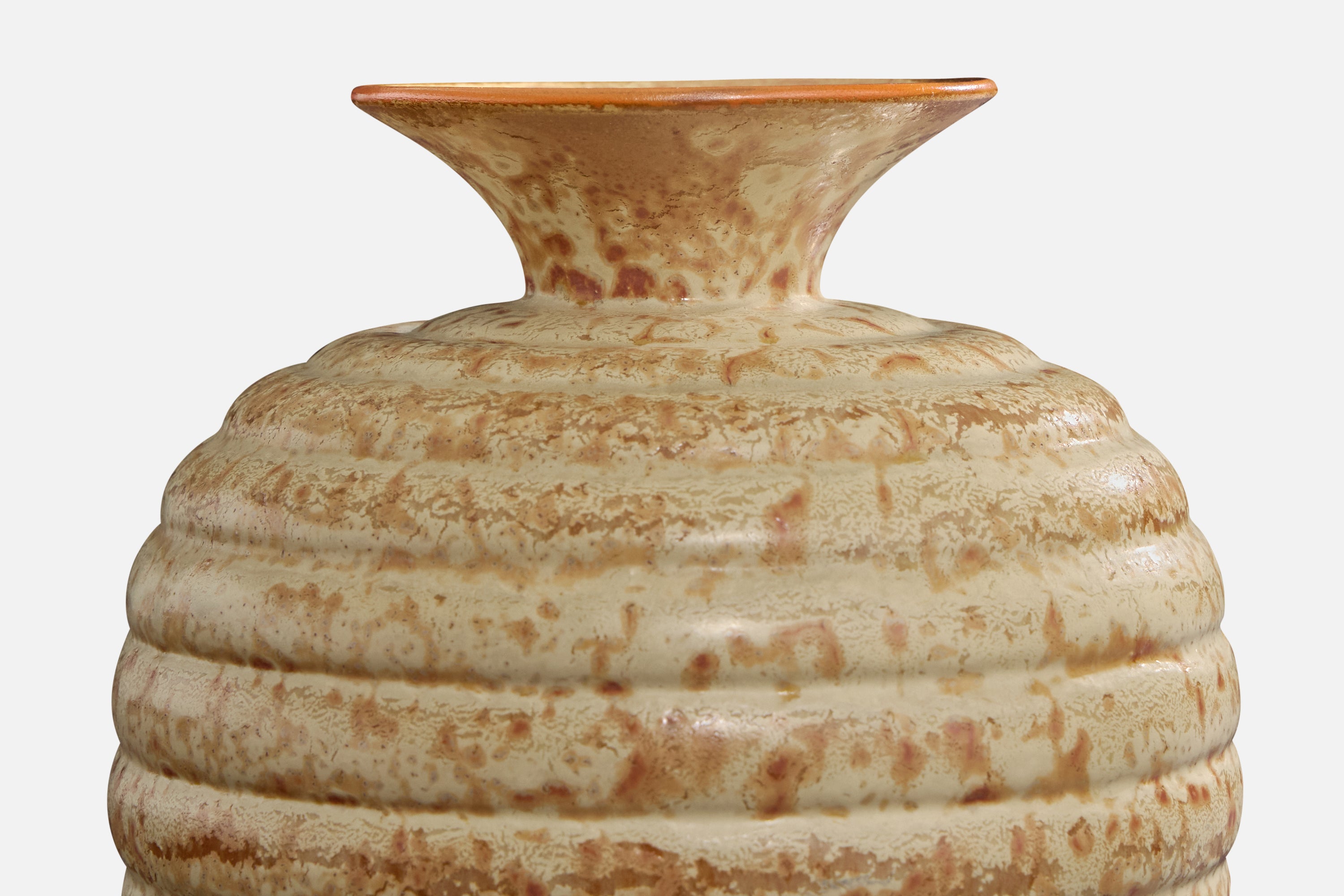 A beige and brown-glazed ceramic vase produced by Höganäskeramik, Sweden, c. 1940s.