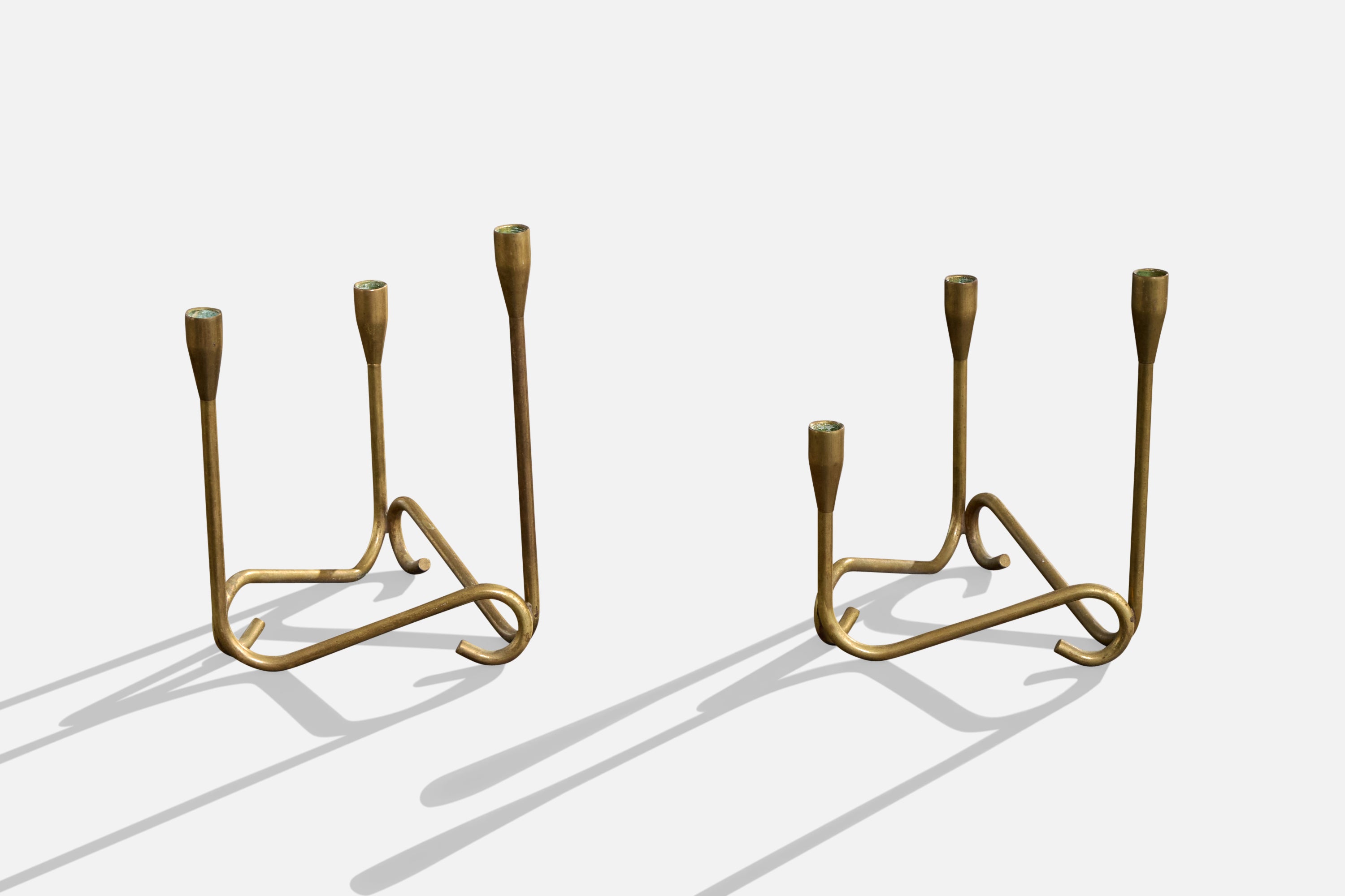 Danish Designer, Candelabras, Brass, Denmark, 1950s