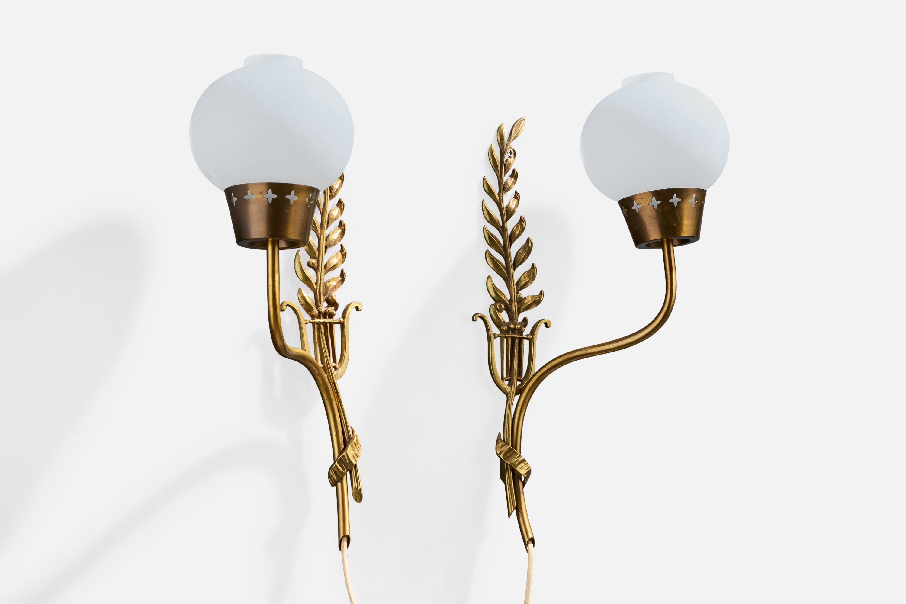 Einar Bäckström, Wall Lights, Brass, Glass, Sweden, 1940s