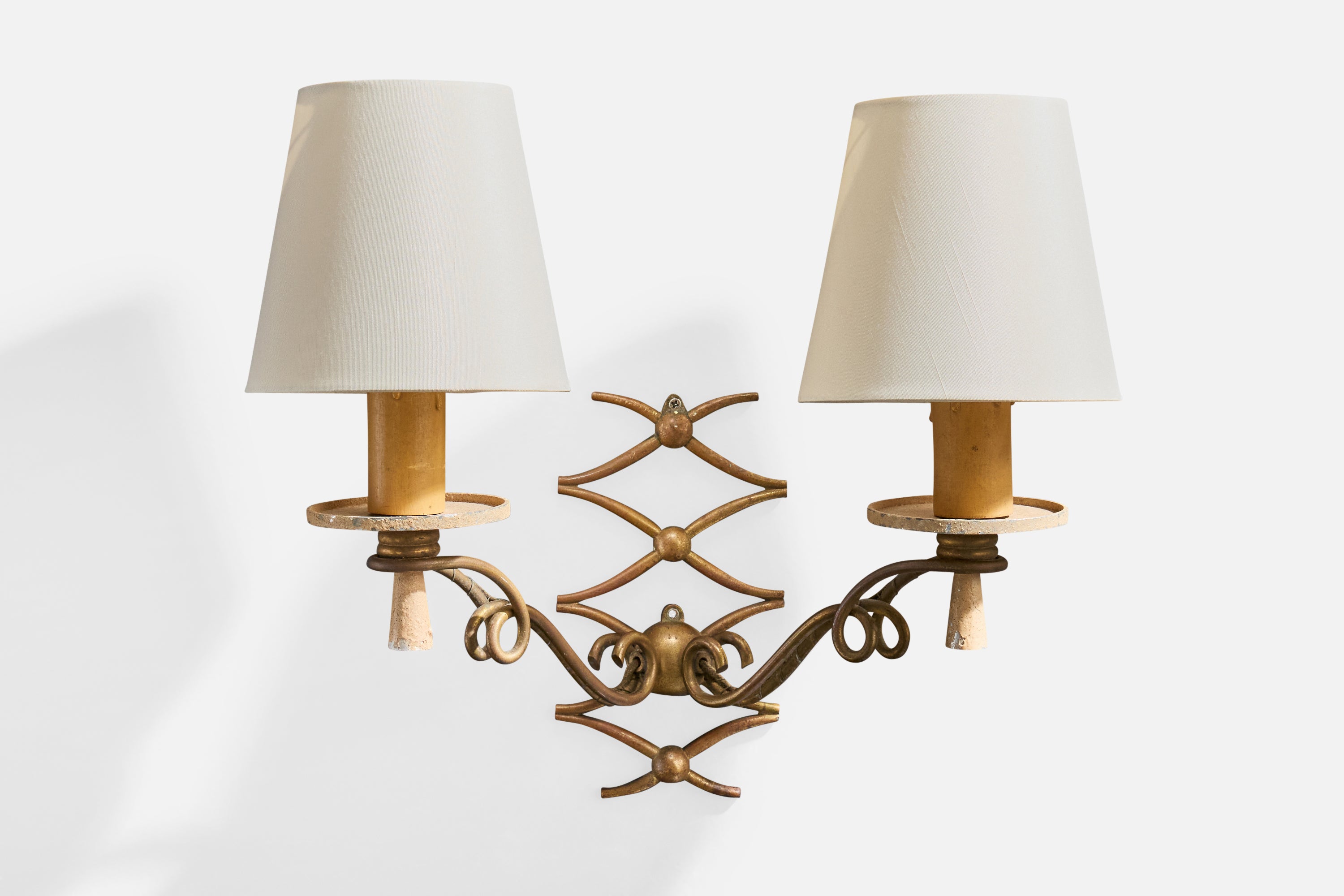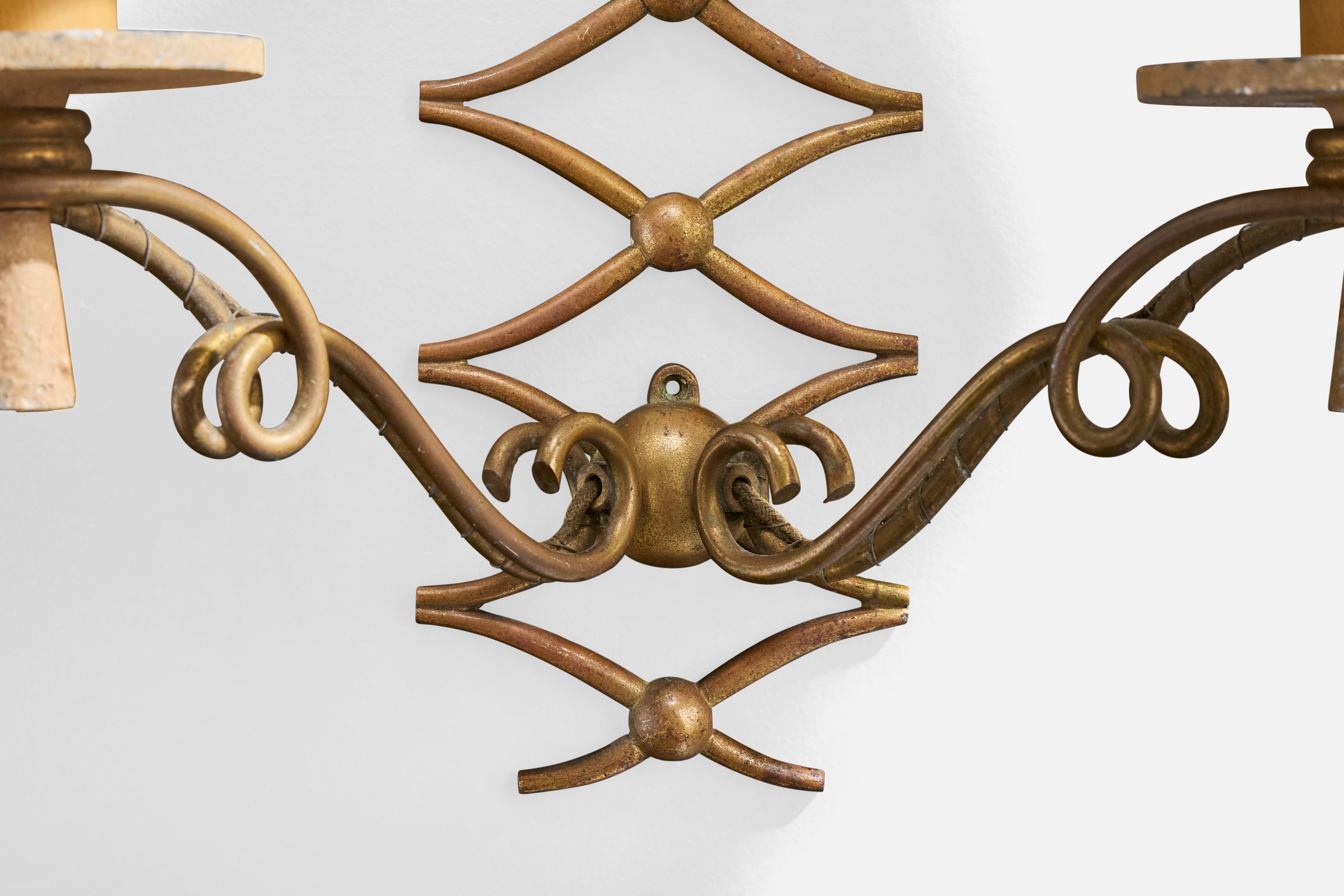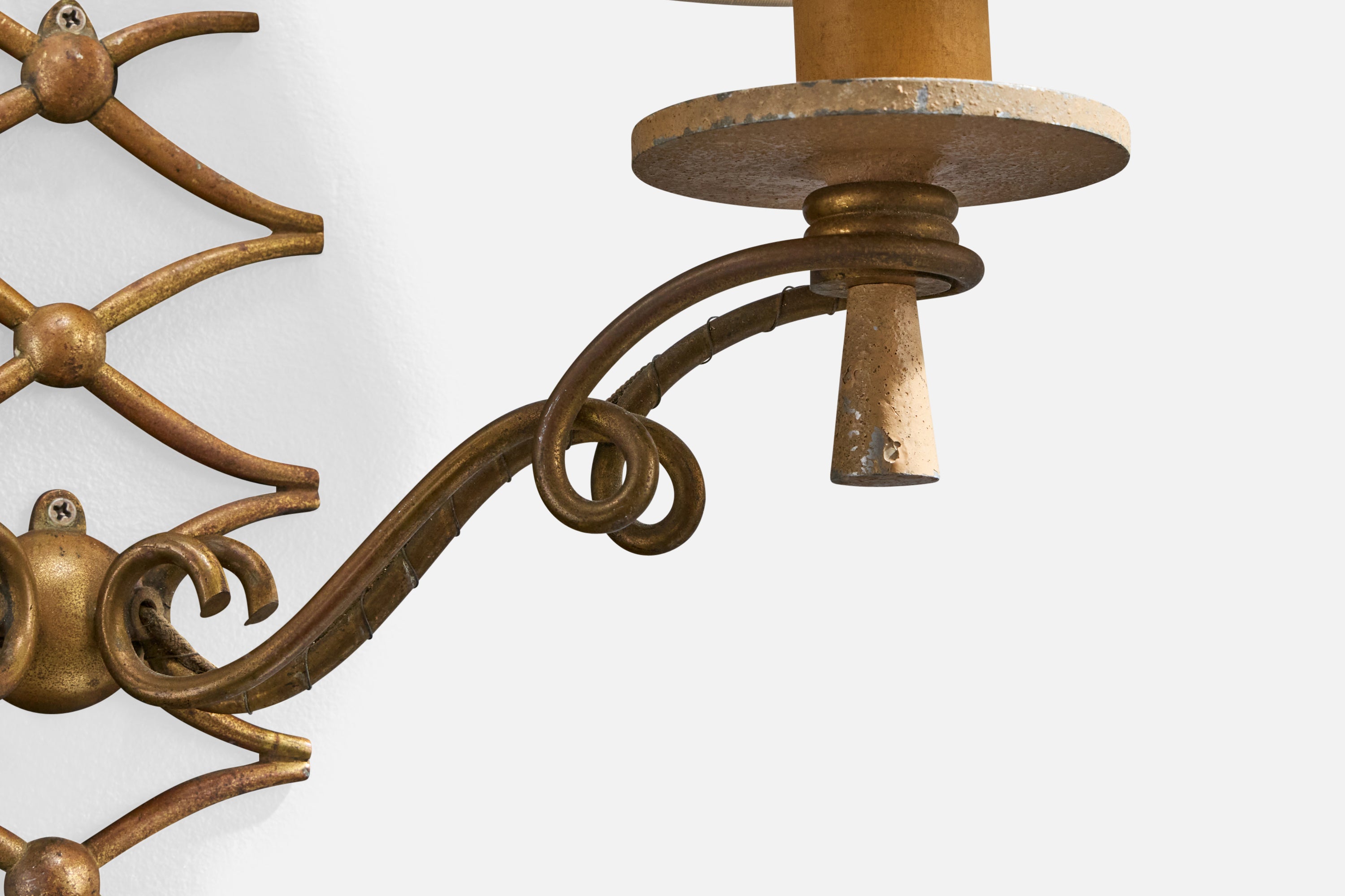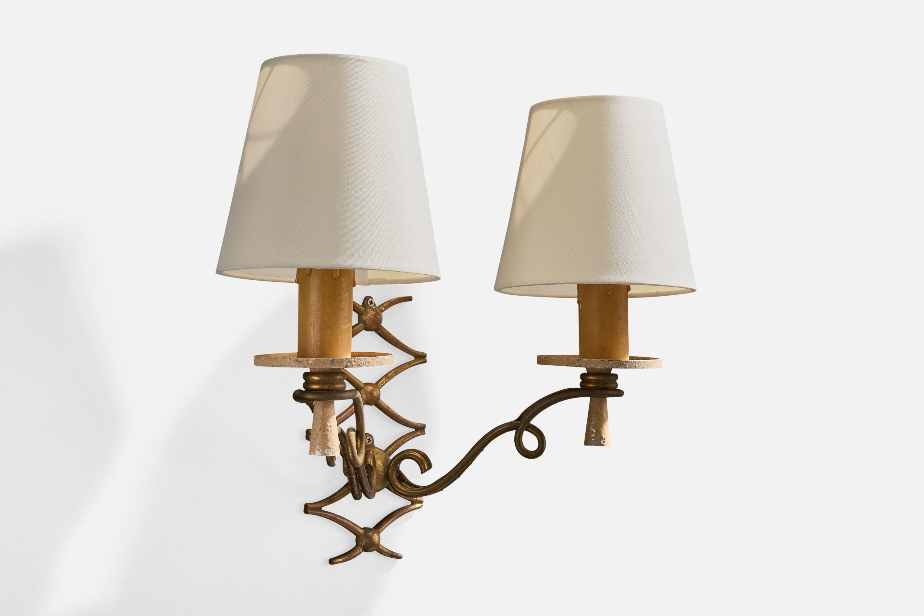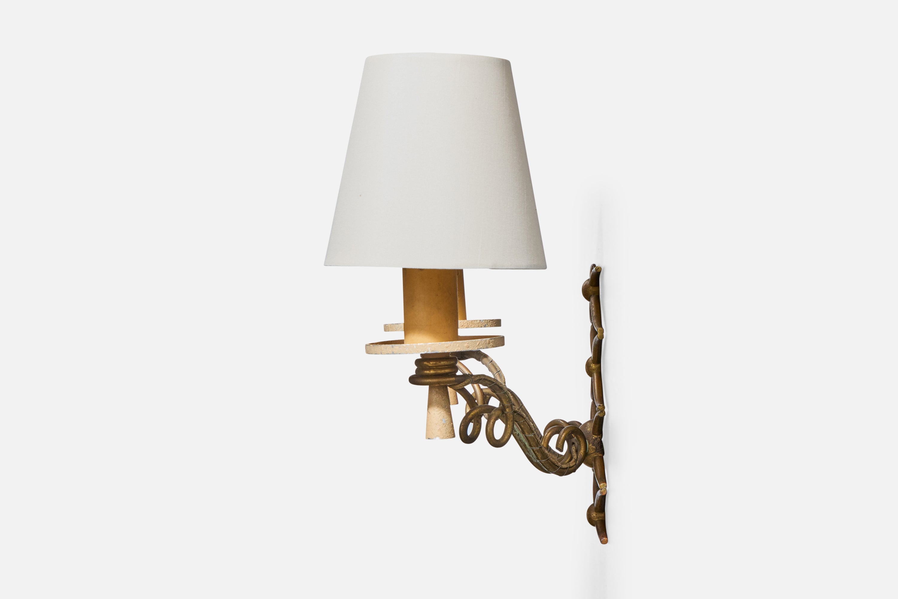 Italian Designer, Wall Light, Brass, Bakelite, Metal, Fabric, Italy, 1930s