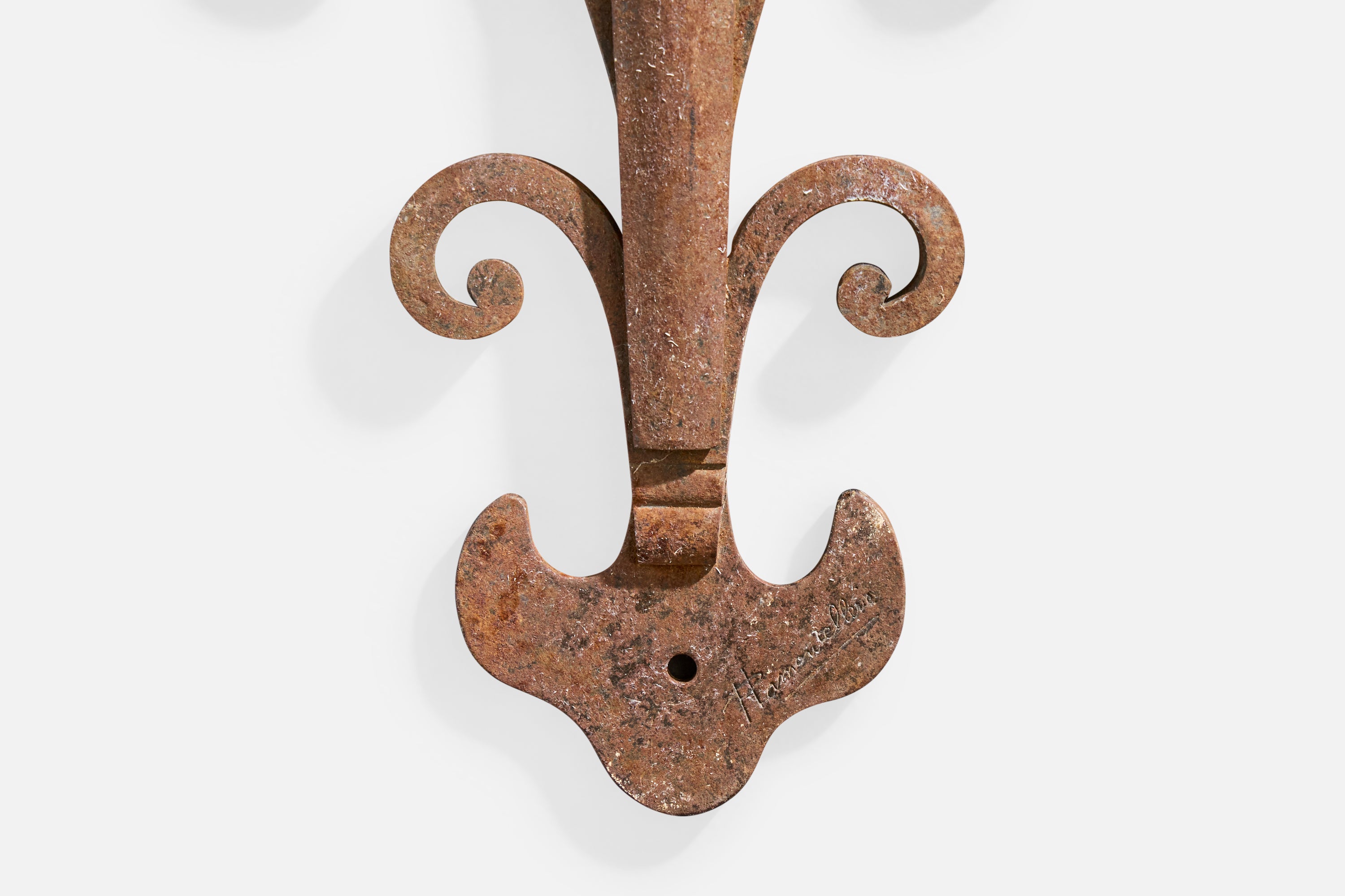 French Designer, Wall Light, Iron, Brass, Fabric, France, 1940s