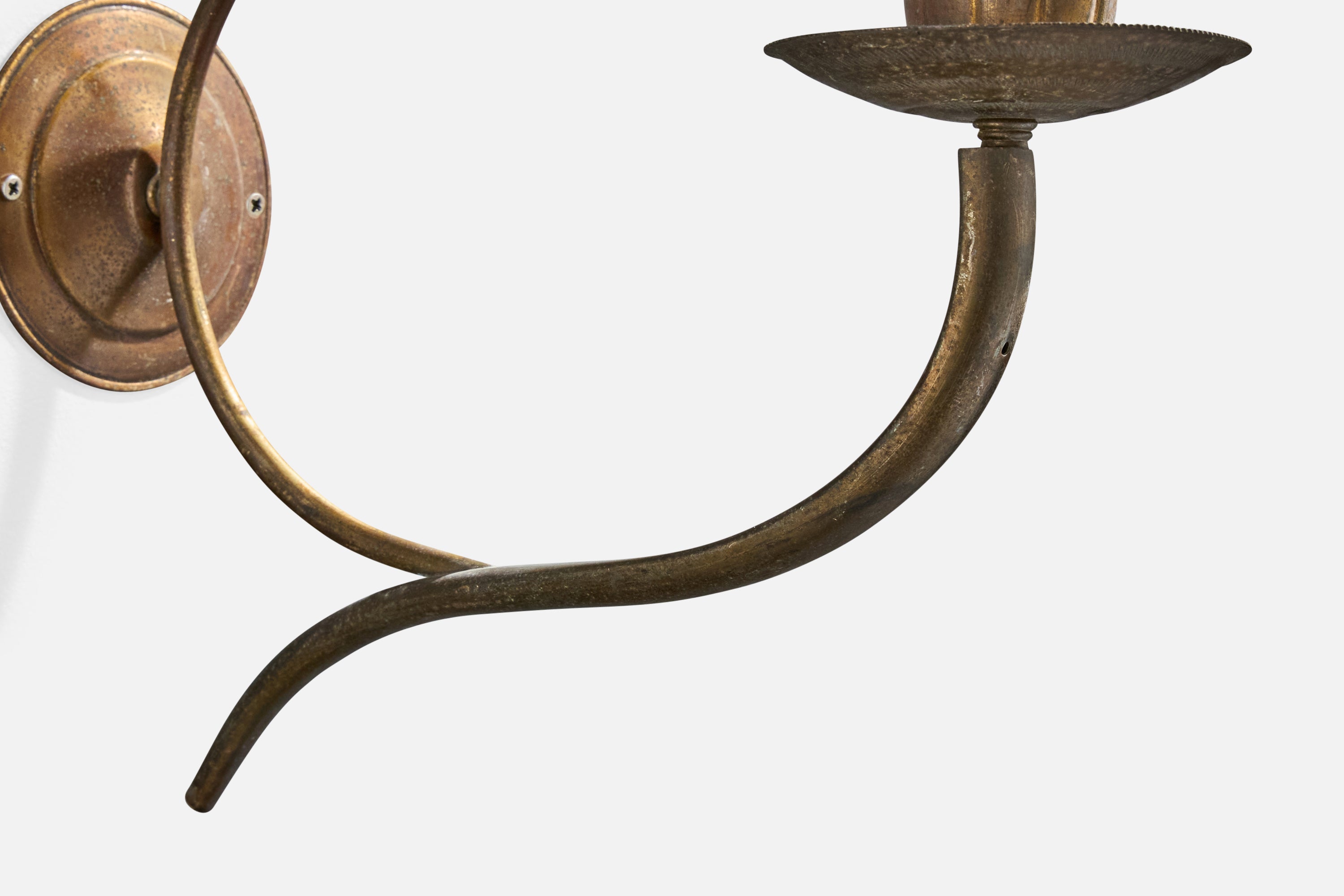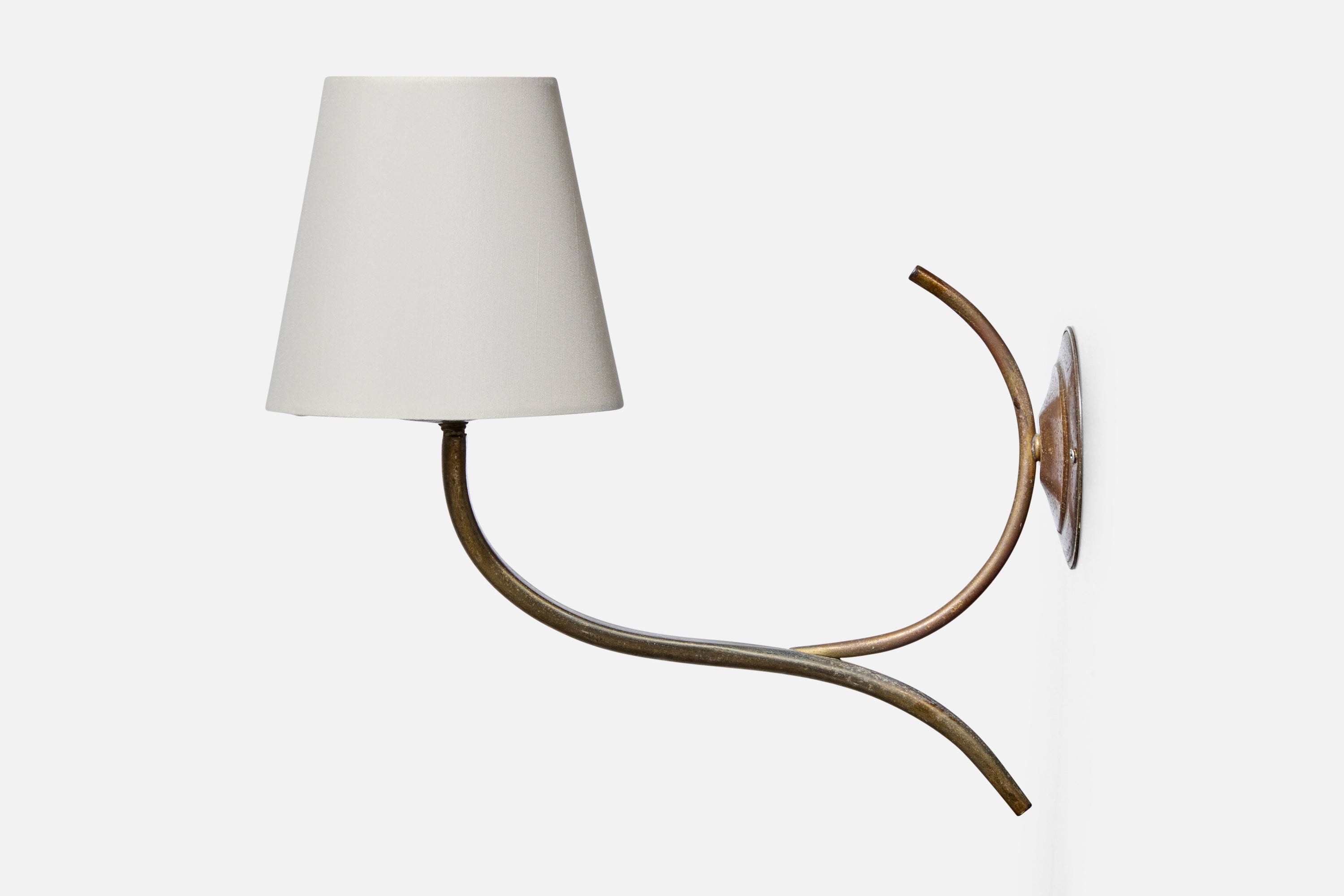Italian Designer, Wall Lights, Brass, Fabric, Italy, 1930s