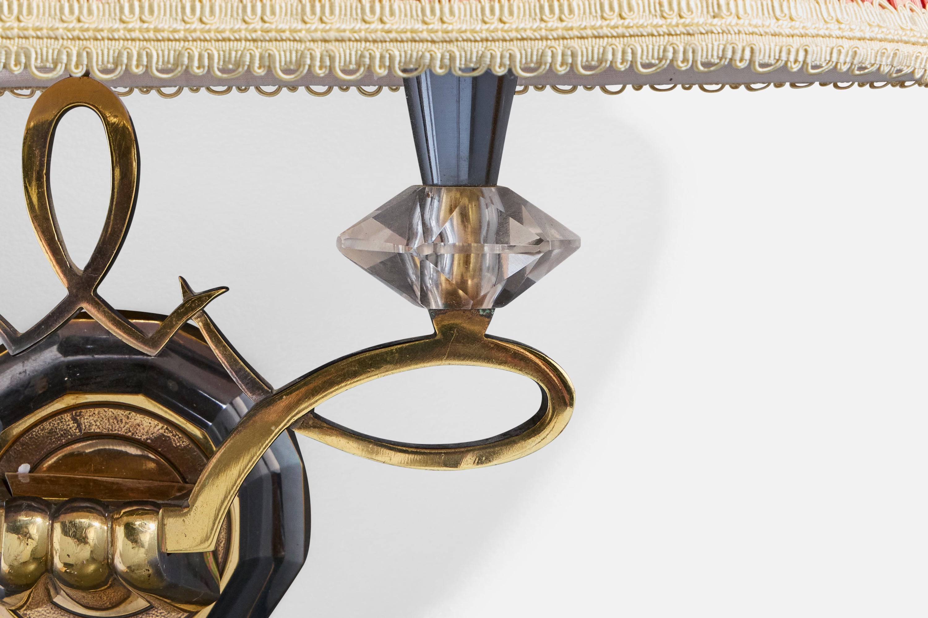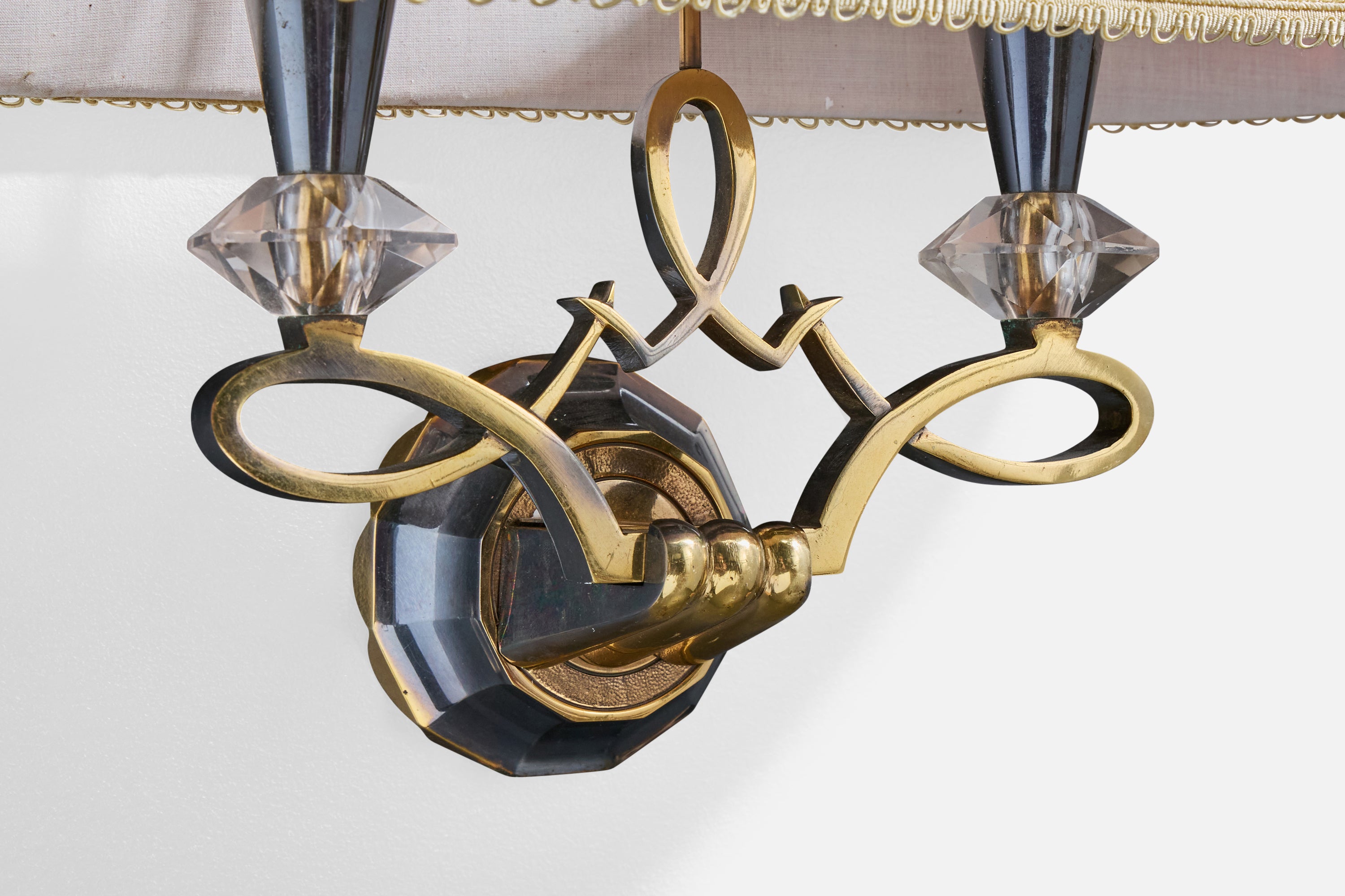 French Designer, Wall Light, Brass, Metal, Acrylic, Fabric, France, 1950s