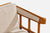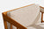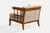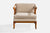 A walnut and beige fabric lounge chair designed and produced in the US, c. 1950s.