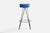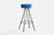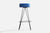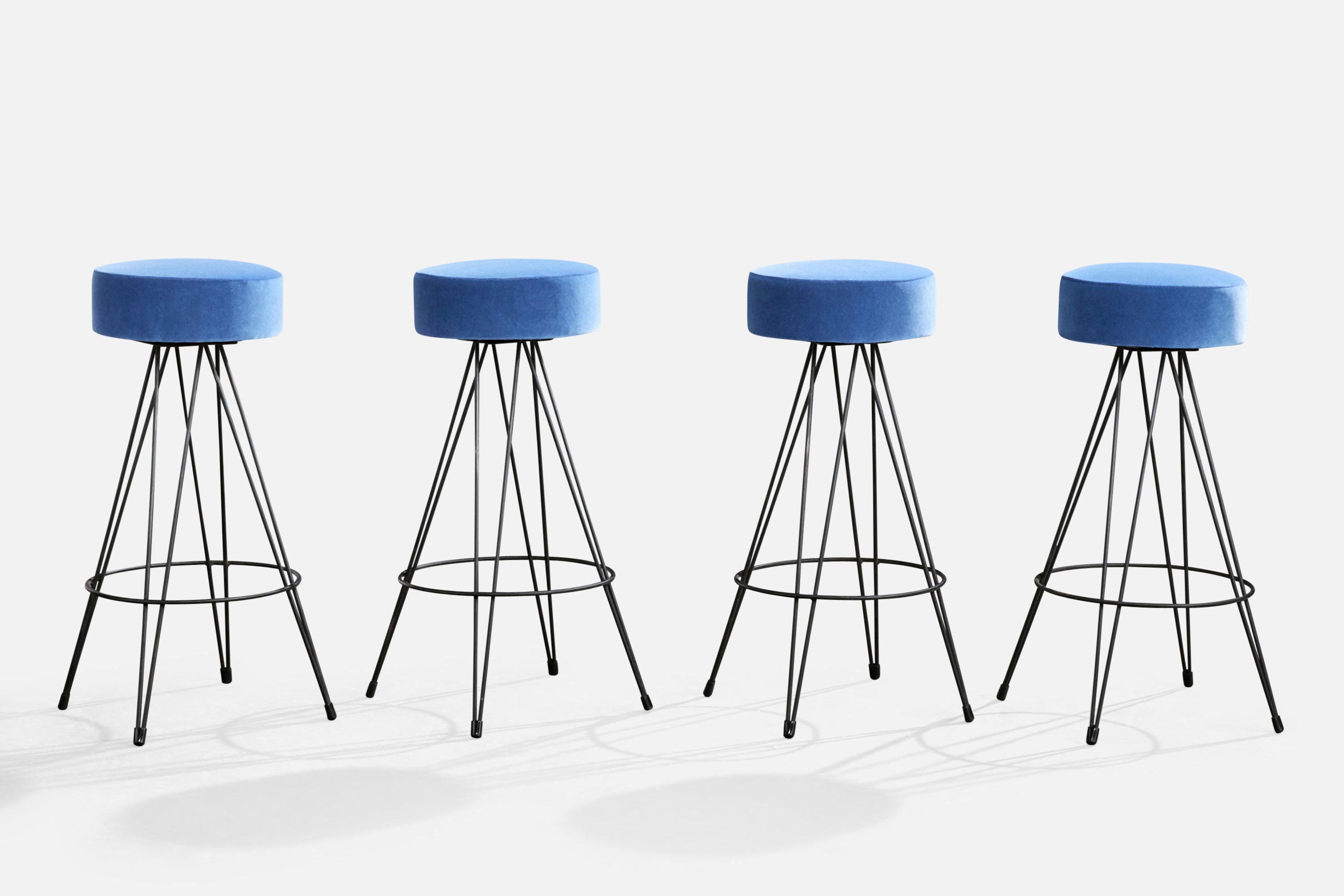 A set of four black-painted iron and blue velvet counter stools or bar stools designed and produced in the US, c. 1950s.
