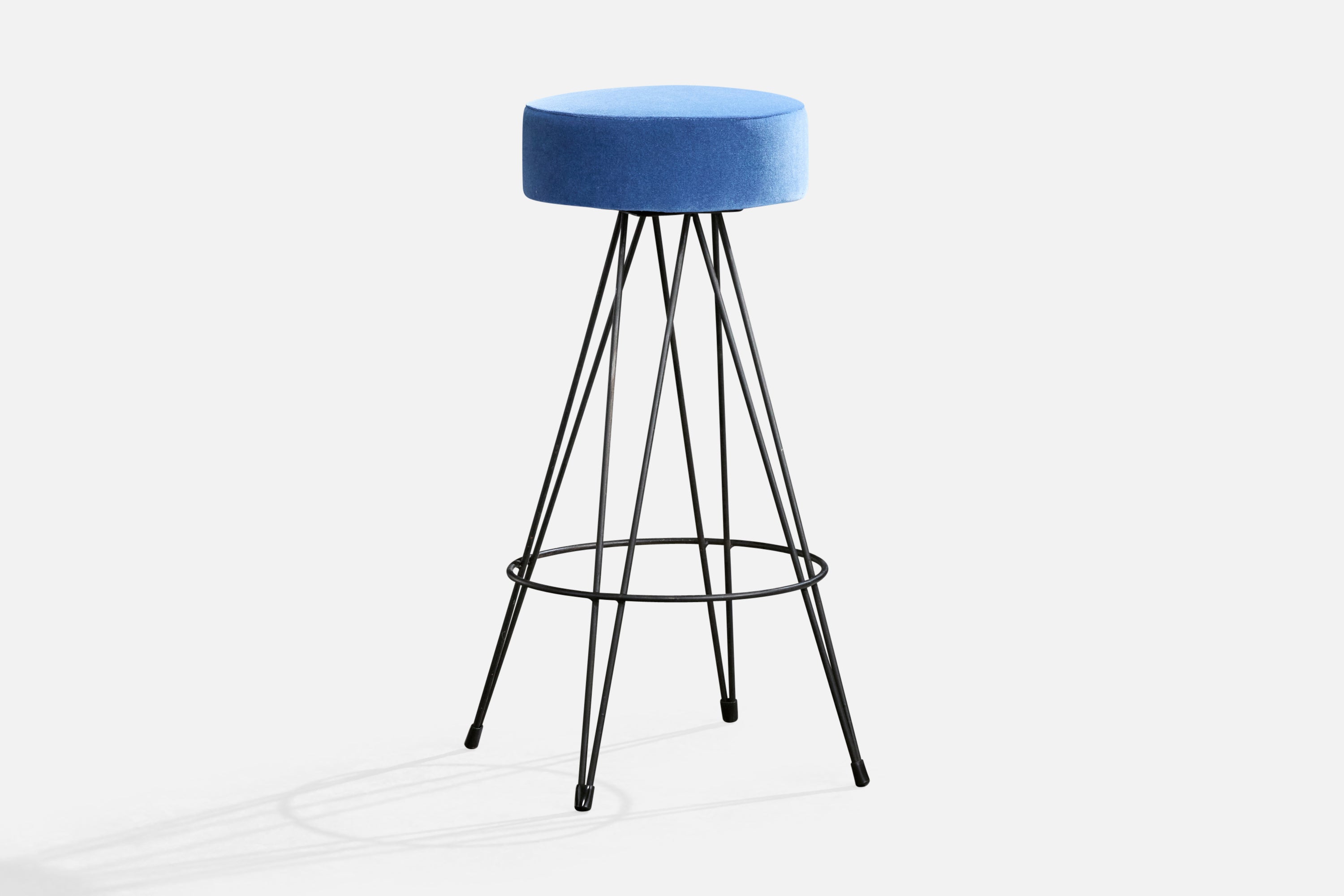 American Designer, Counter Stools, Iron, Velvet, USA, 1950s