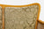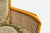 Fabric, wood frame, and cane are vintage worn, with fabric in fair to distressed condition. Patina on nailheads of tufted edges.