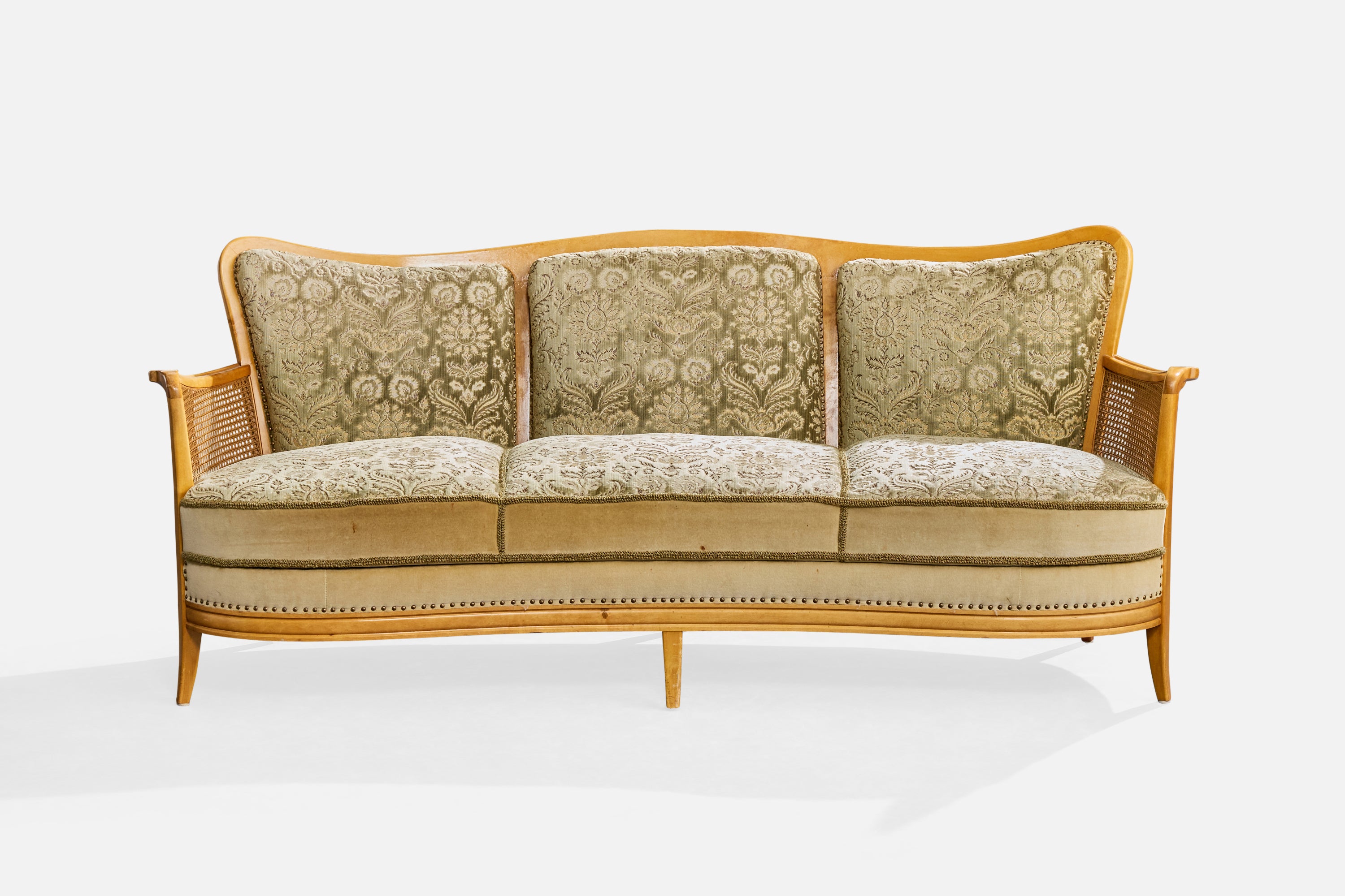 A birch, cane and fabric sofa designed and produced in Sweden, c. 1930s.