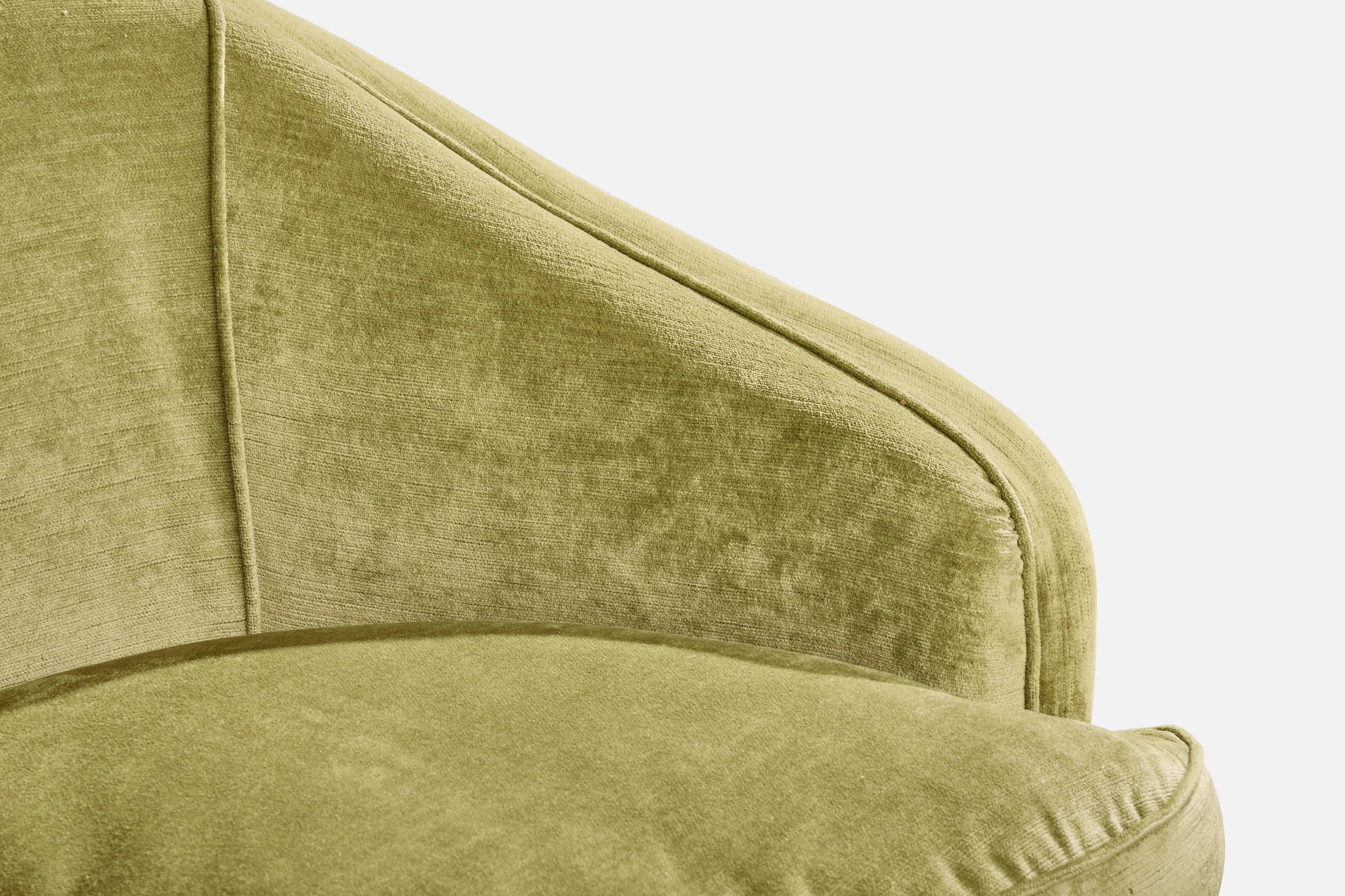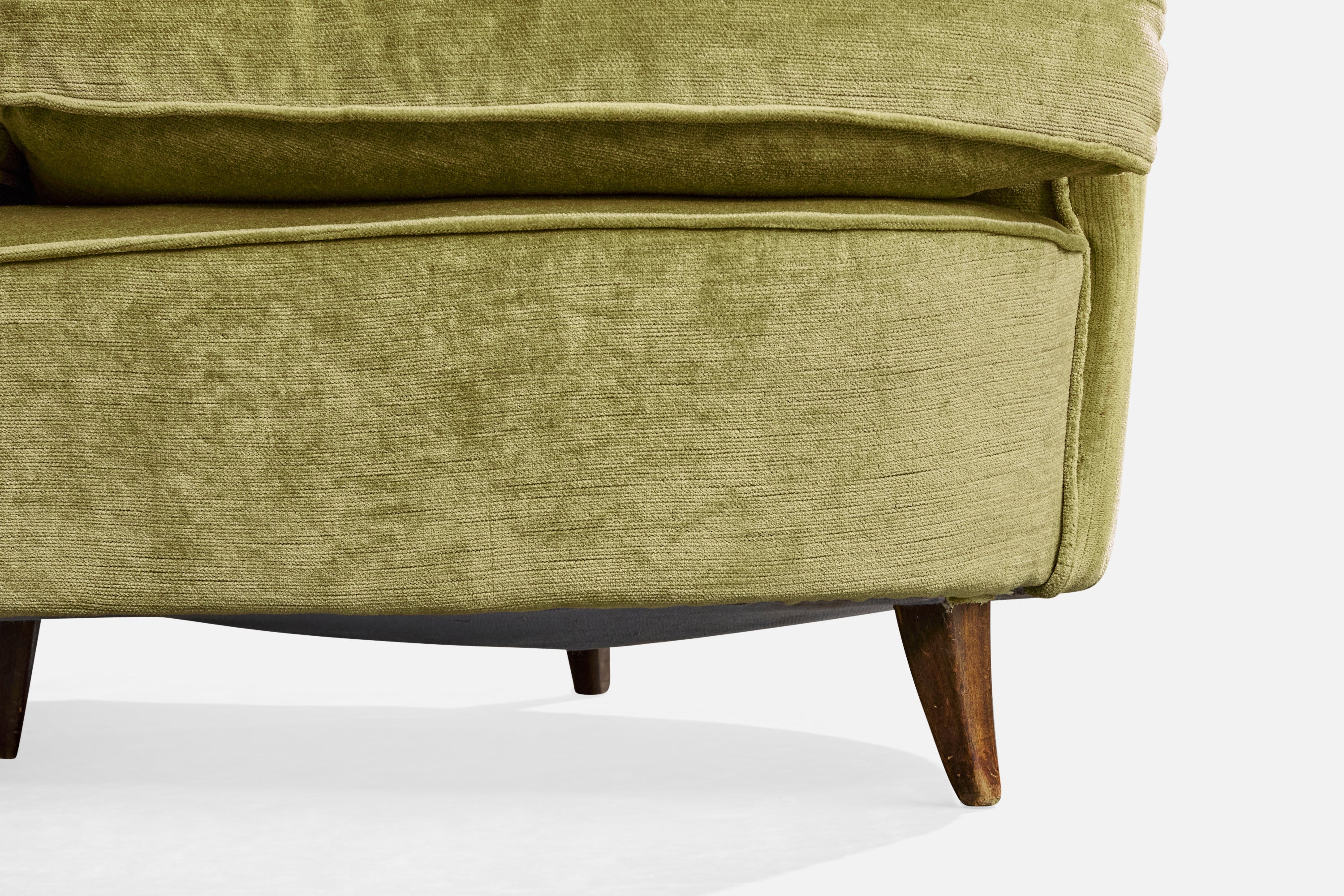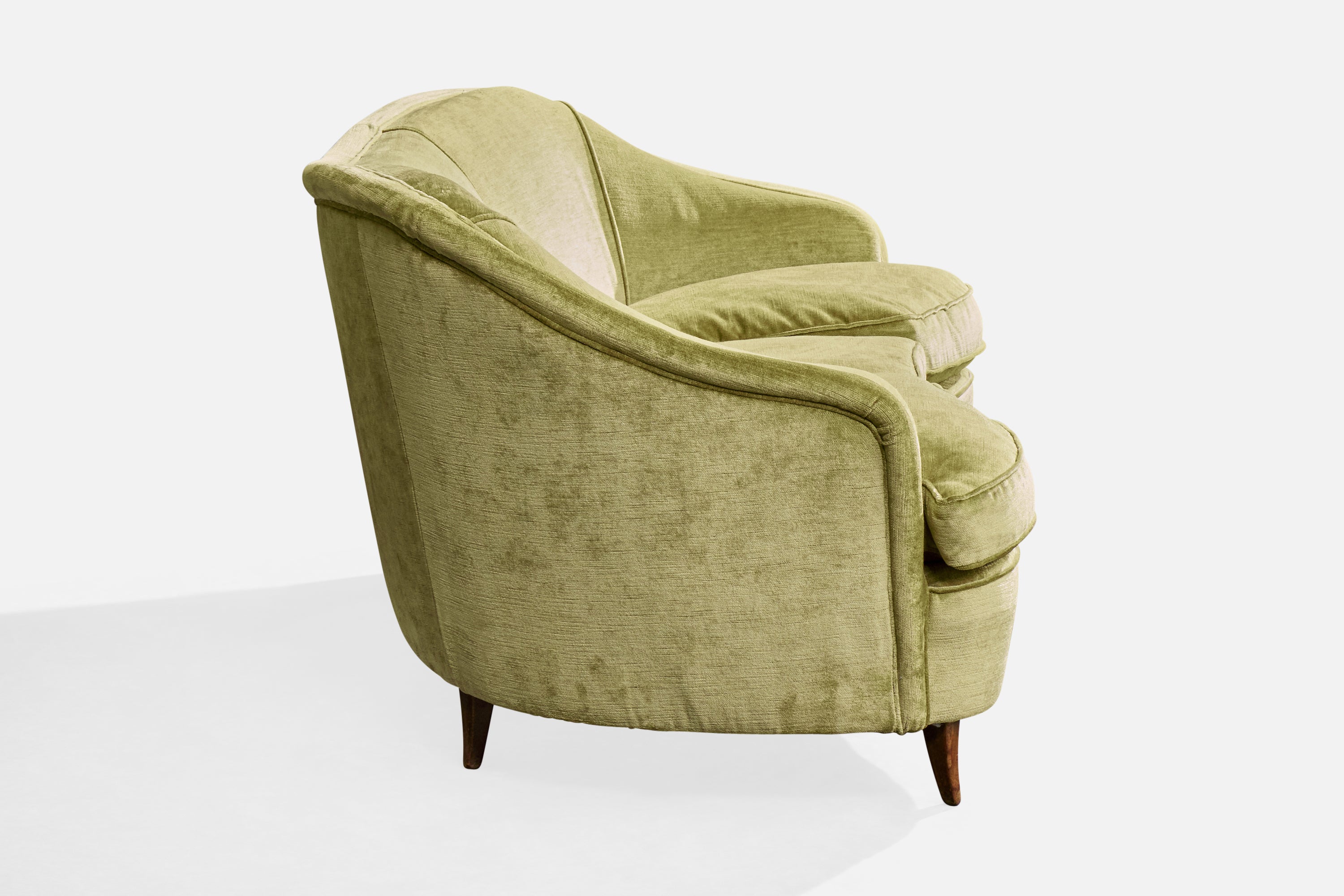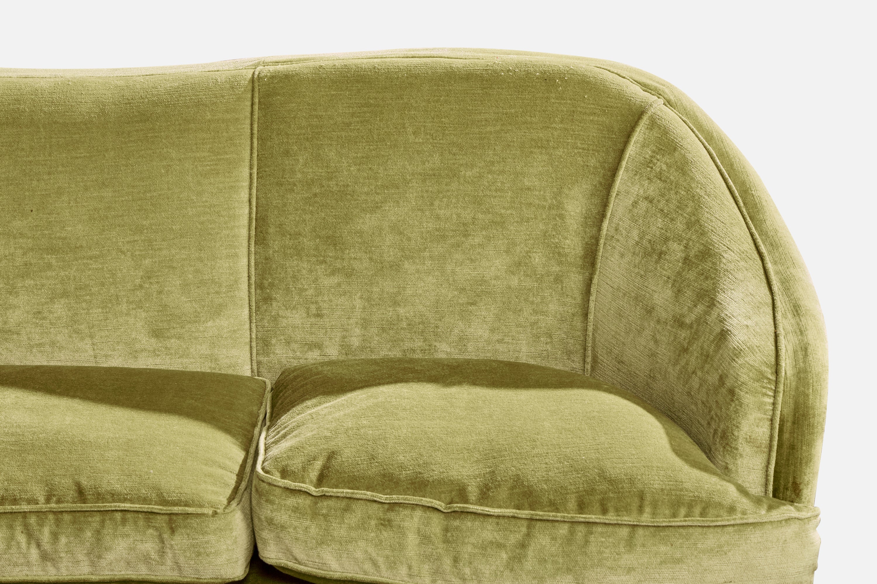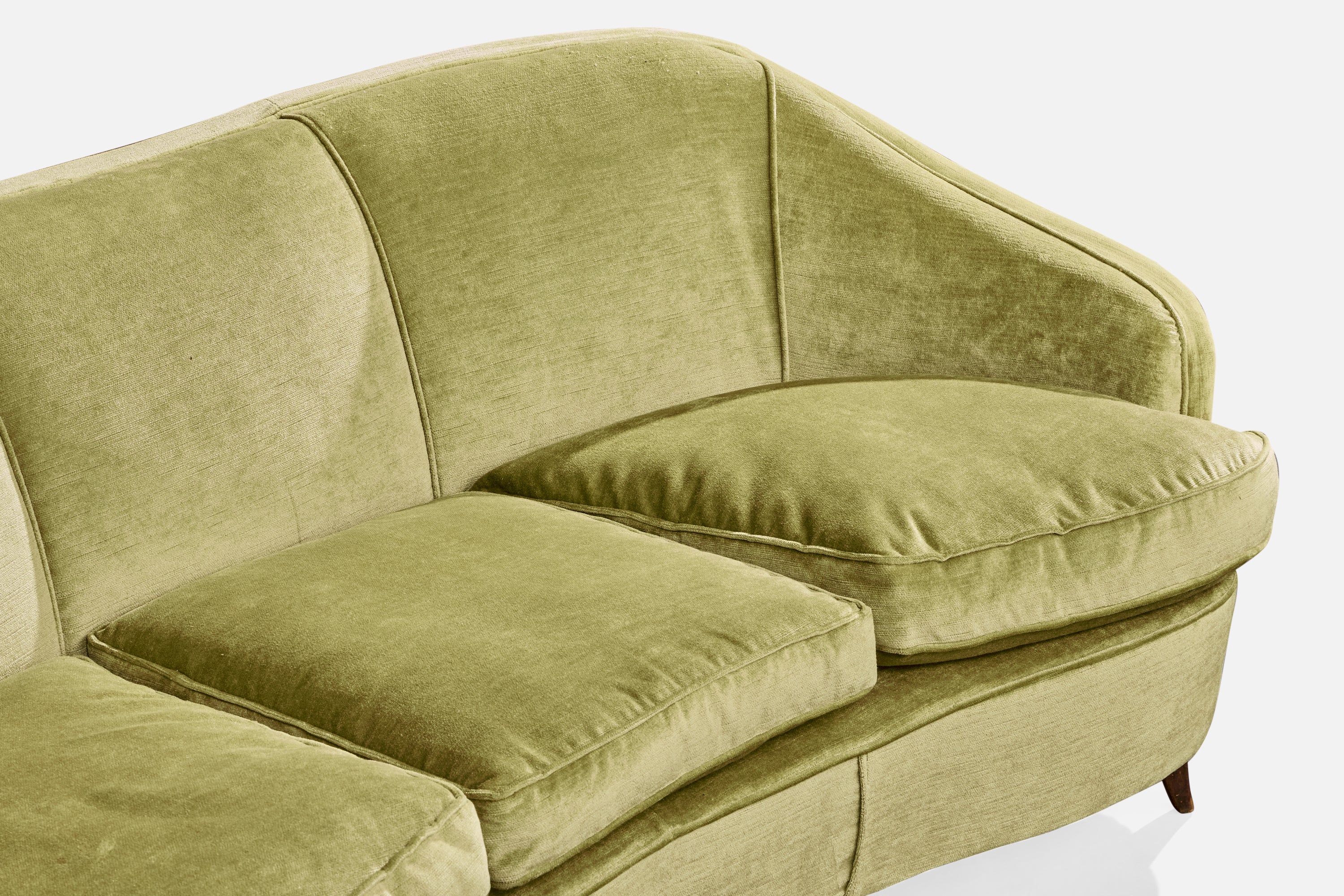 A green velvet and wood sofa designed by Gio Ponti and produced by Casa e Giardino, Italy, c. 1940s.