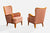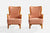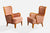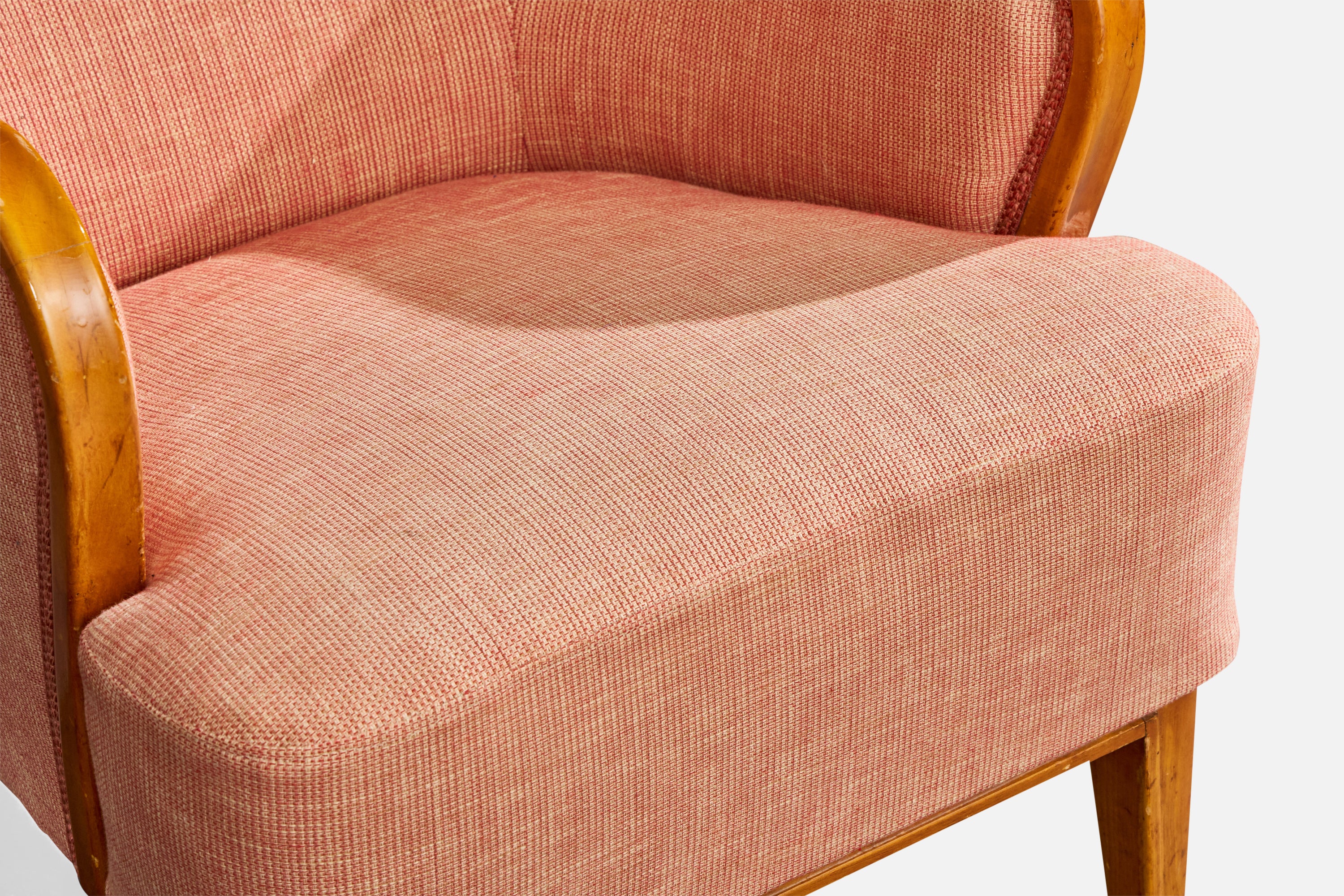 A pair of wood and pink fabric lounge chairs designed and produced in Sweden, c. 1930s.