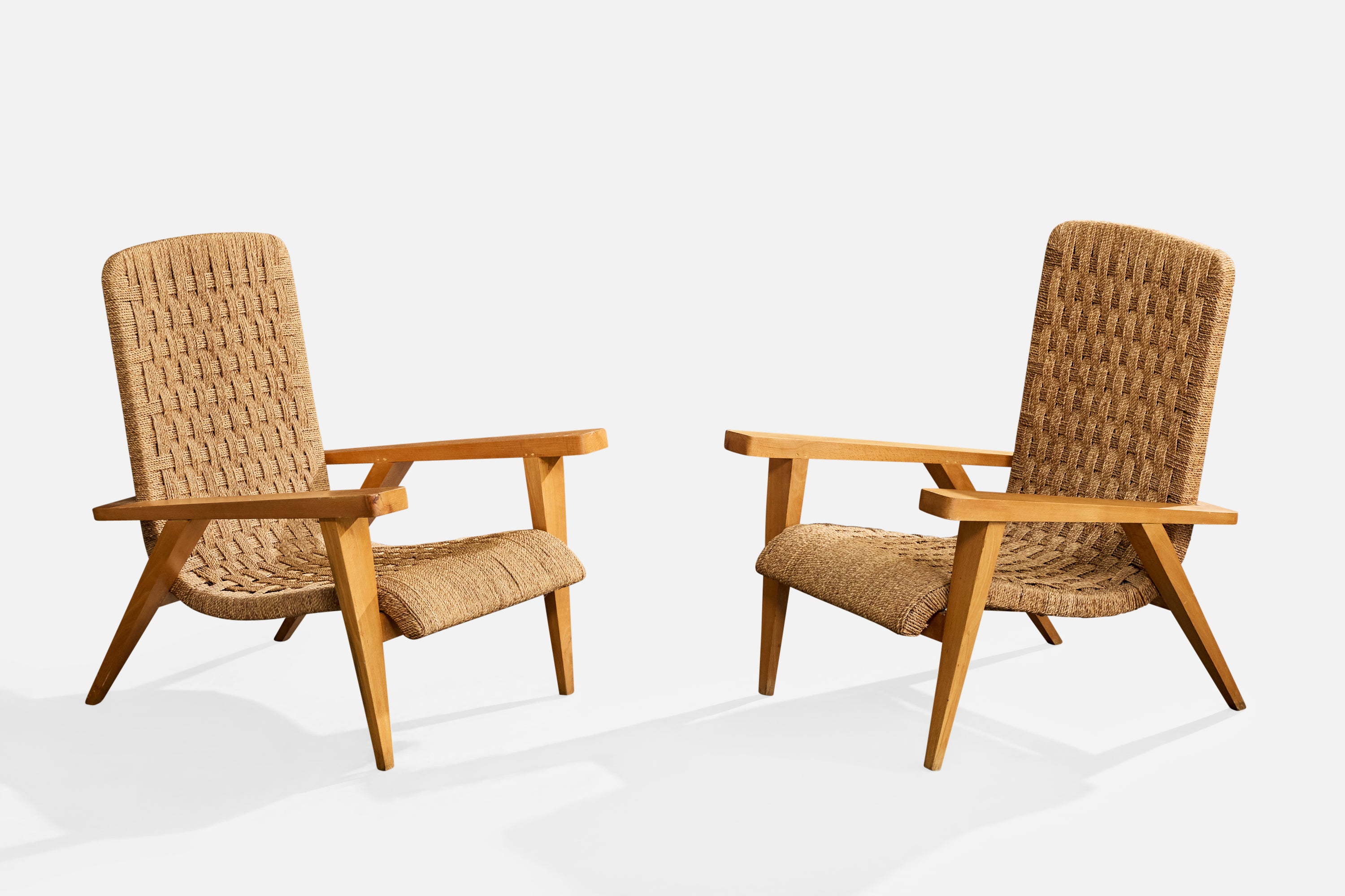 A pair of wood and wicker lounge chairs attributed to Augusto Romano, Italy, 1940s.