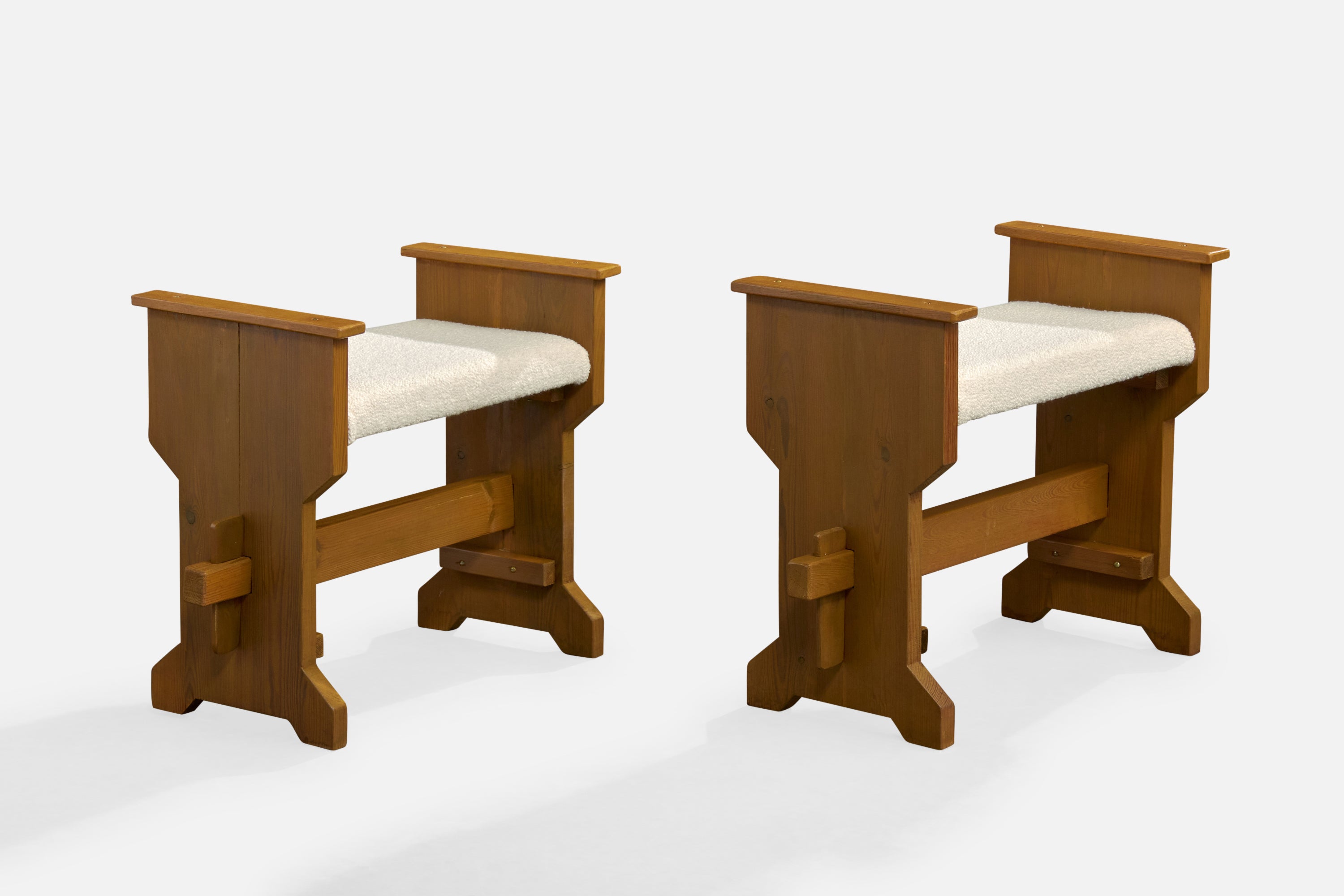 Swedish Designer, Stools, Pine, Fabric, Sweden, 1970s