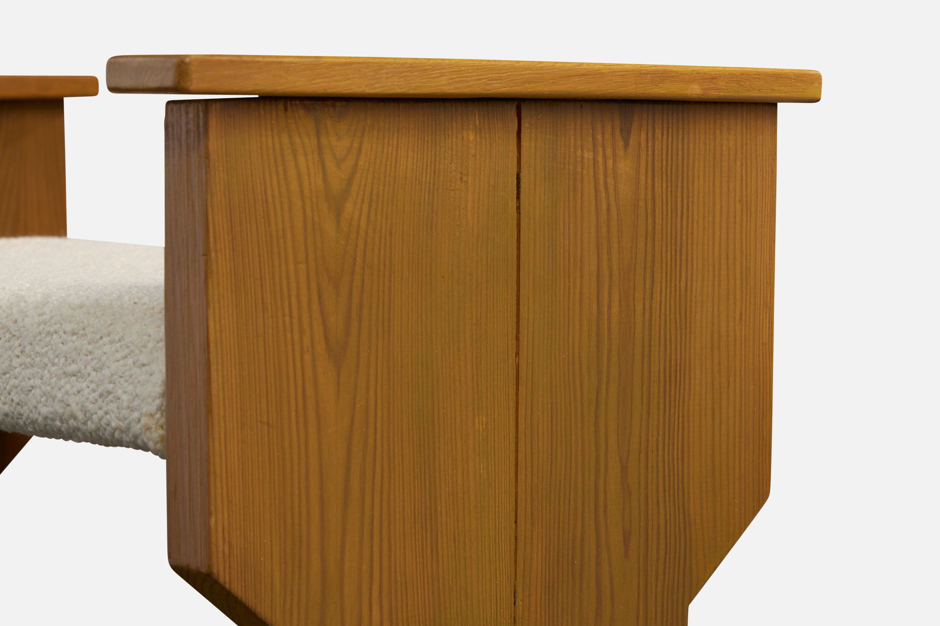 A pair of pine and white fabric stools designed and produced in Sweden, c. 1970s.