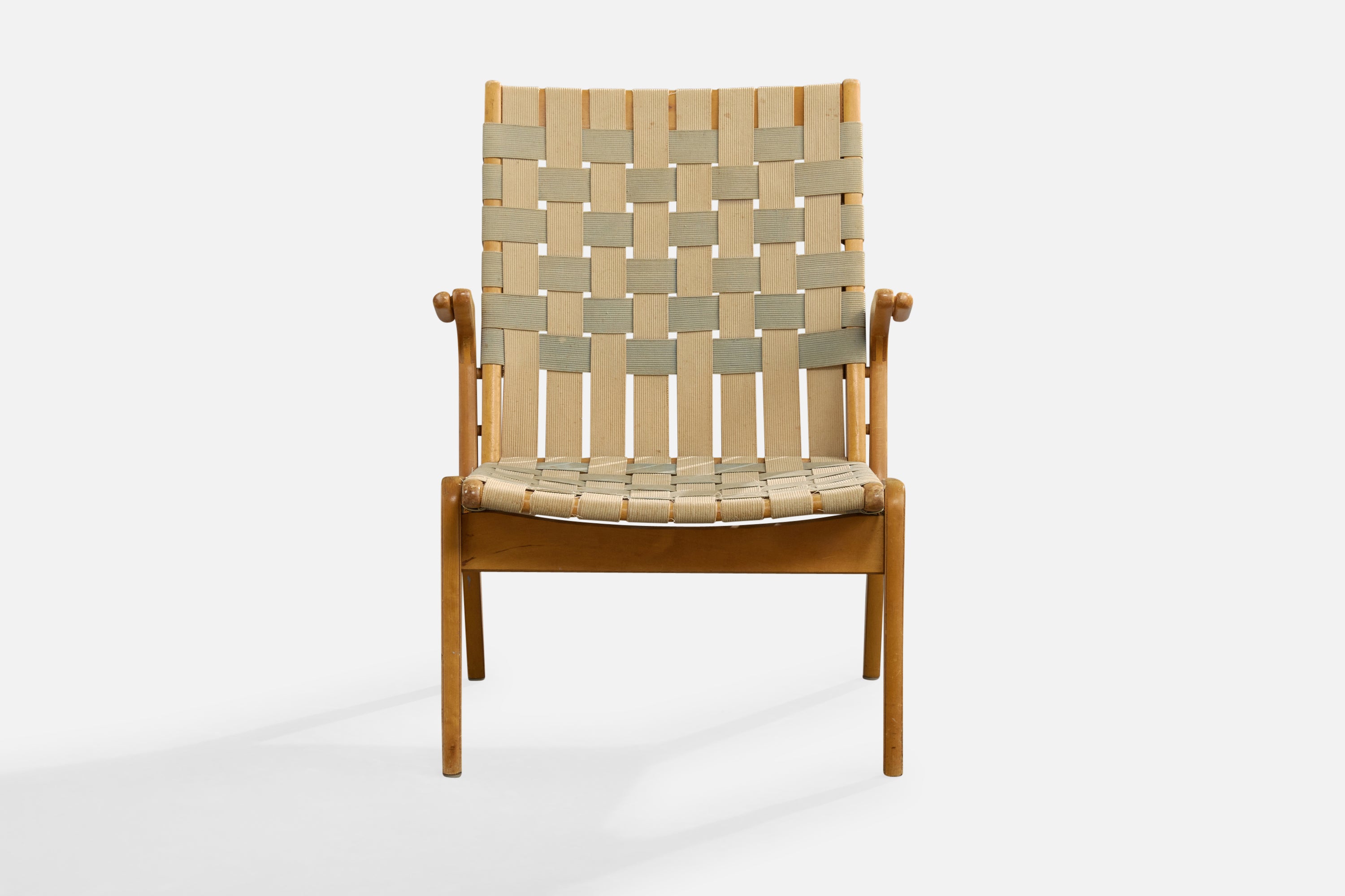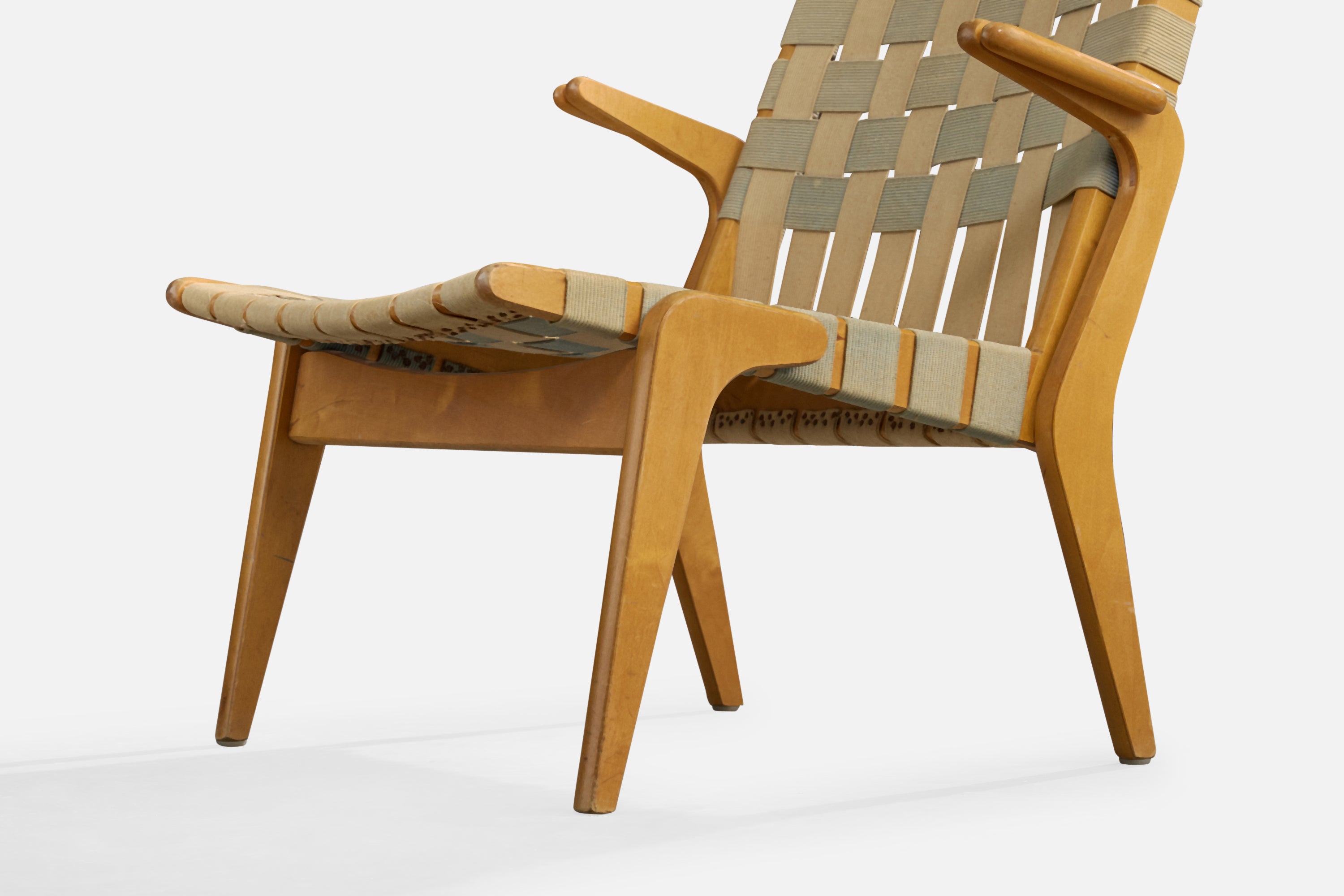 Ilmari Tapiovaara, Lounge Chair, Birch, Webbing, Finland, 1954